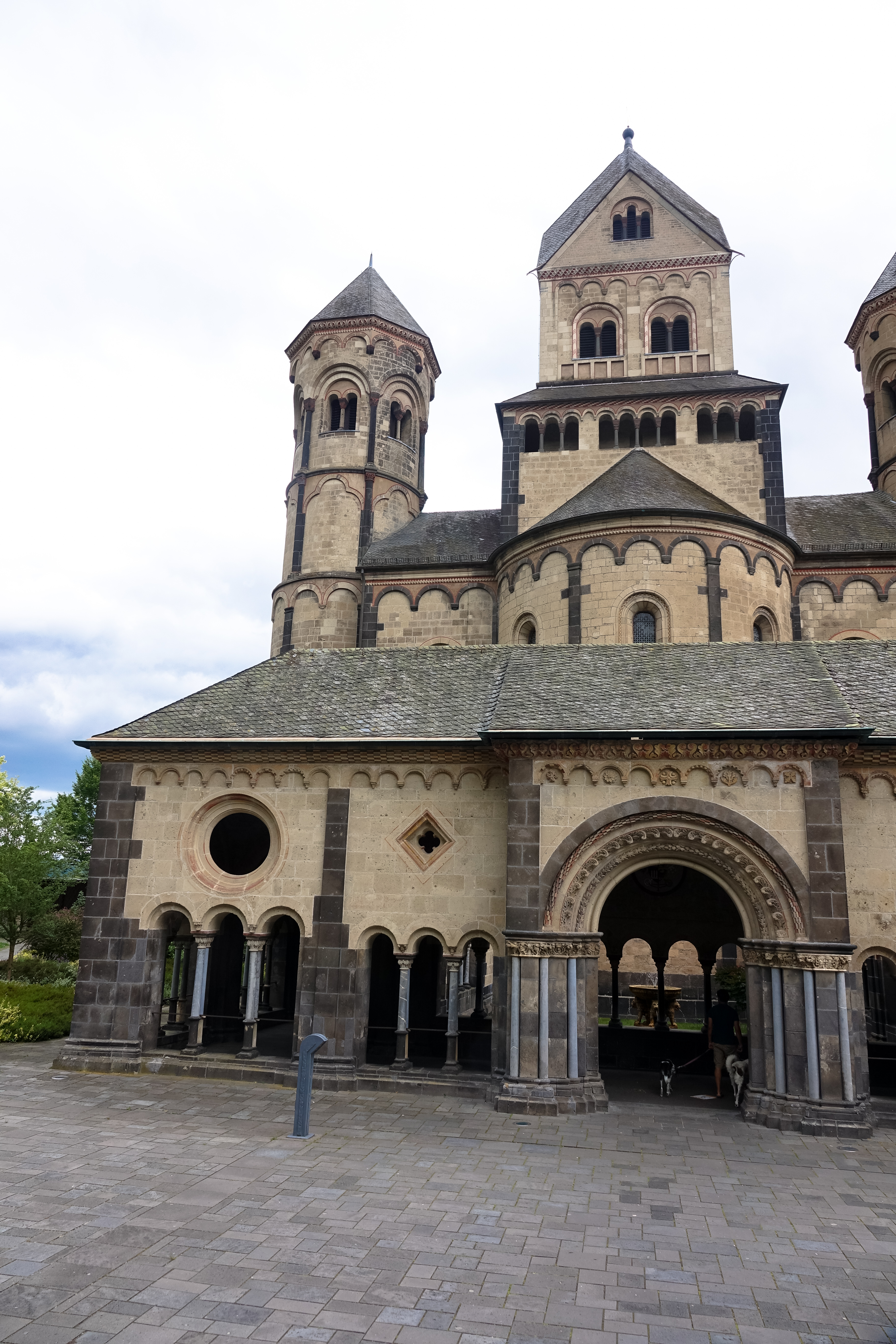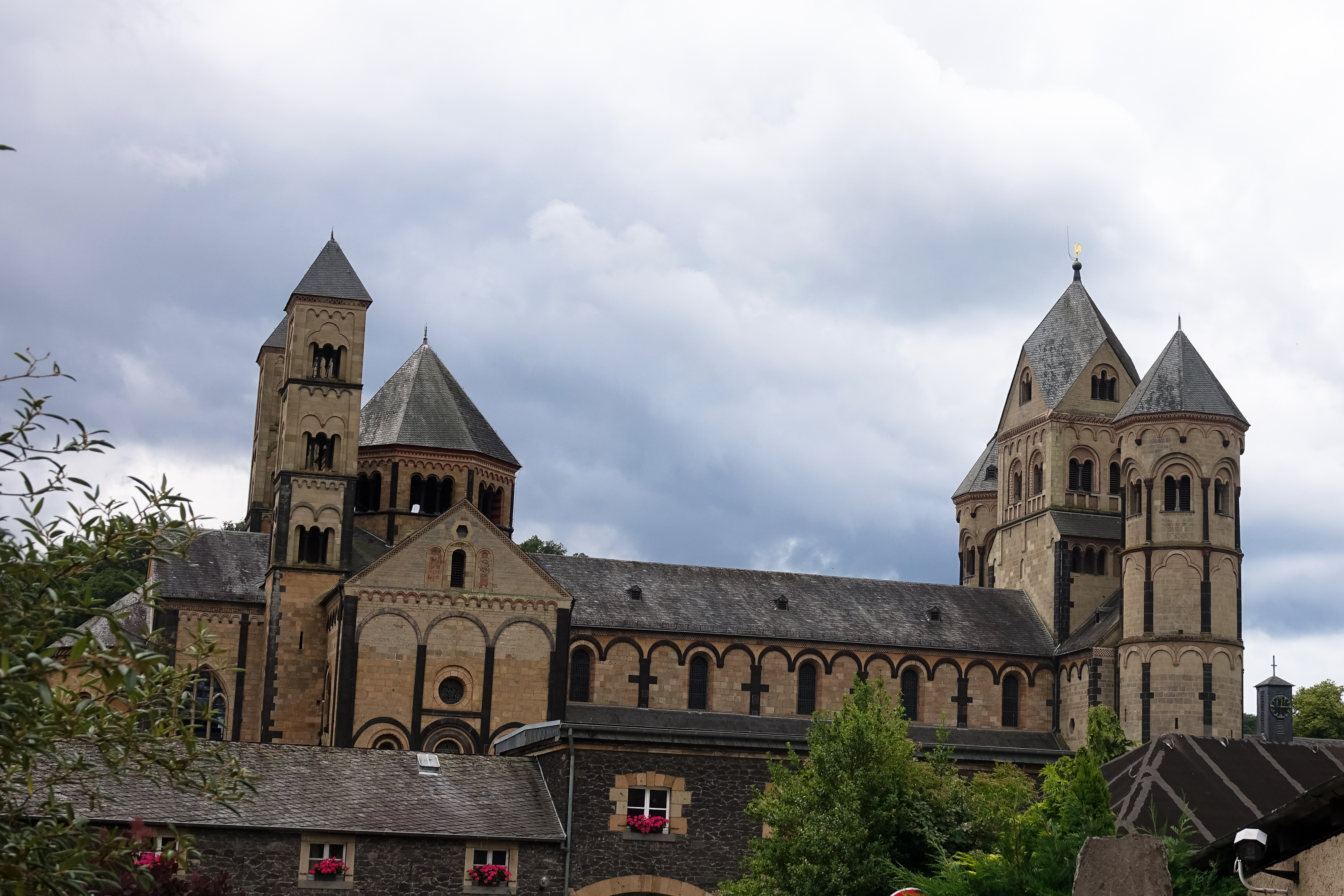 Natürlich ist die Benediktinerabtei Maria Laach an einem Sonntag gut besucht, aber es gehört laut Lonely Planet immerhin zum Pflichtprogramm Deutschland. Es leben und arbeiten dort noch 19 Mönche, es gibt eine Keramikwerkstatt und eine Gärtnerei in der wir bei Gelegenheit noch einmal reinschauen müssen. Den Besuch der sechstürmigen romanischen Kirche können wir immerhin schon einmal abhaken. Es ist schwierig gute Fotos zu machen, da durch die Klostermauer nicht alle Teile des Gartens zugänglich sind.
