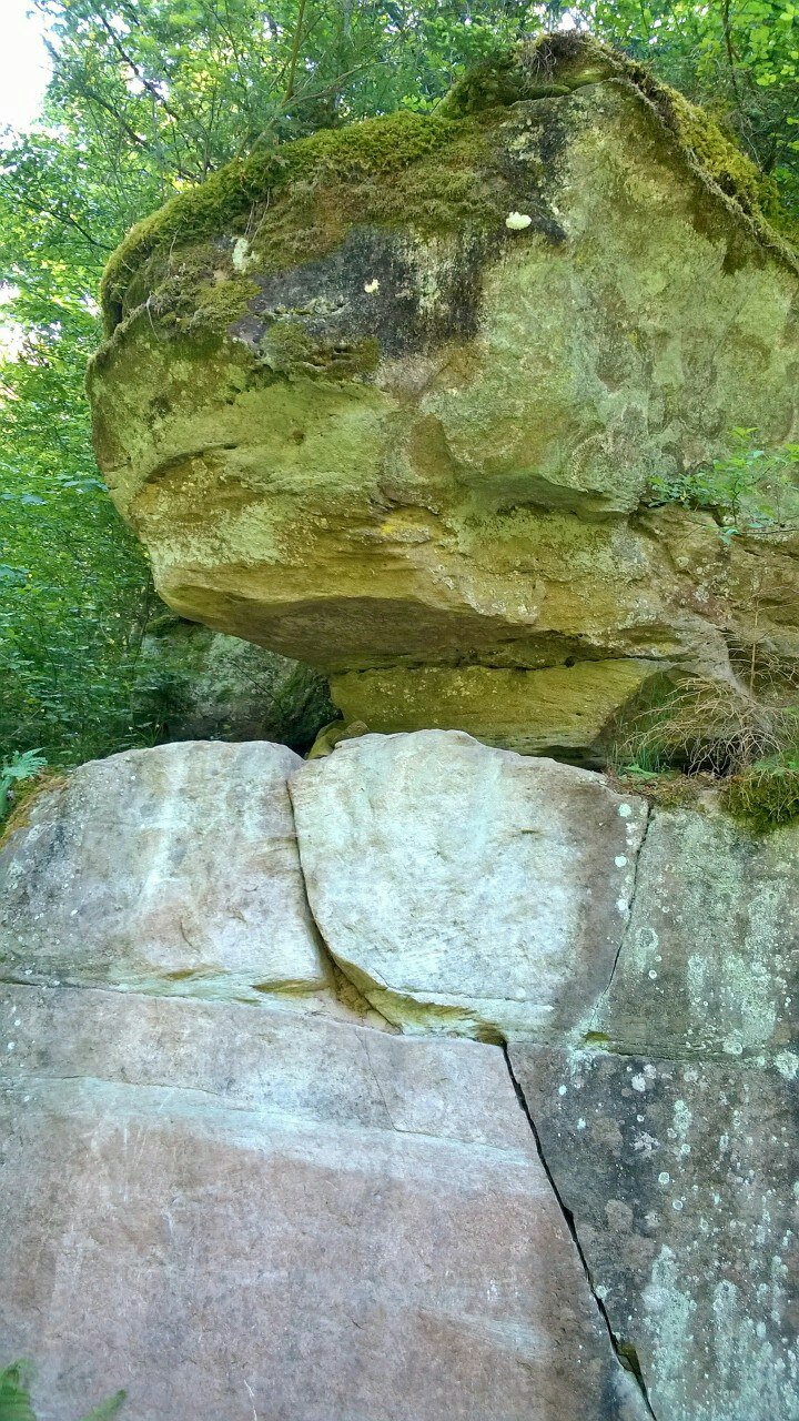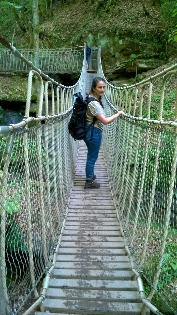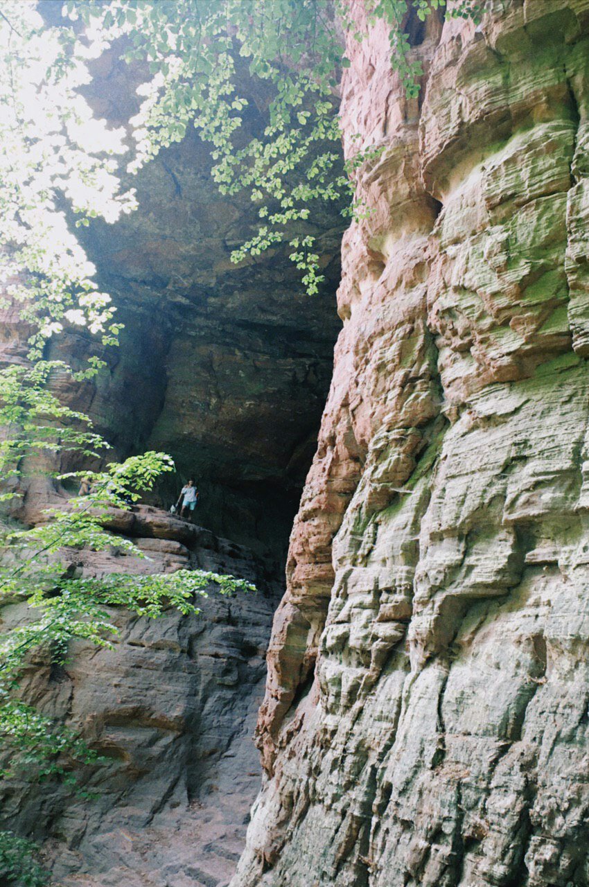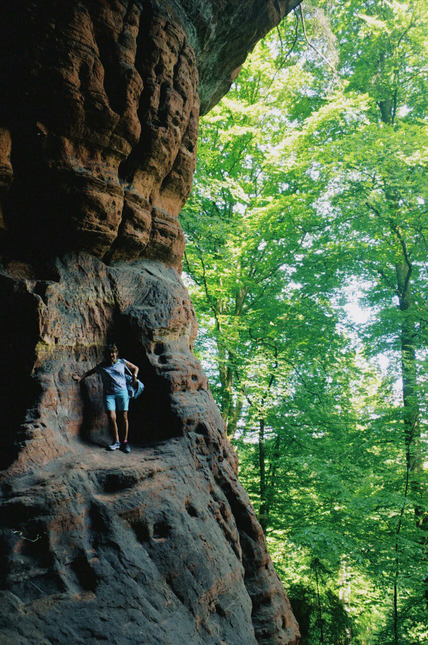 Anschließend wandern wir zu einer spätrömischen Langmauer, die teilweise restauriert ist, aber wirklich interessant ist sie nicht. Angeblich haben die Römer mit einer sehr langen Mauer ihre landwirtschaftlichen Nutzflächen begrenzt. Spannender ist da schon die Genovevahöhle, die durch Auswaschungen und Frostsprengung entstanden ist und dort picknicken wir erst einmal.