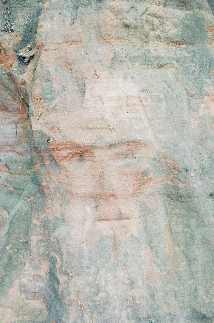 Die Mönche haben dort Gesichter in den Fels geritzt zur Vertreibung von bösen Geistern.