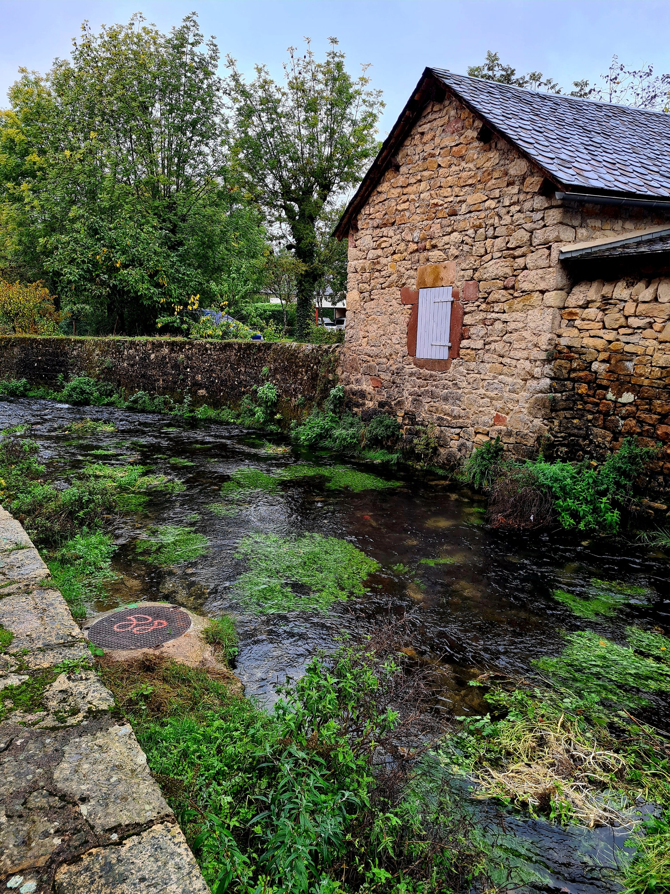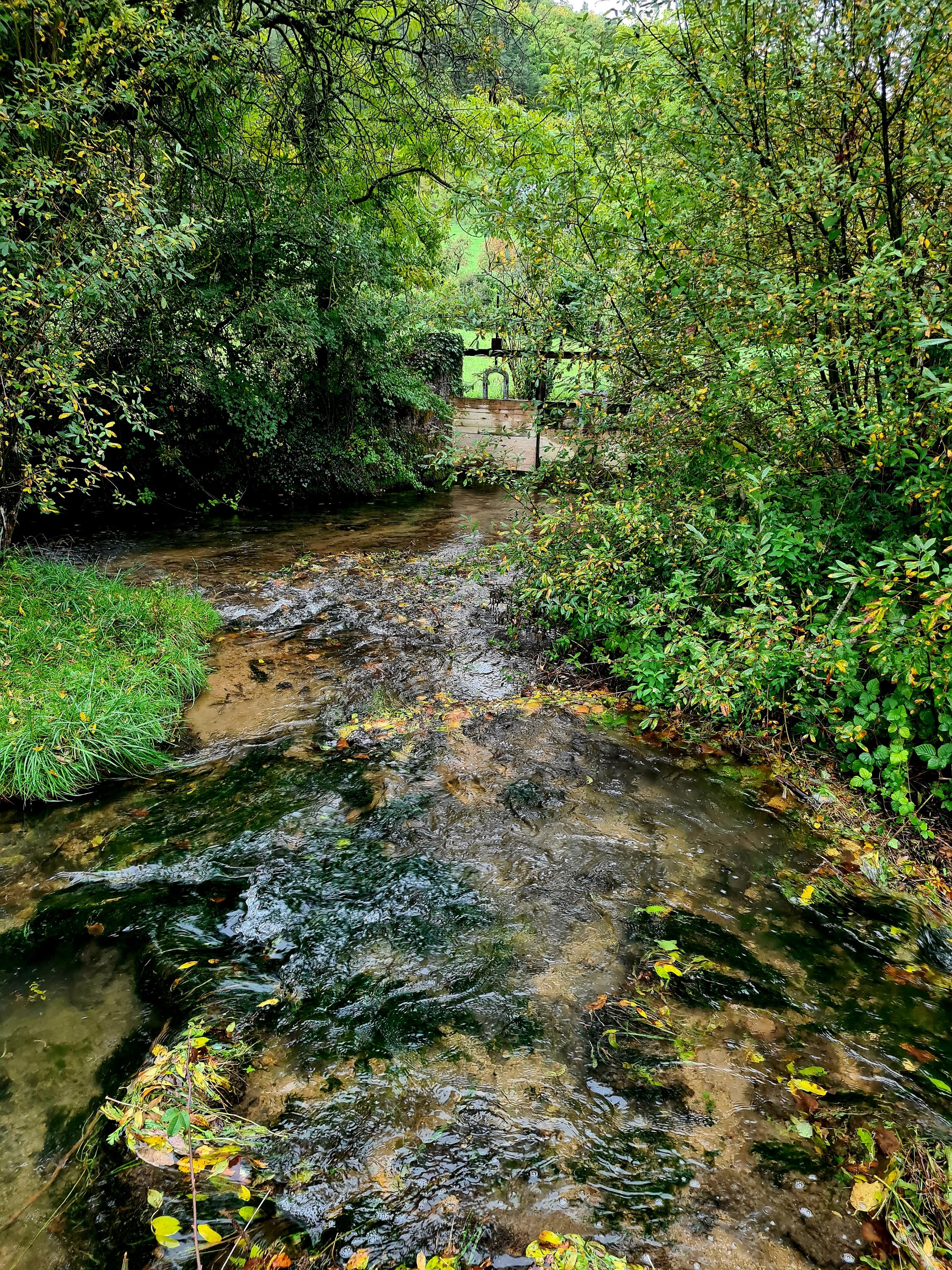 Schon vor dem Frühstück machen wir auf dem Weg zum Bäcker einen kleinen Rundgang durch den sehenswerten Ort. Unser Stellplatz liegt direkt an einem gurgelnden Bächlein.