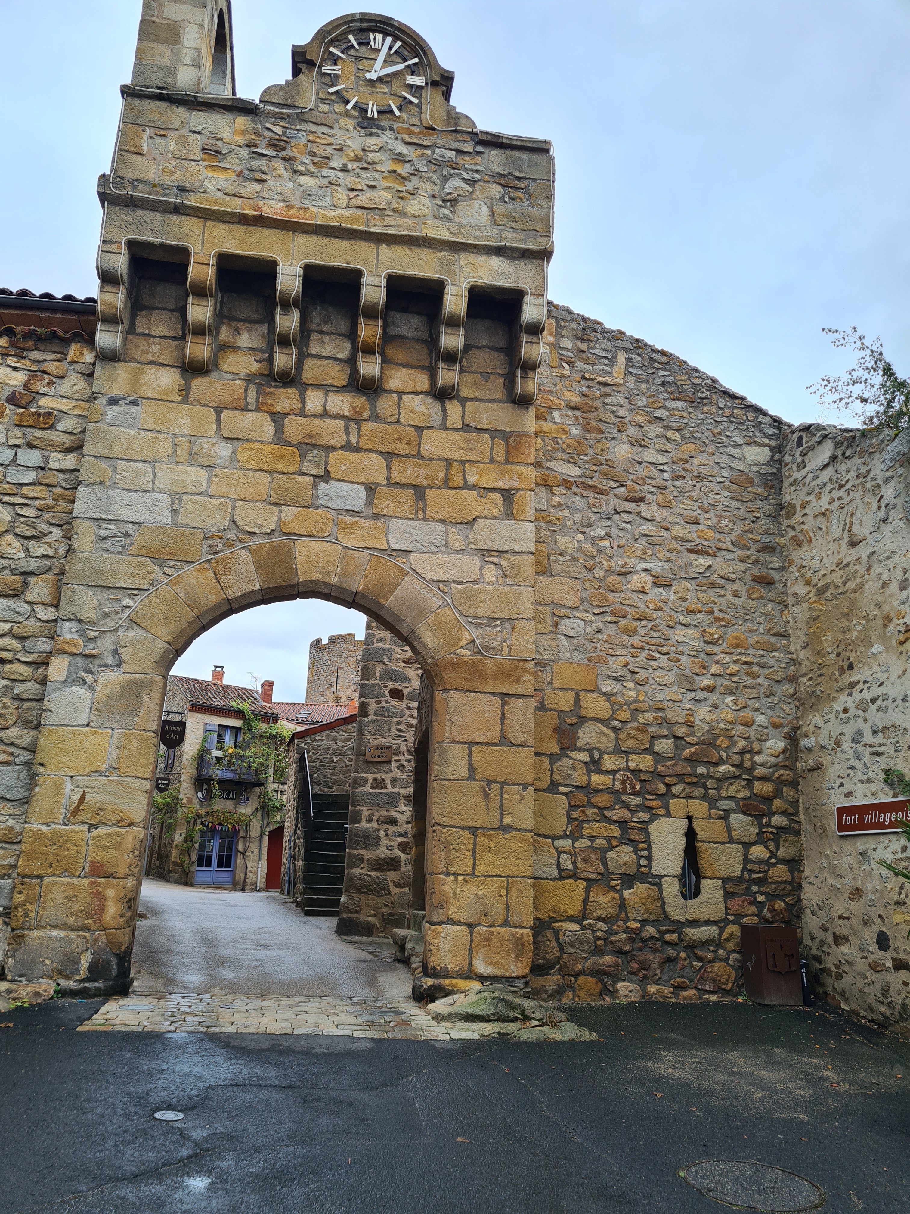 Weil es heute zu feucht zum Klettern ist, ändern wir unsere Pläne. Wir haben als Tagesziel Lapalisse ausgewählt. Das bedeutet für Mina 3 Stunden Fahrt mit einer Mittagspause in Montpeyroux.Montpeyroux ist mal wieder ein mittelalterliches Dorf mit Stadttor. Es gibt an der A75 soviel zu sehen, dass wir in Zukunft noch viel zu entdecken haben.