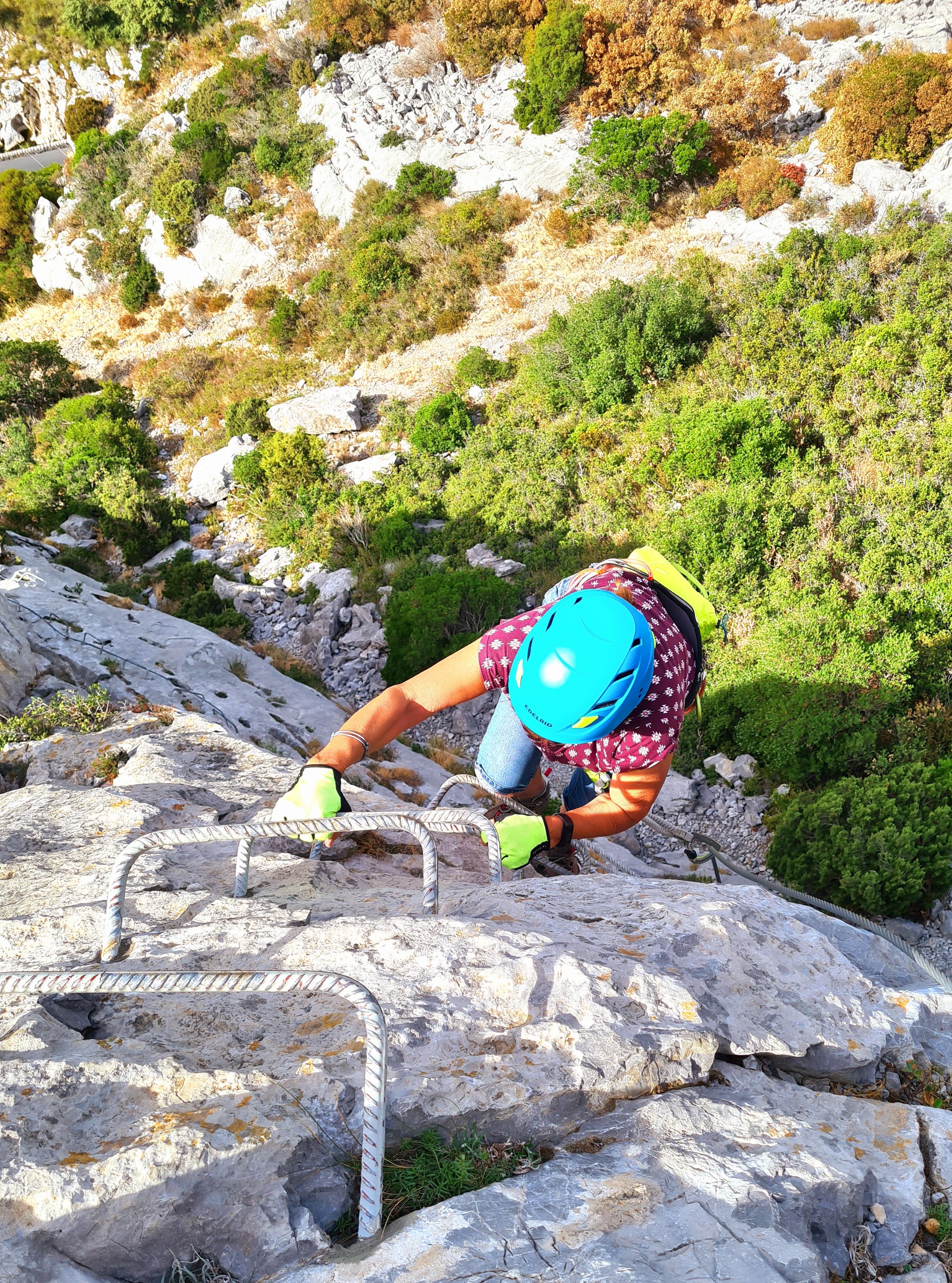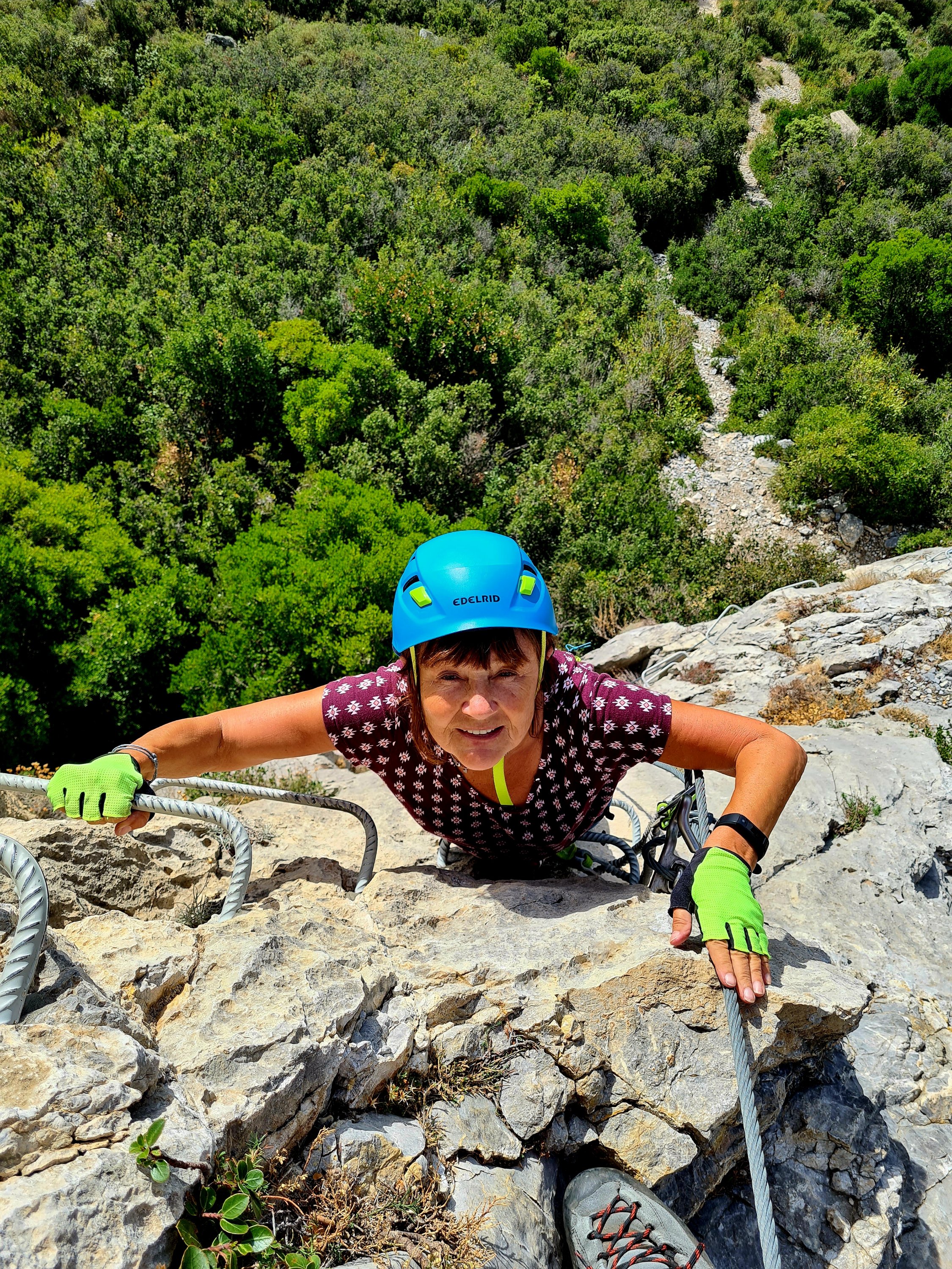 Sehr schön dort, und dann so hoch geklettert. Carmens Sicherungsseil