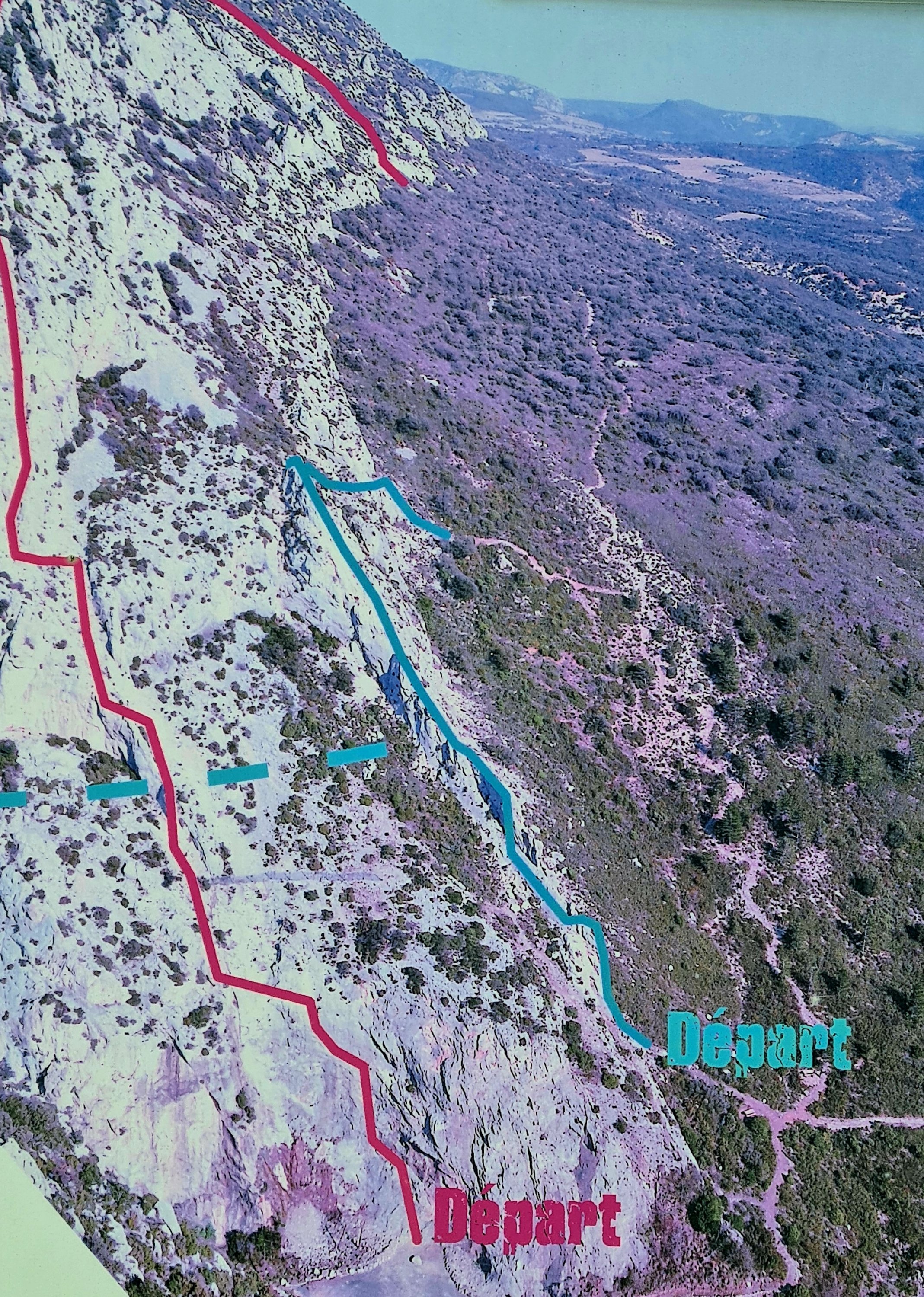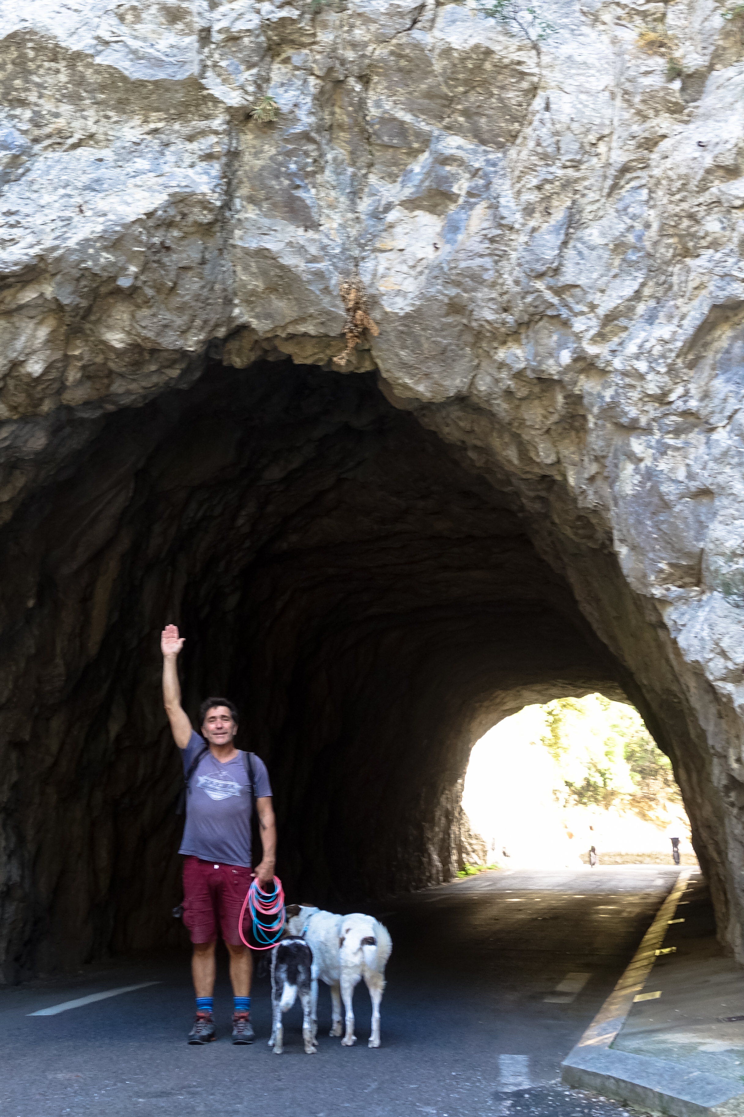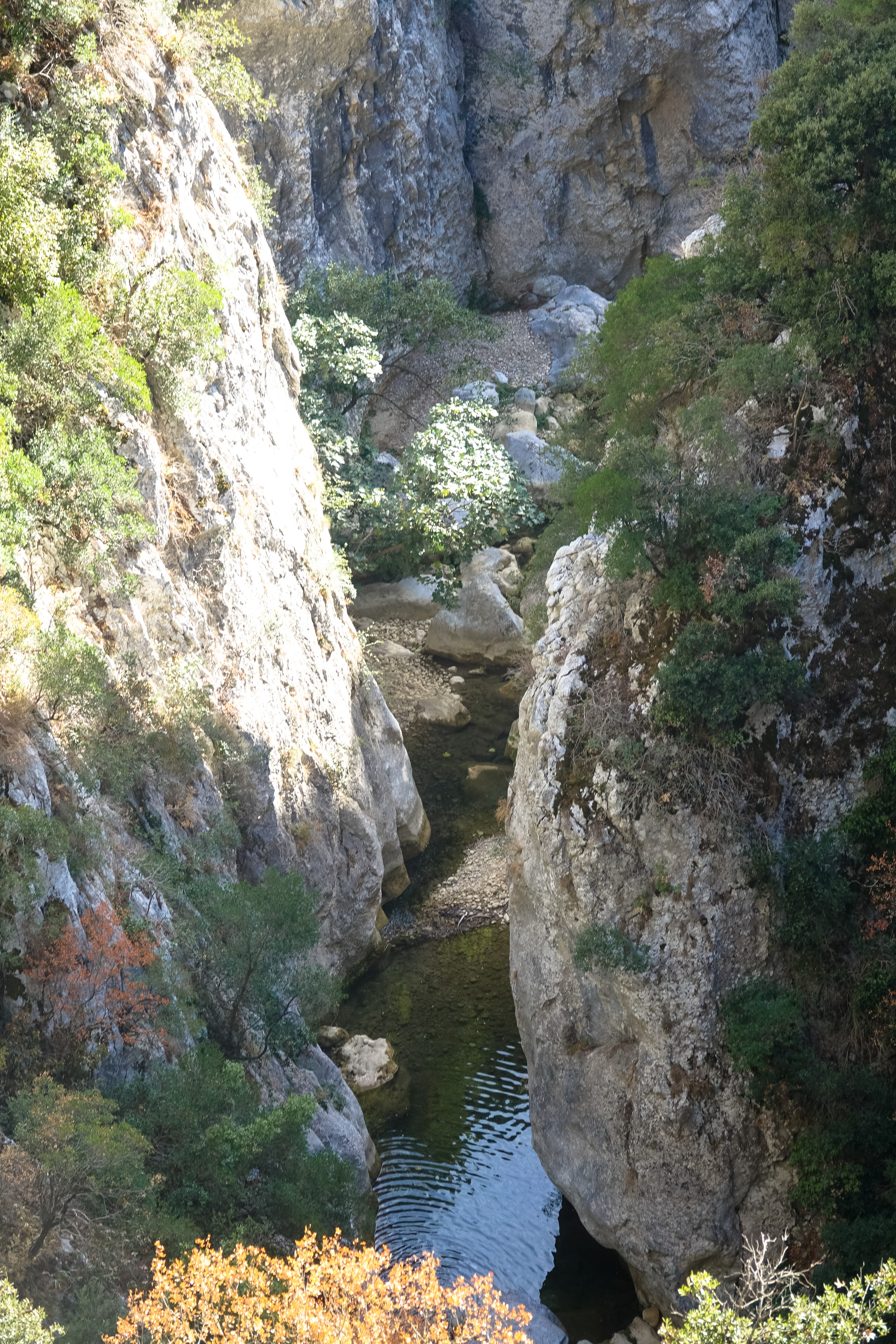 Von dort aus hat man einen Blick in die tiefe Schlucht auf das Flüsschen Agly. Auf unserer ersten Pyrenäenreise, während unserer Flitterwochen sozusagen, konnte man noch ohne Canyoningausrüstung zur Agly absteigen. Wir haben damals die ersten Canyoninggruppen dort unten getroffen.