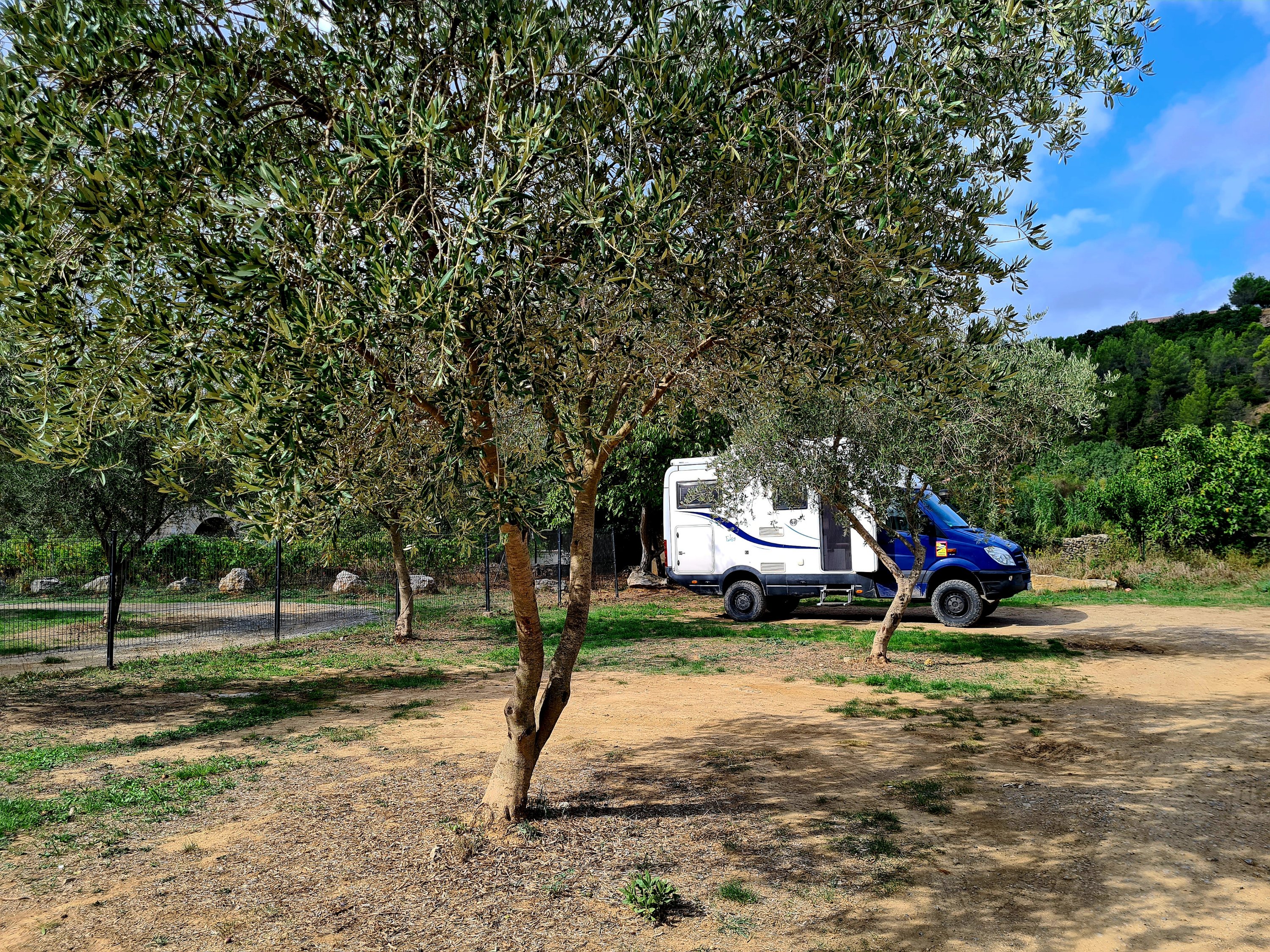 Dort gibt es einen wunderschönen Stellplatz im Olivenhain.
