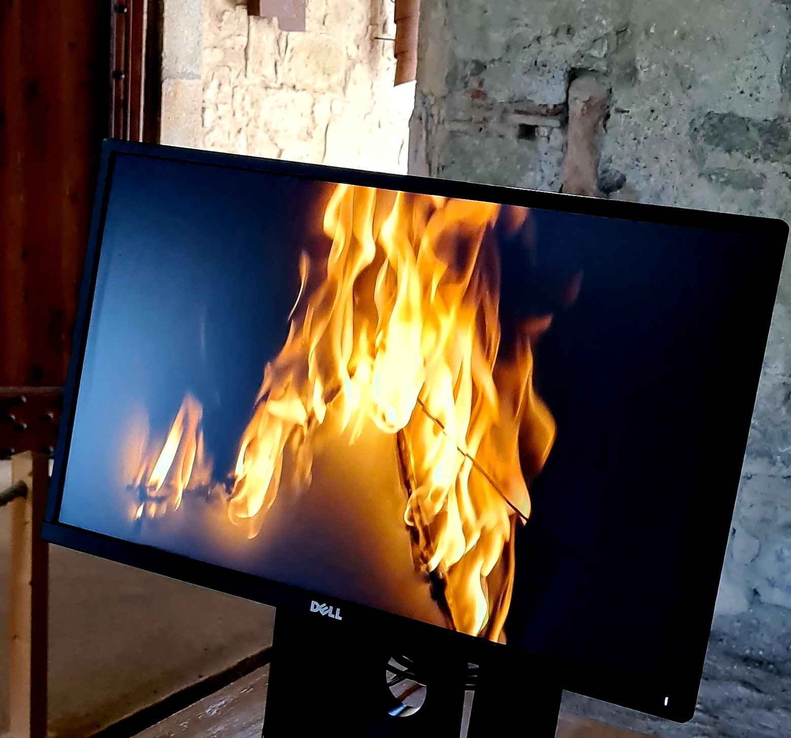 Ein Künstler hat hier mit Flammen ein Rußkunstwerk erstellt.