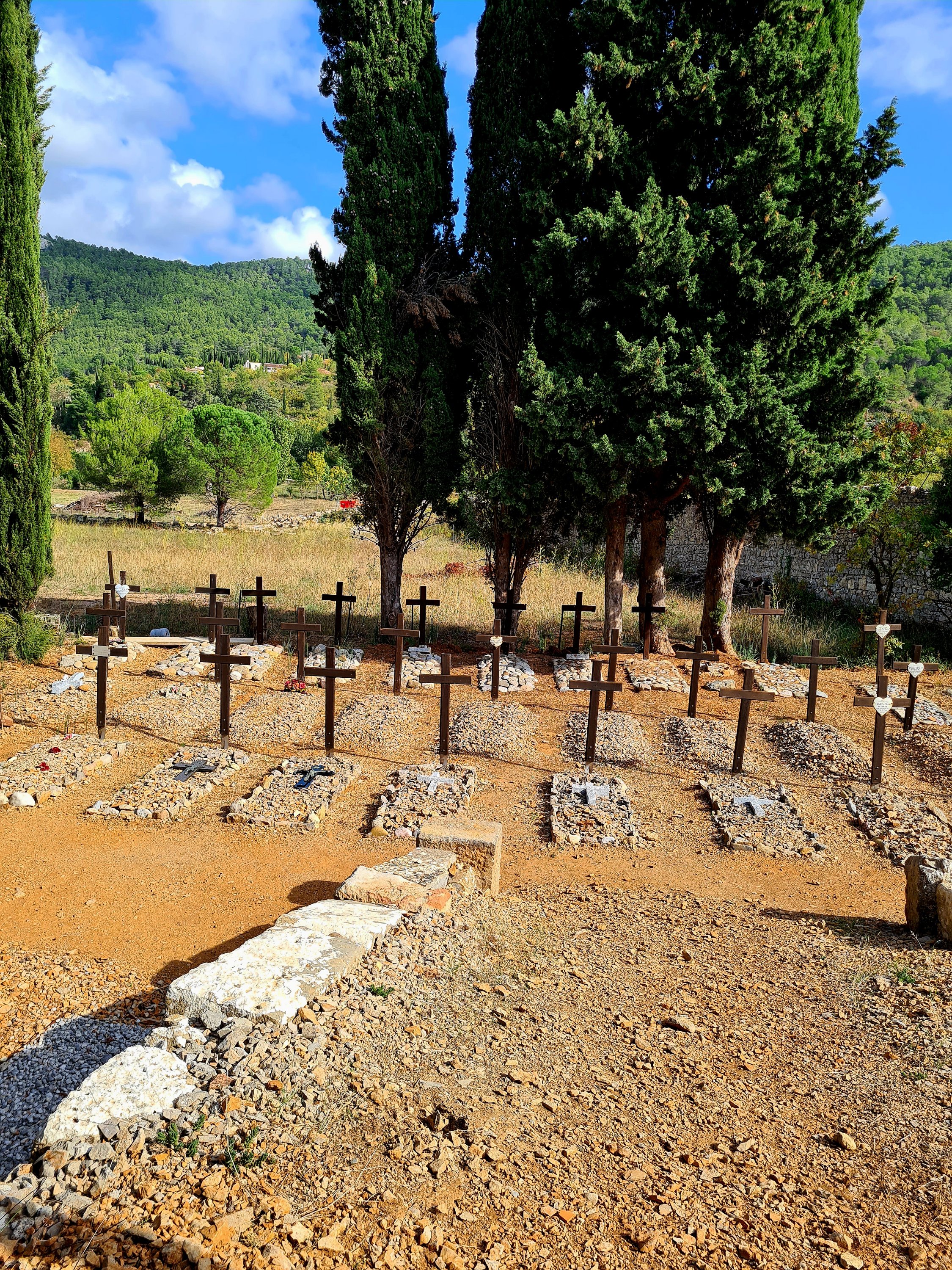 Dabei kommt man am Friedhof der Mönche vorbei, der ohne jeglichen Blumenschmuck ist.