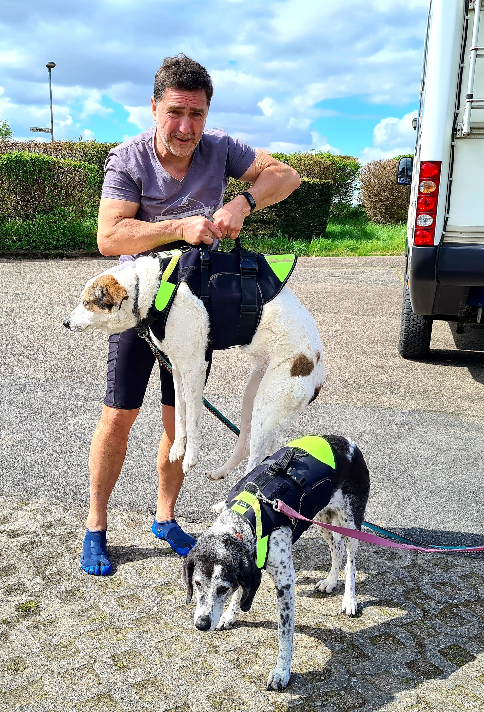 Eigentlich sollten die Hunde mit, aber Mina zappelt so und springt sofort wieder raus. Es ist zwecklos mit ihr. Also lassen wir die 2 Hunde im Wohnmobil.
