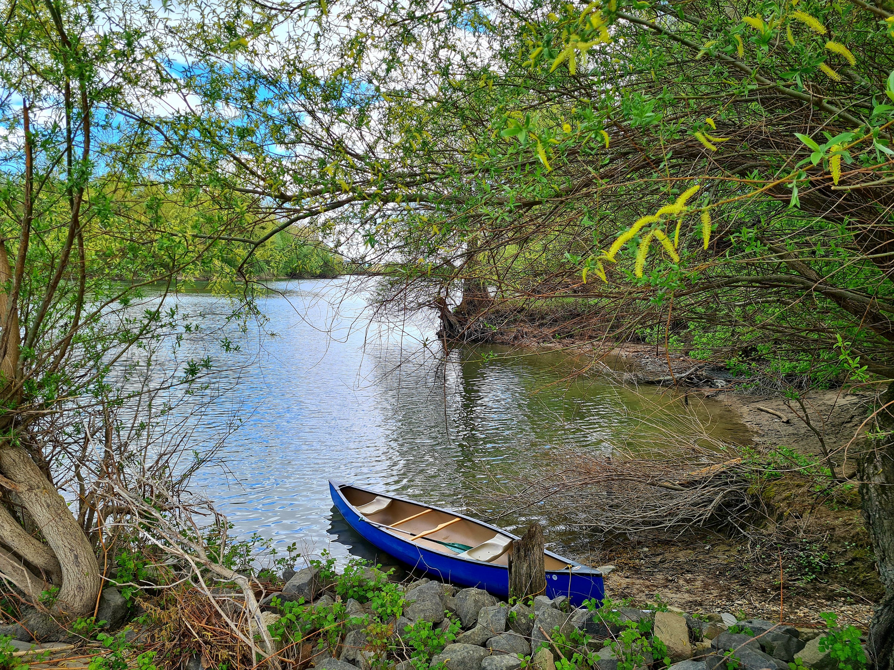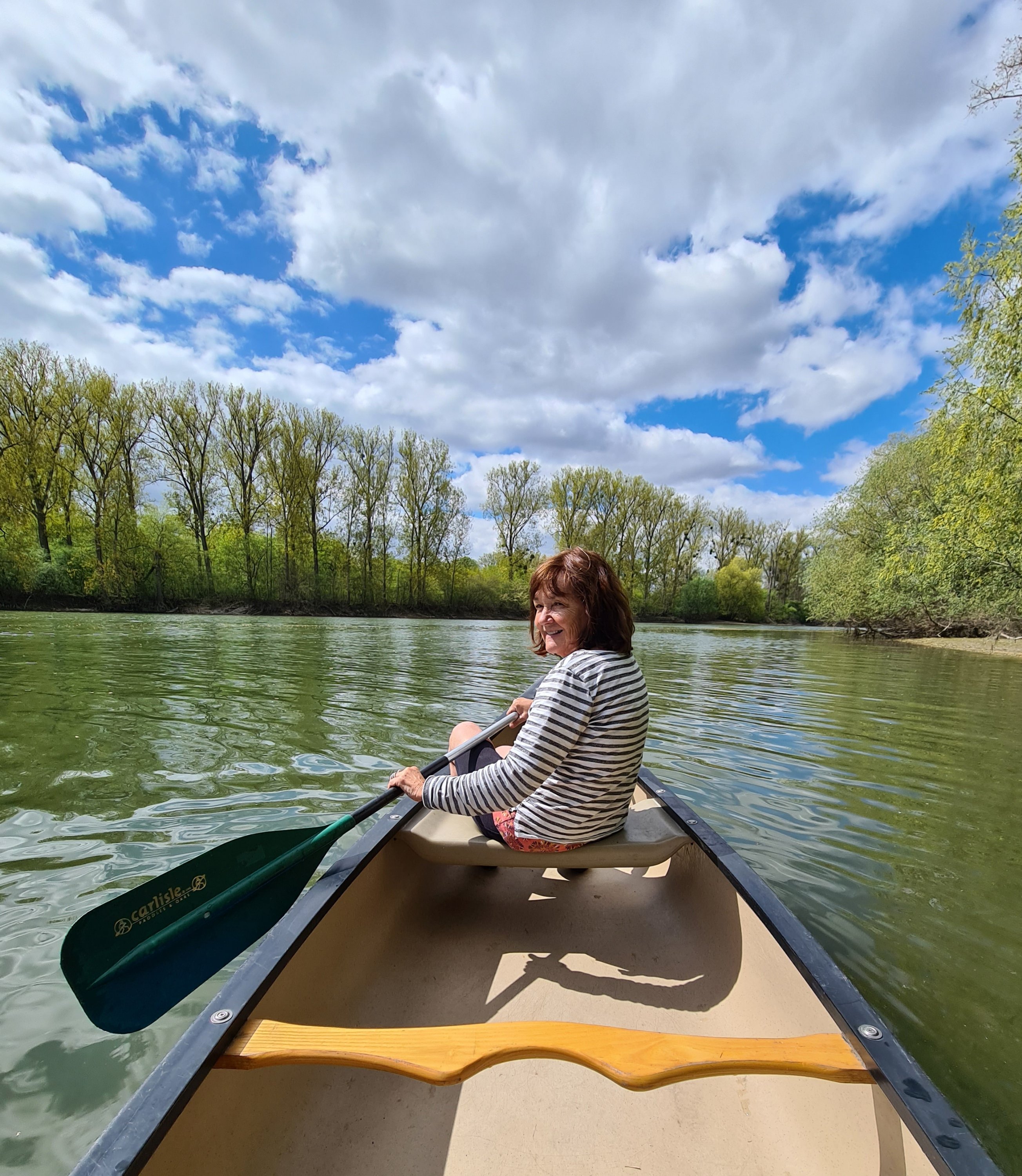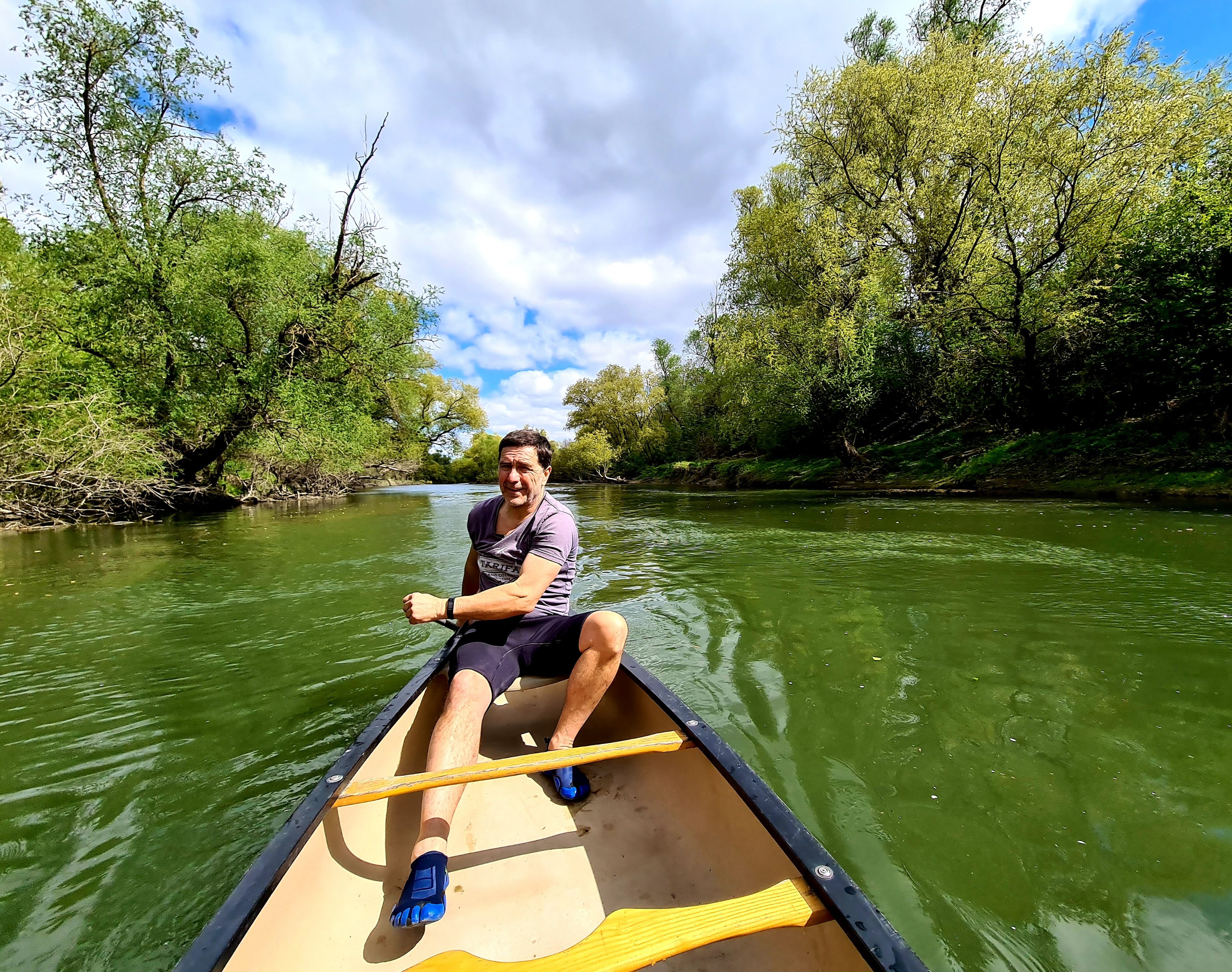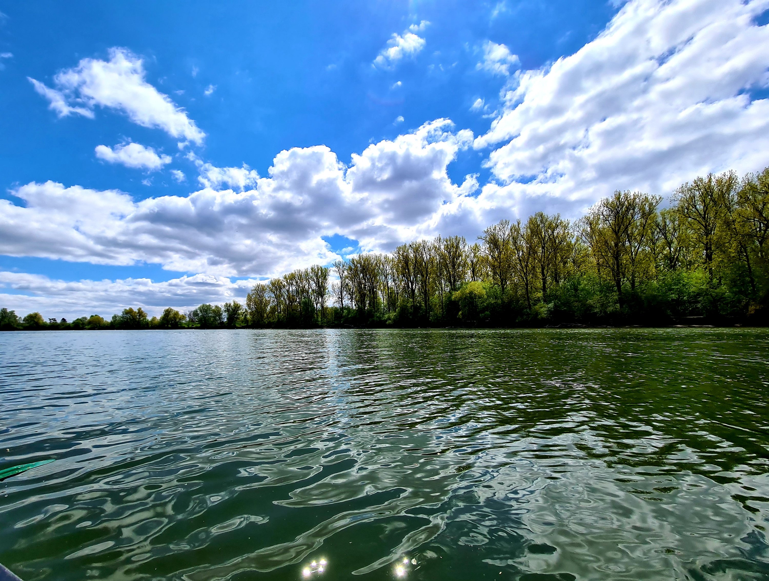 Zuerst paddeln wir in Richtung Ketsch mit der Strömung.