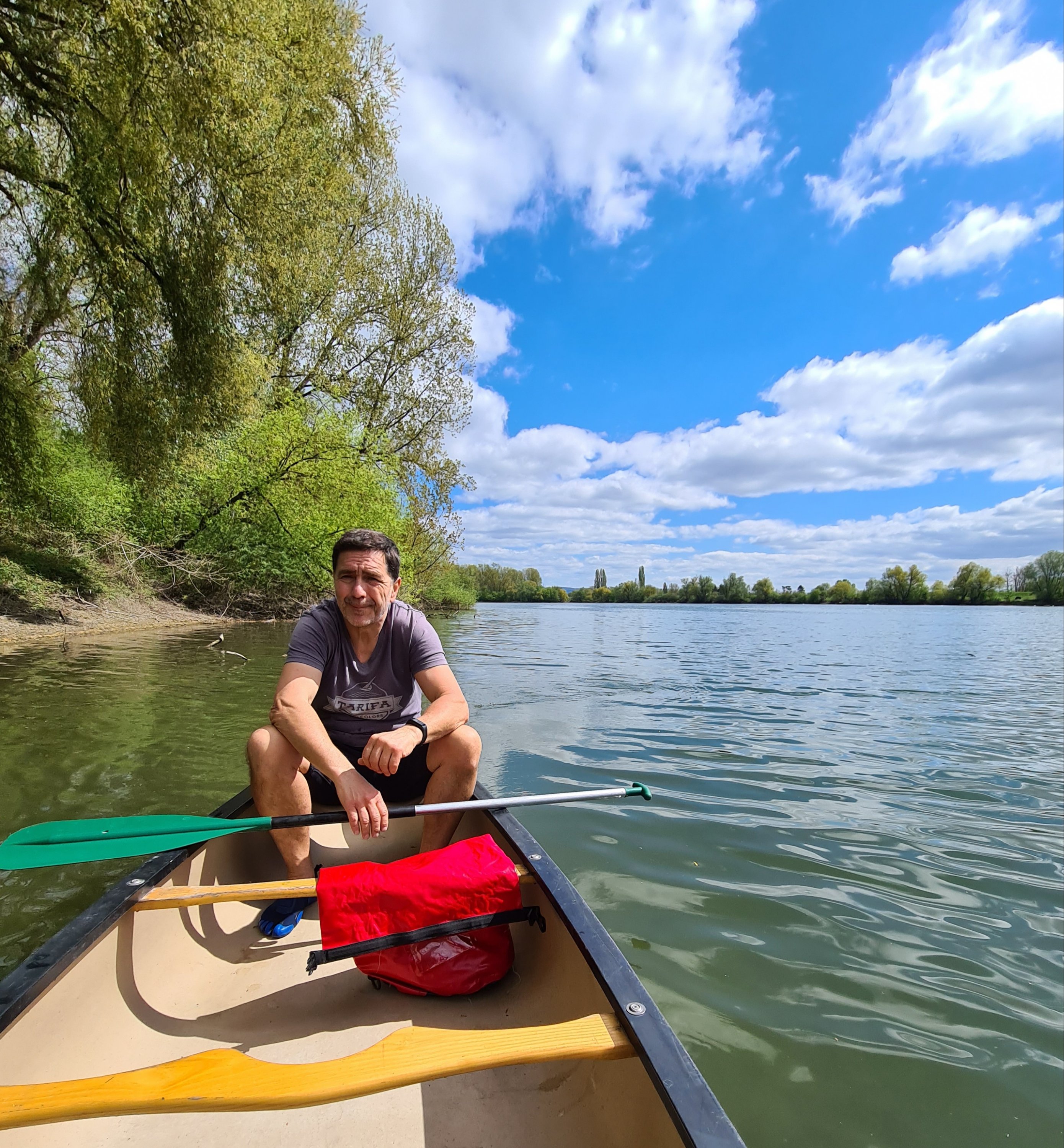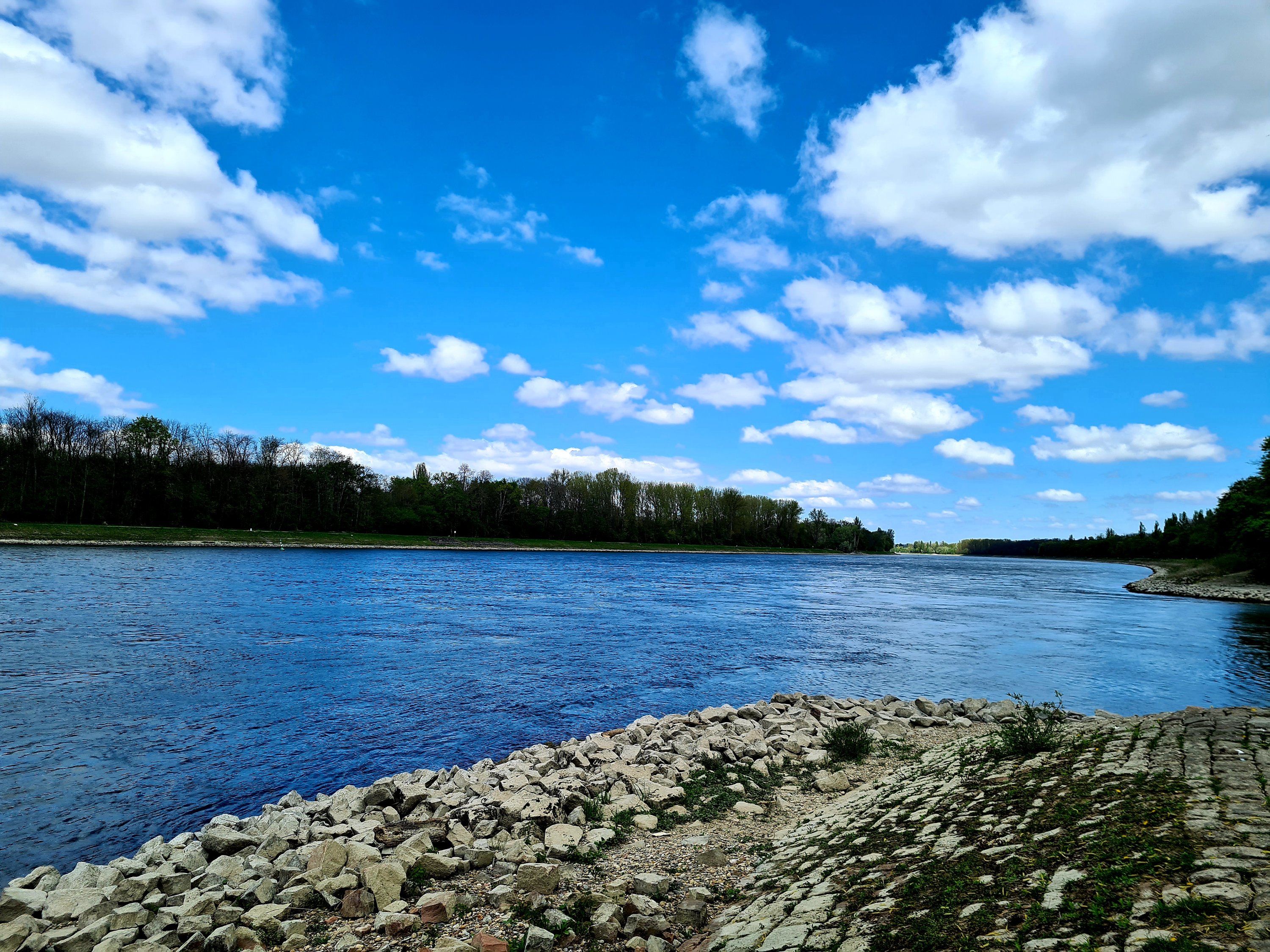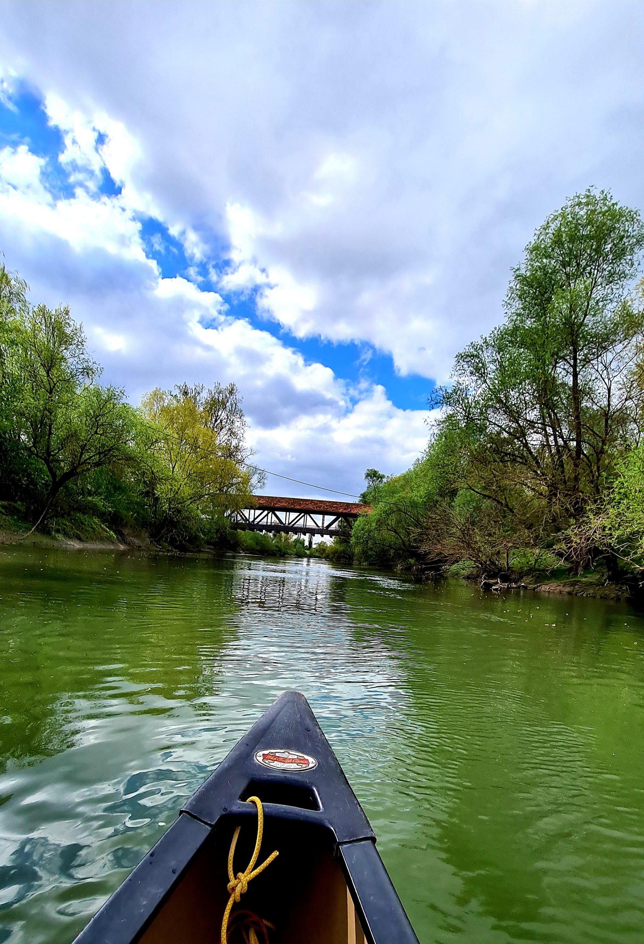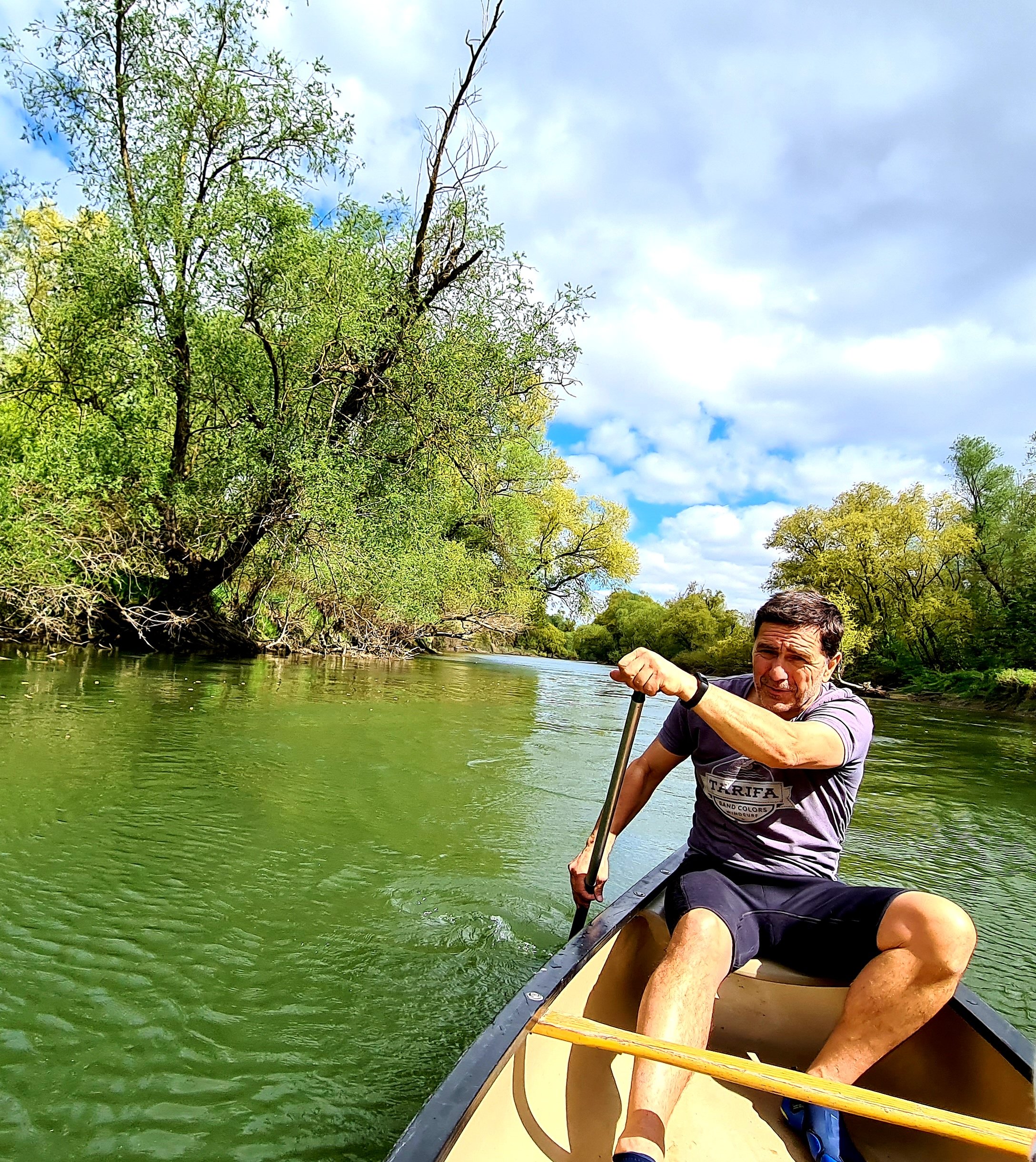 Zuerst paddeln wir in Richtung Ketsch mit der Strömung.