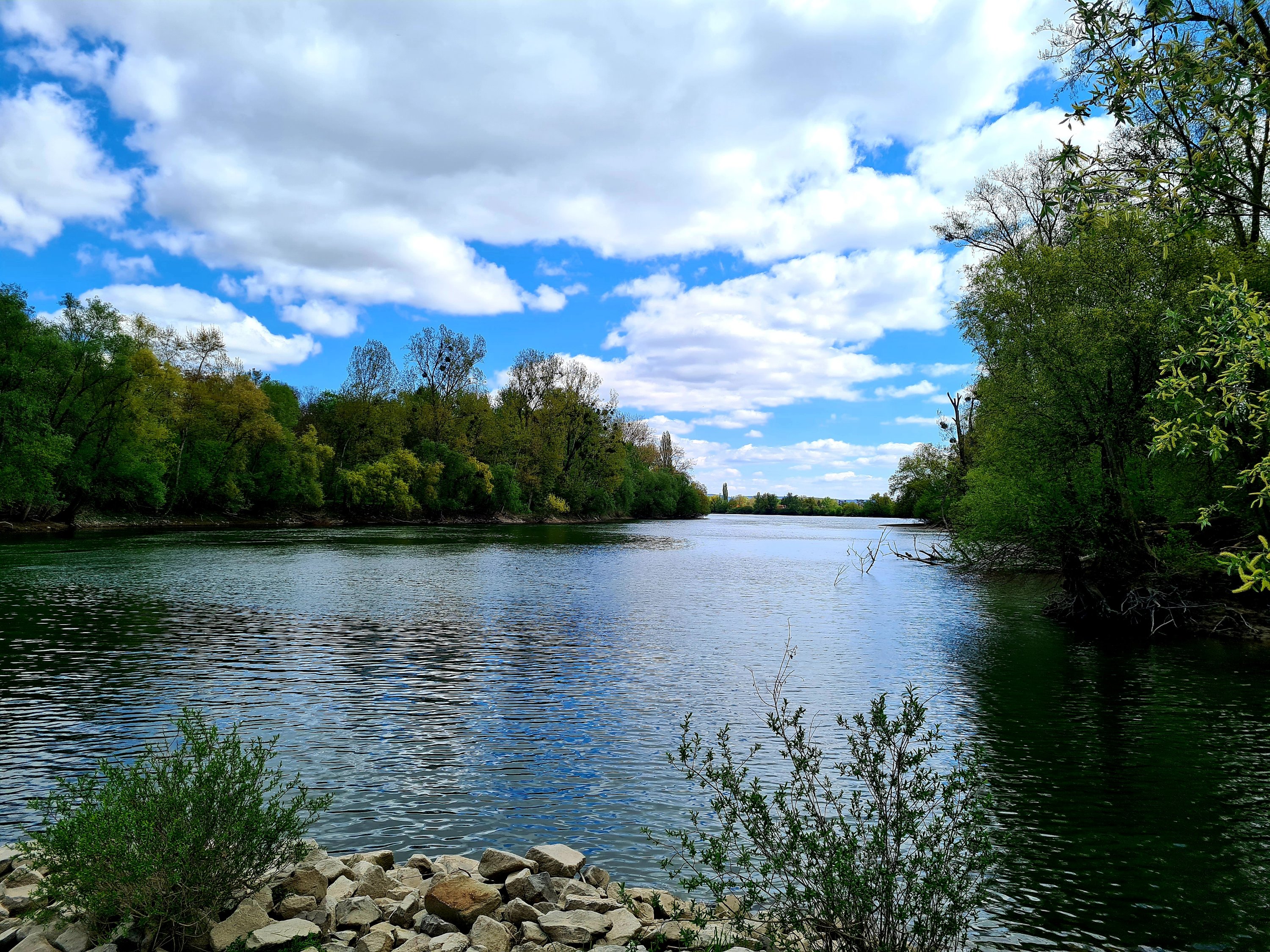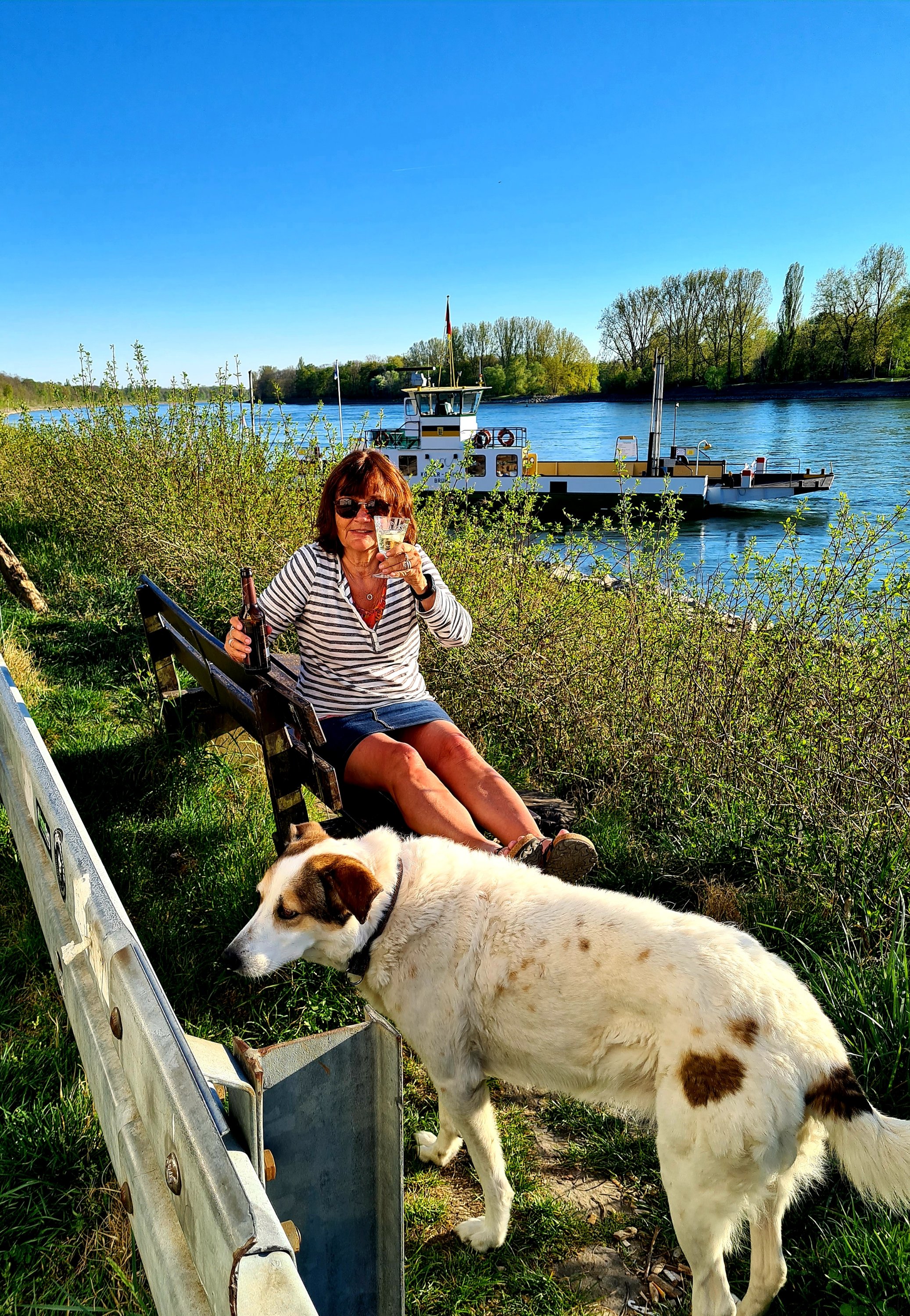 Zum Mittagessen fahren wir an den Rhein. Herrlich!