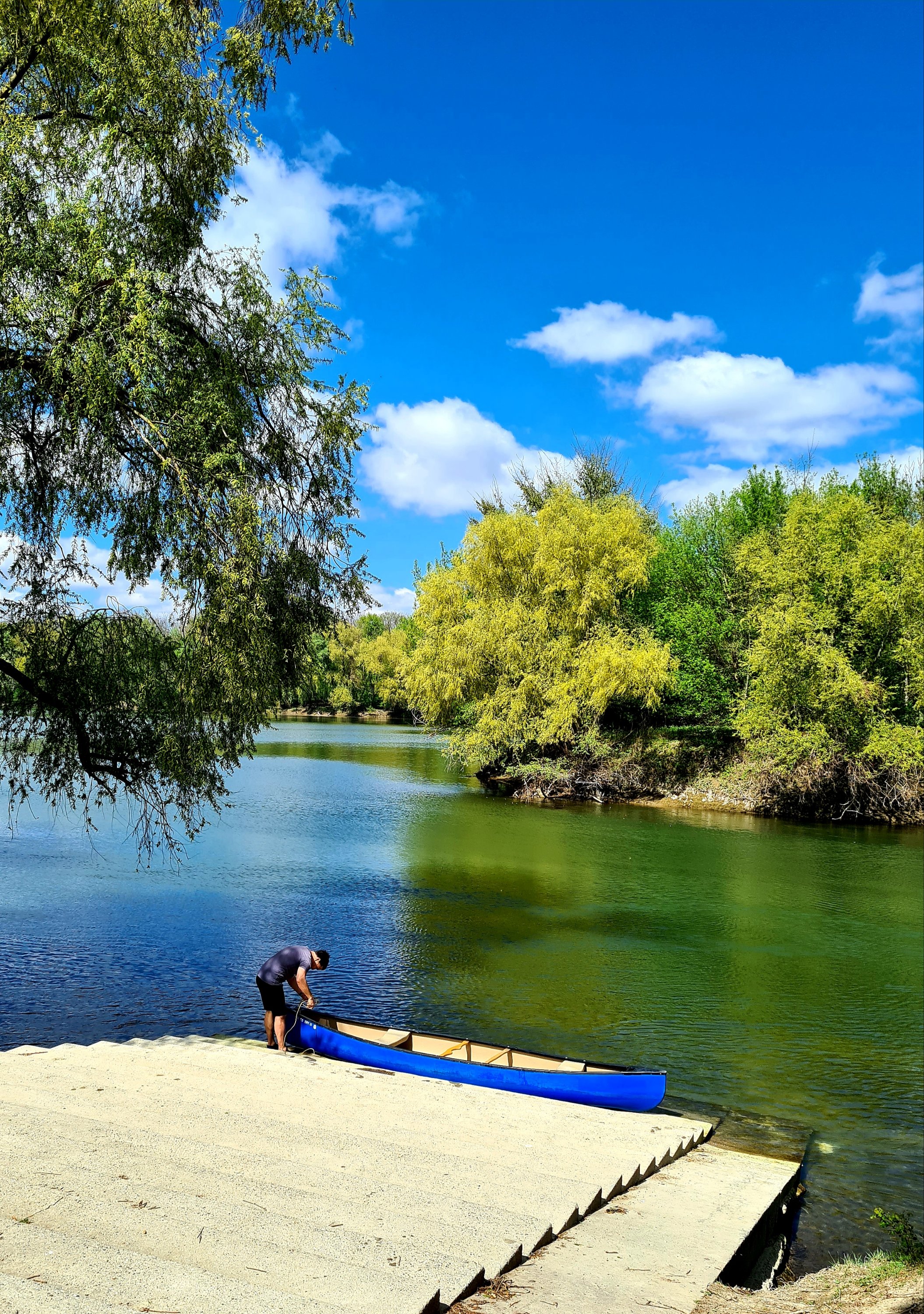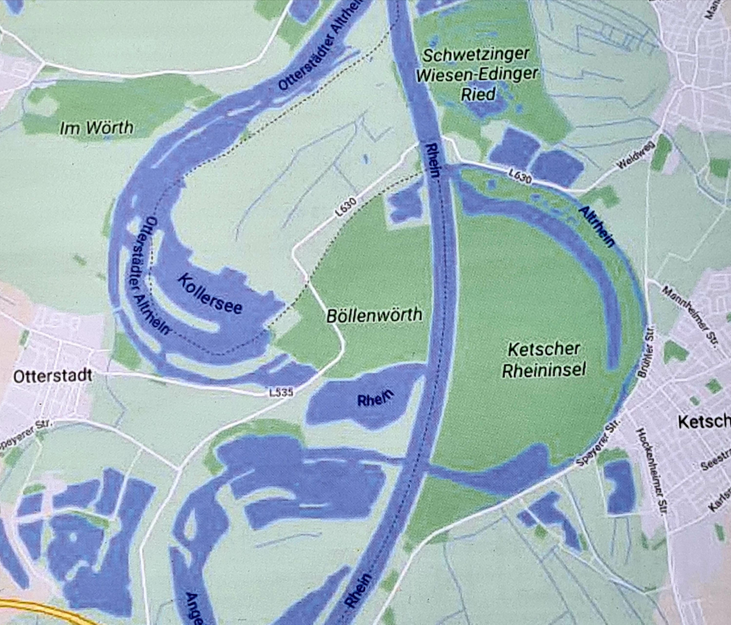 Wir fahren zum Wassersportclub Ketsch und fragen, ob wir auf deren Gelände dürfen. Und das klappt dann. Wir bekommen viele gute Tipps und einen Plan der Altrheinarme.