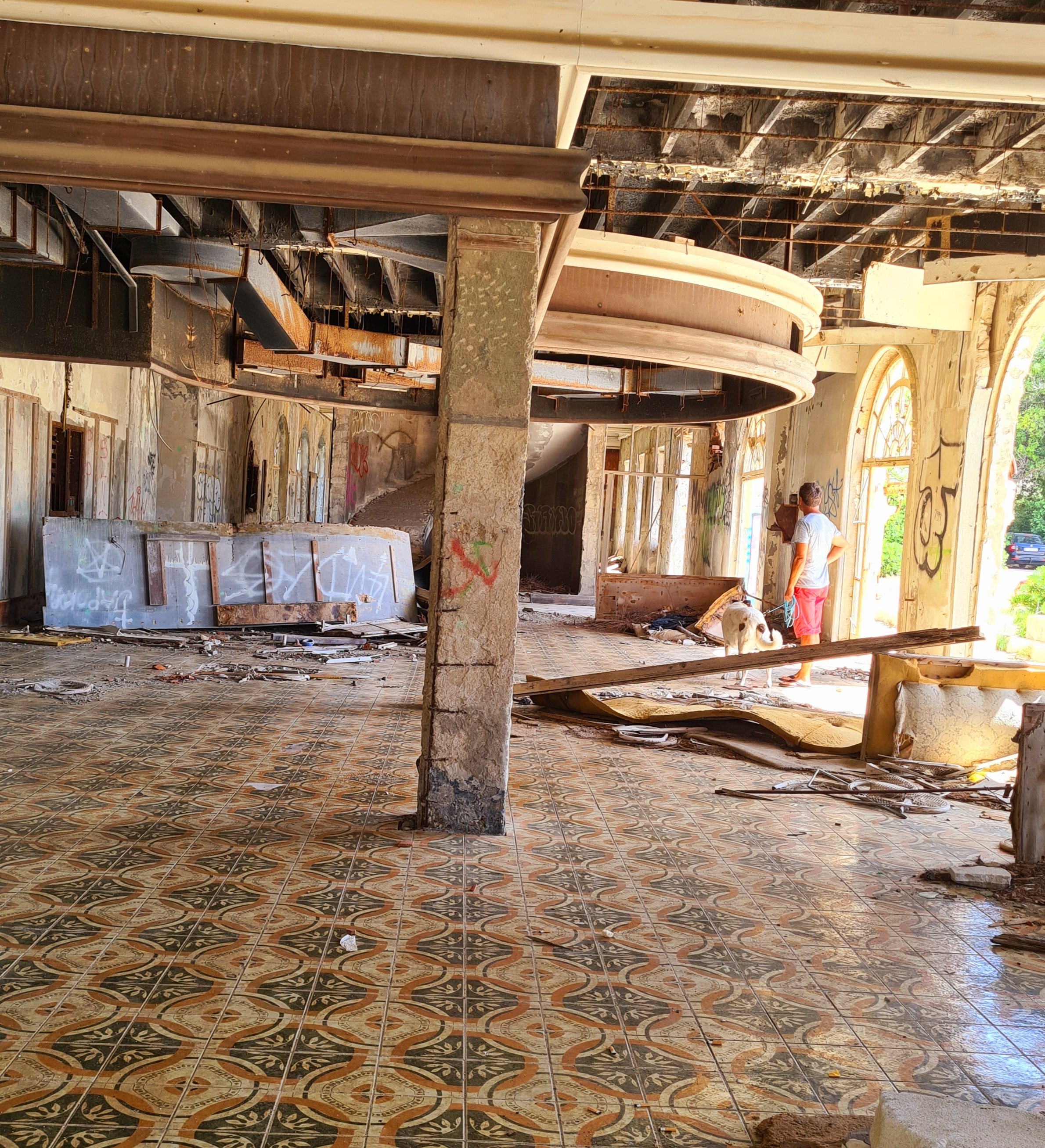Dreht man dem Wasser den Rücken zu sieht man die Ruinen und erahnt den einstigen Luxus.