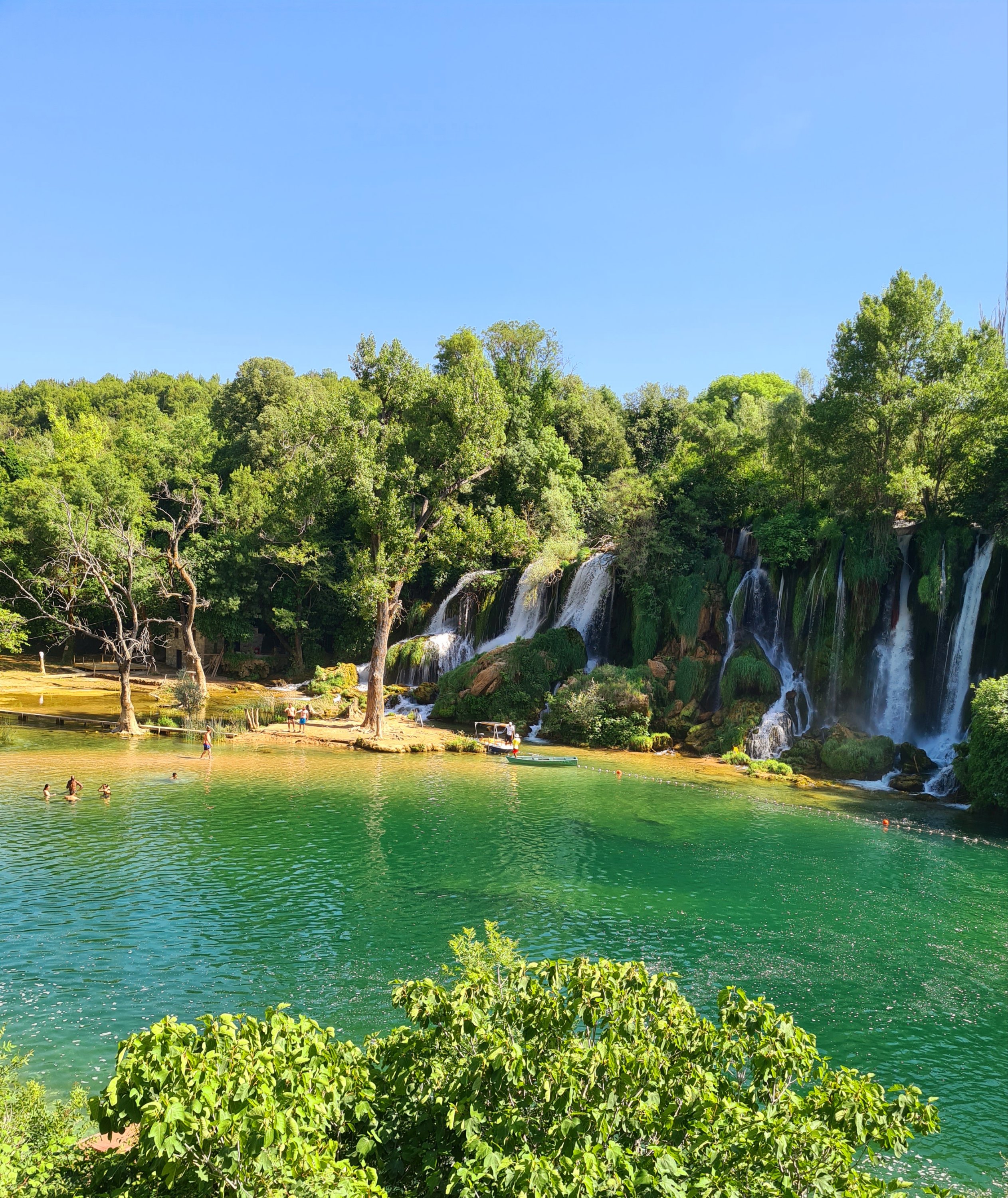 Trubel ist hier natürlich auch, aber es ist toll, in dem eisigen Wasser zu schwimmen. Schön ist ein Spaziergang flussabwärts zu einem 2. Wasserfall, dem Mala Kravica.