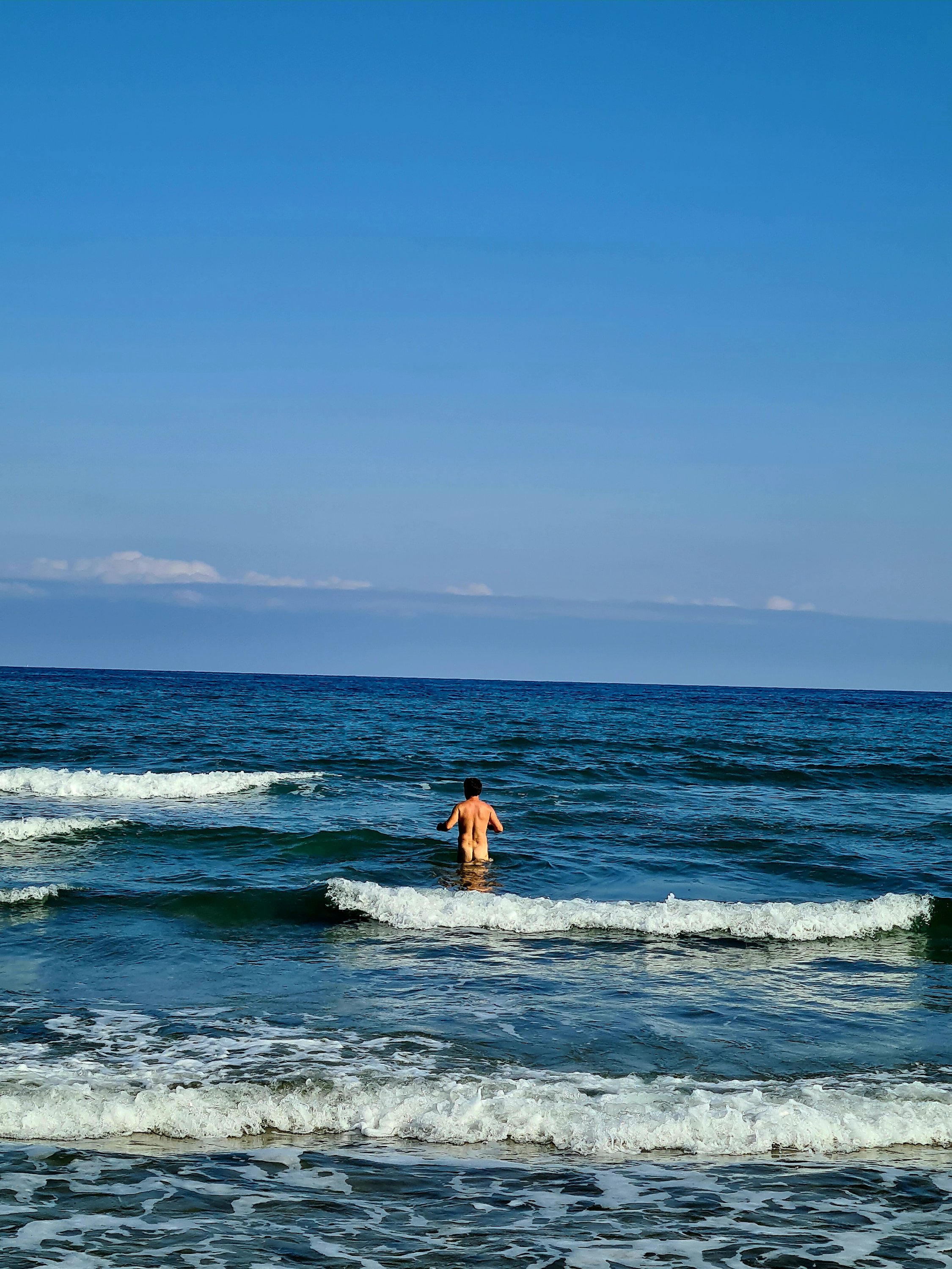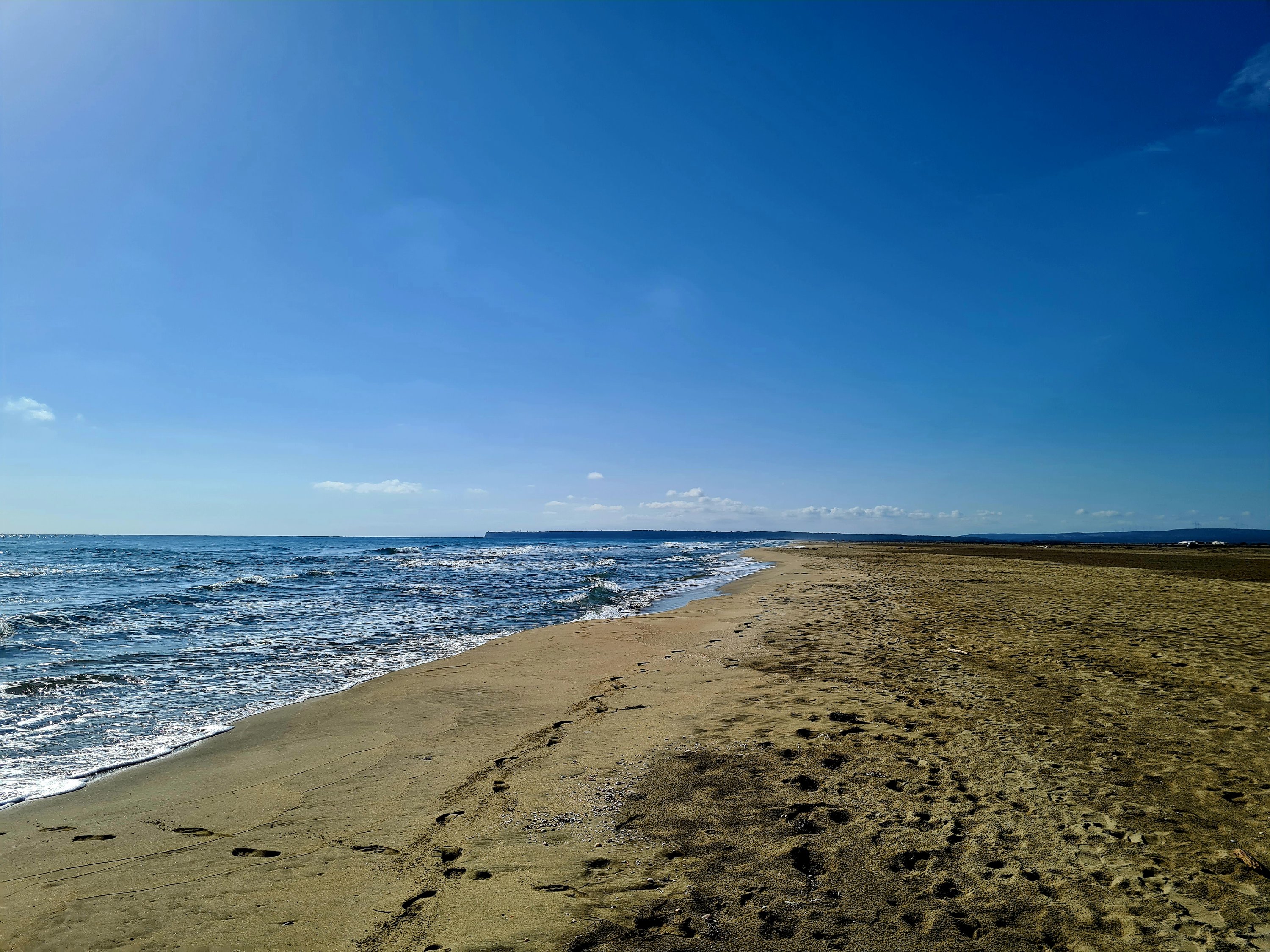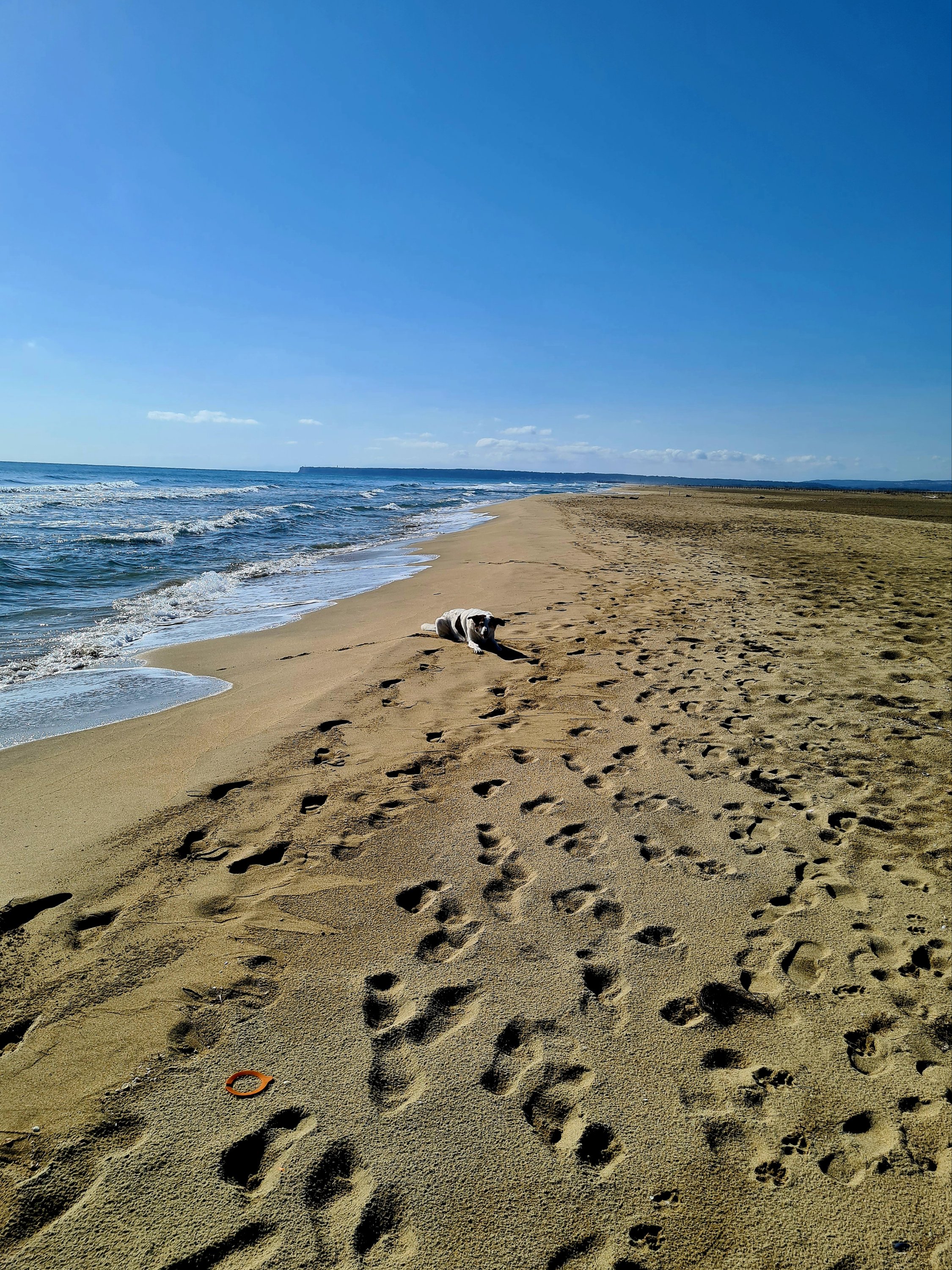 Endlich! Keine Wolke am Himmel und auch kein Wind. Da stellt sich nur die Frage welcher Strand schön wäre. Rouet, der befahrbare Strand direkt neben unserem Stellplatz oder Éole. Beide haben Nachteile: Éole könnte voll sein, weil Sonntag ist, Rouet könnte nass sein, weil es gestern geregnet hat.