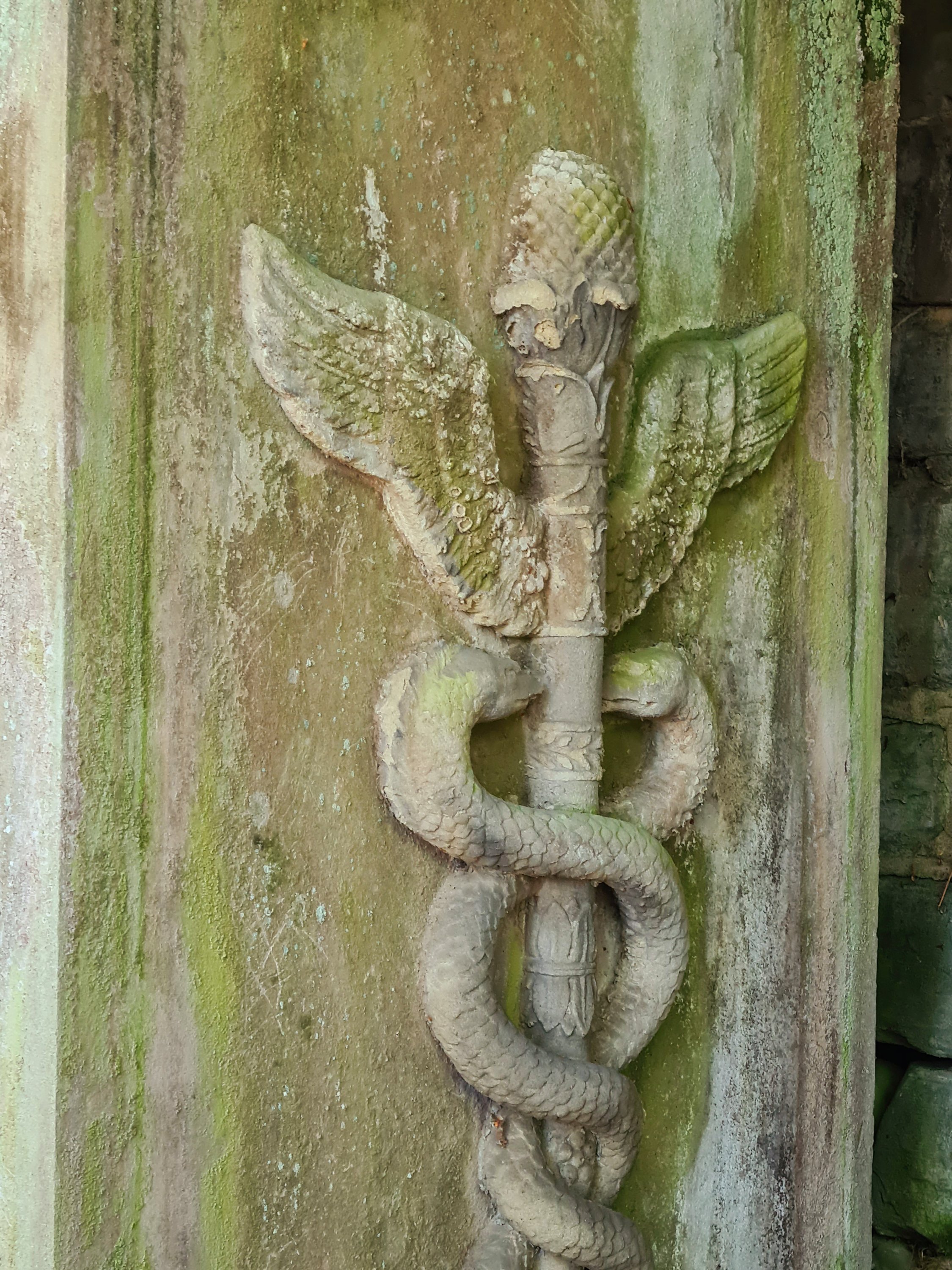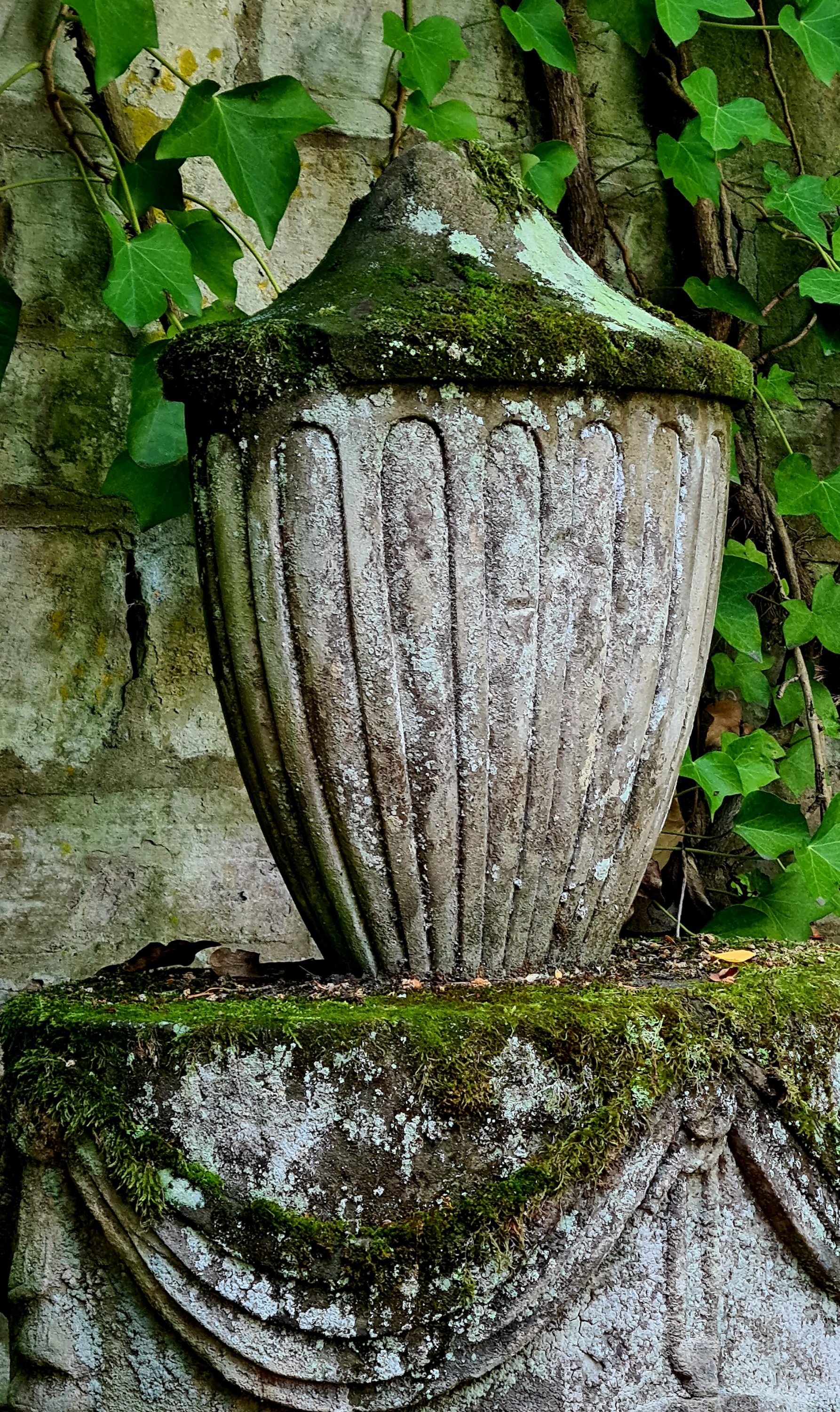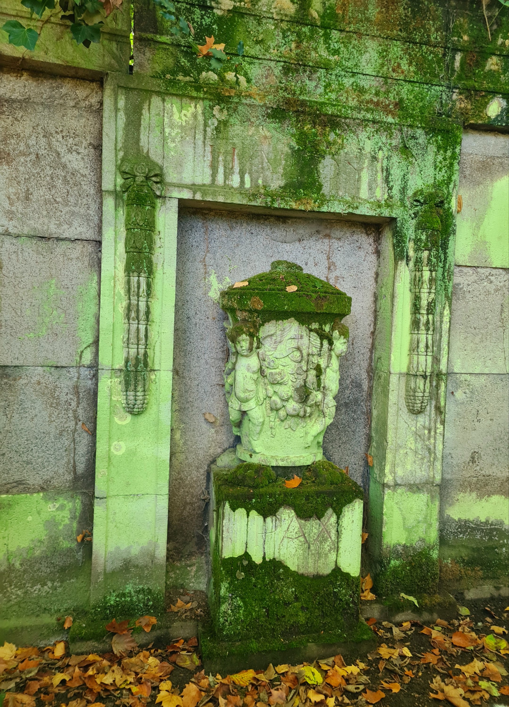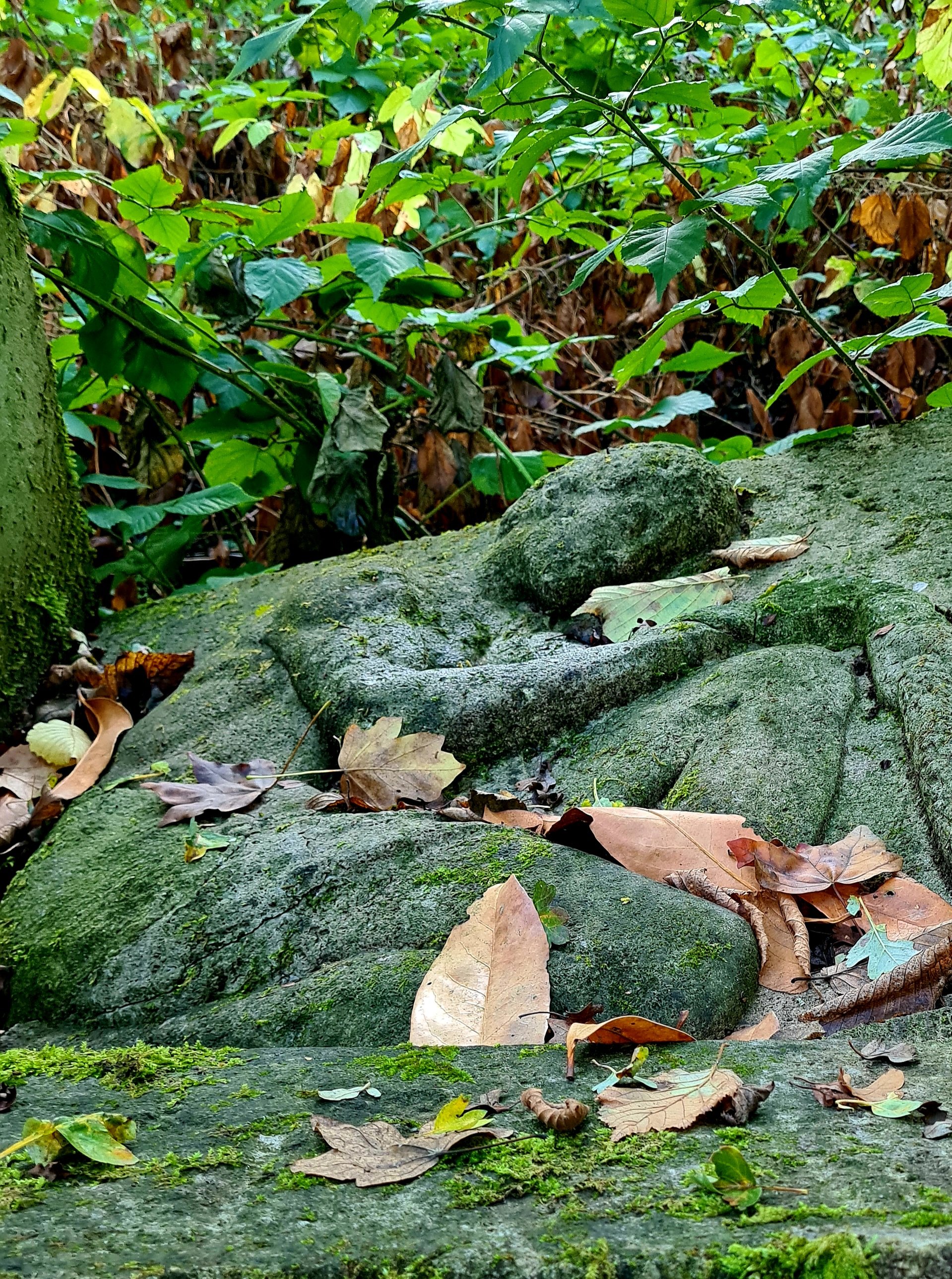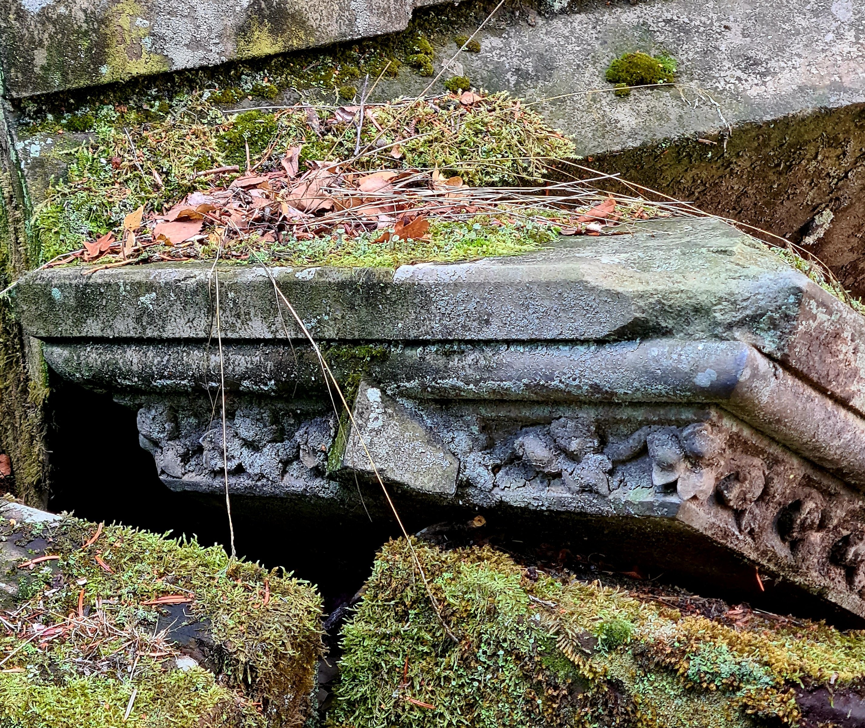 Carmen ist von den wunderschönen mit Moos bedeckten Steinmetzarbeiten immer wieder begeistert.