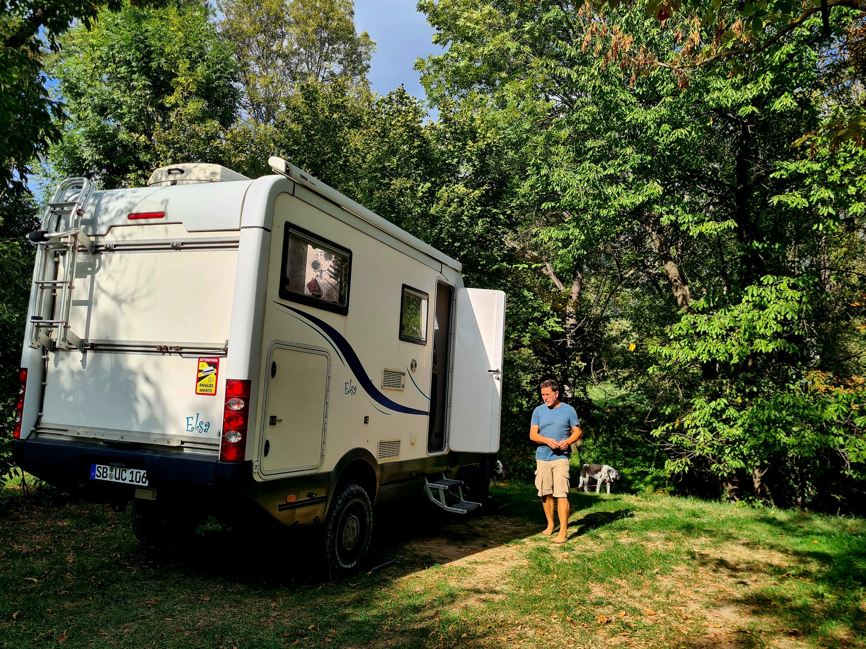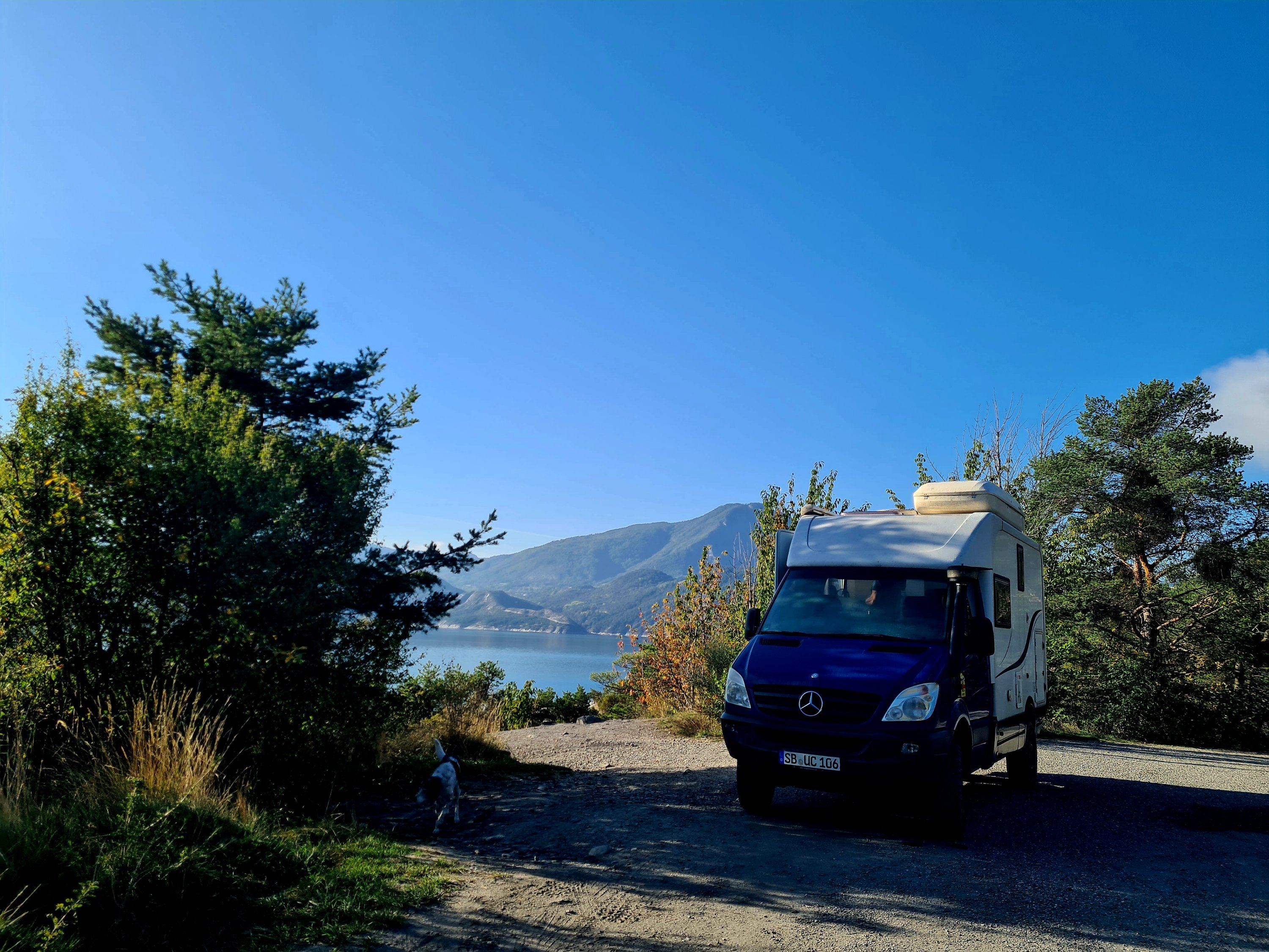 Wir bekommen einen tollen Platz mit eigener Badestelle bzw. Trinkstelle für Mina. Wasser aus dem Napf? Igitt!