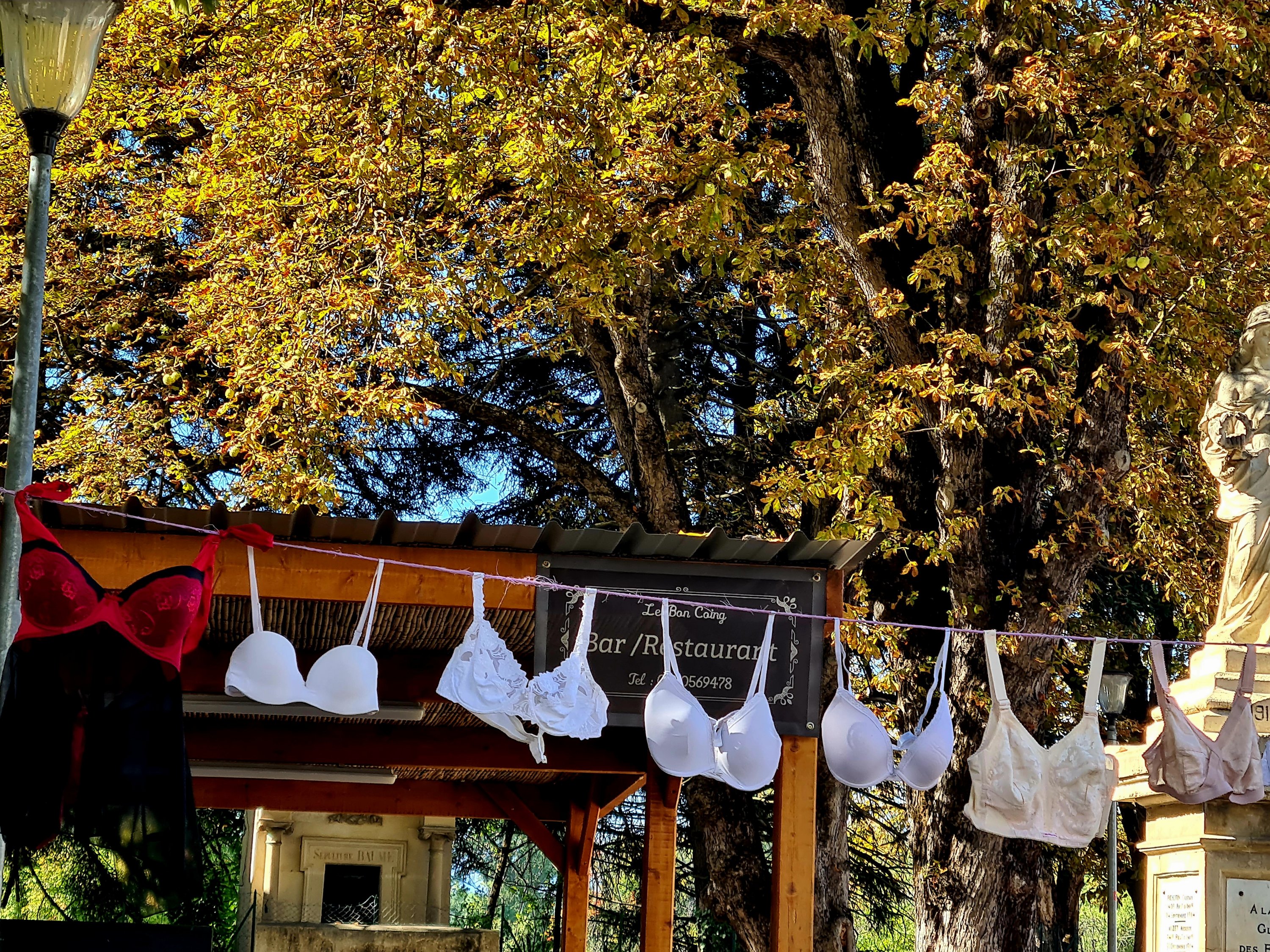 Wir fahren durch einen kleinen Ort, der überall mit Dessous dekoriert ist.