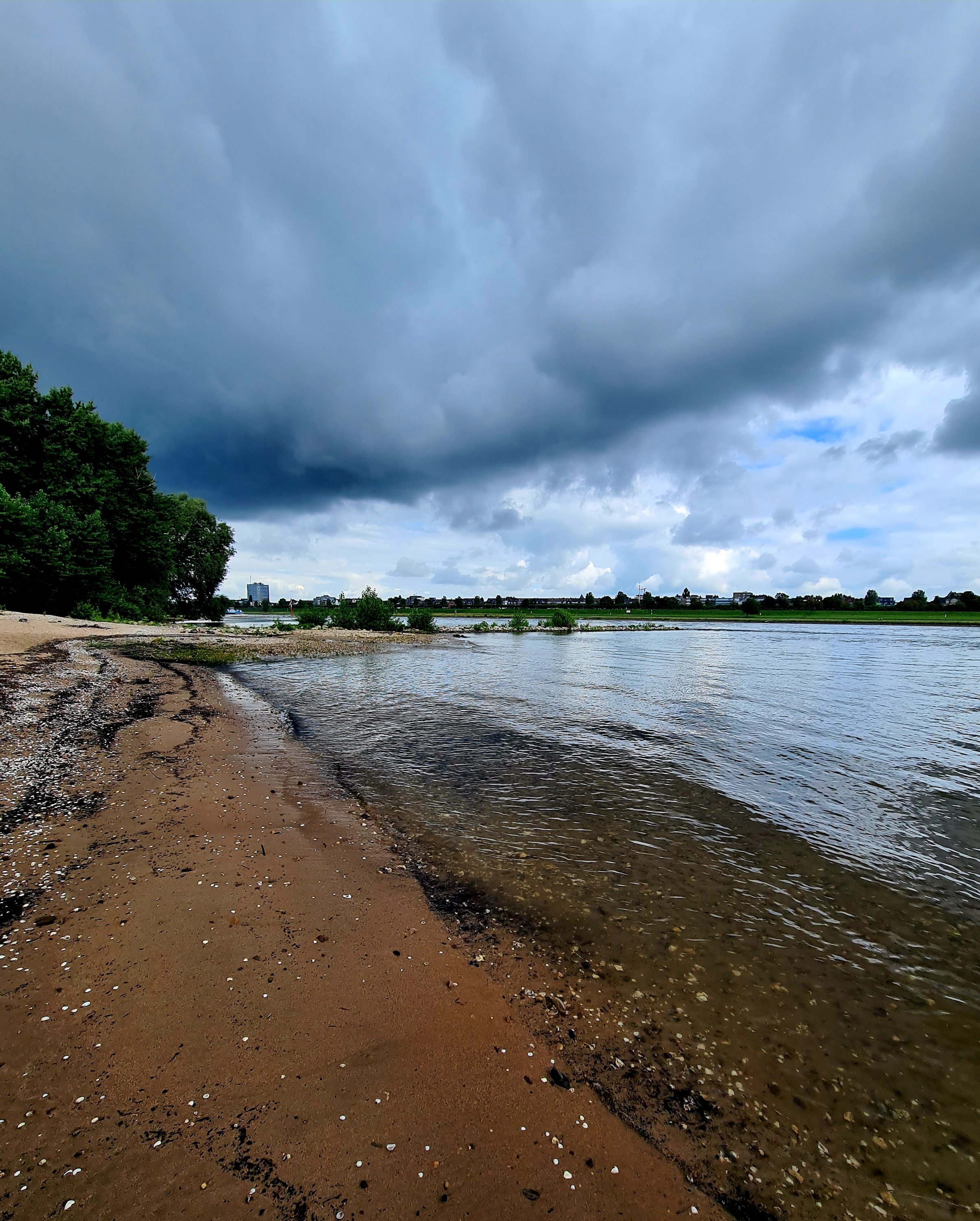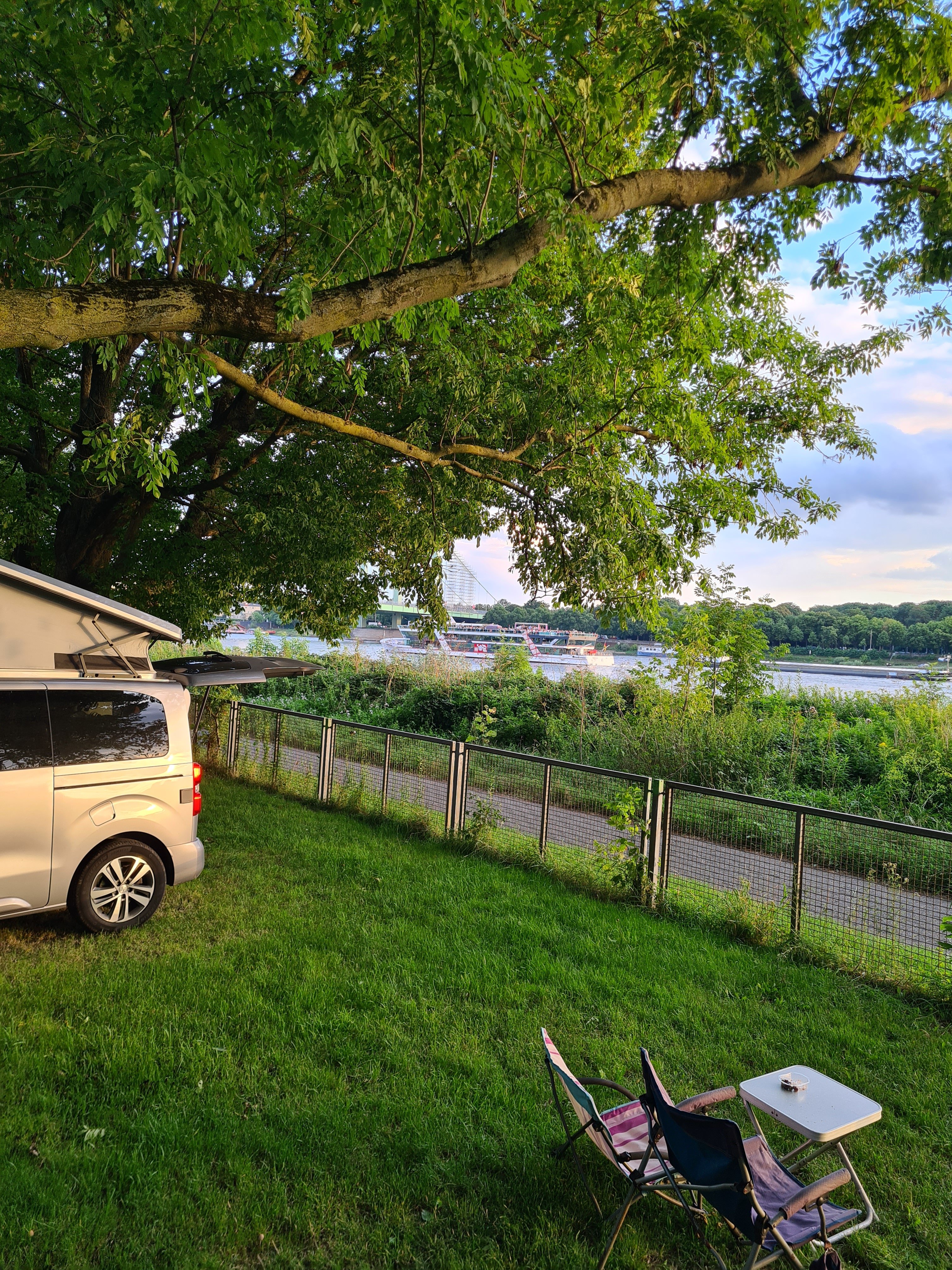 Bis Düsseldorf sind es 50 km. Wir finden einen Stellplatz direkt am Rhein. Von hier kann Uwe in 5 Minuten ins Büro radeln und Carmen spaziert fast 2 h lang zum Düsseldorfer Paradies-Strand und wieder zurück.