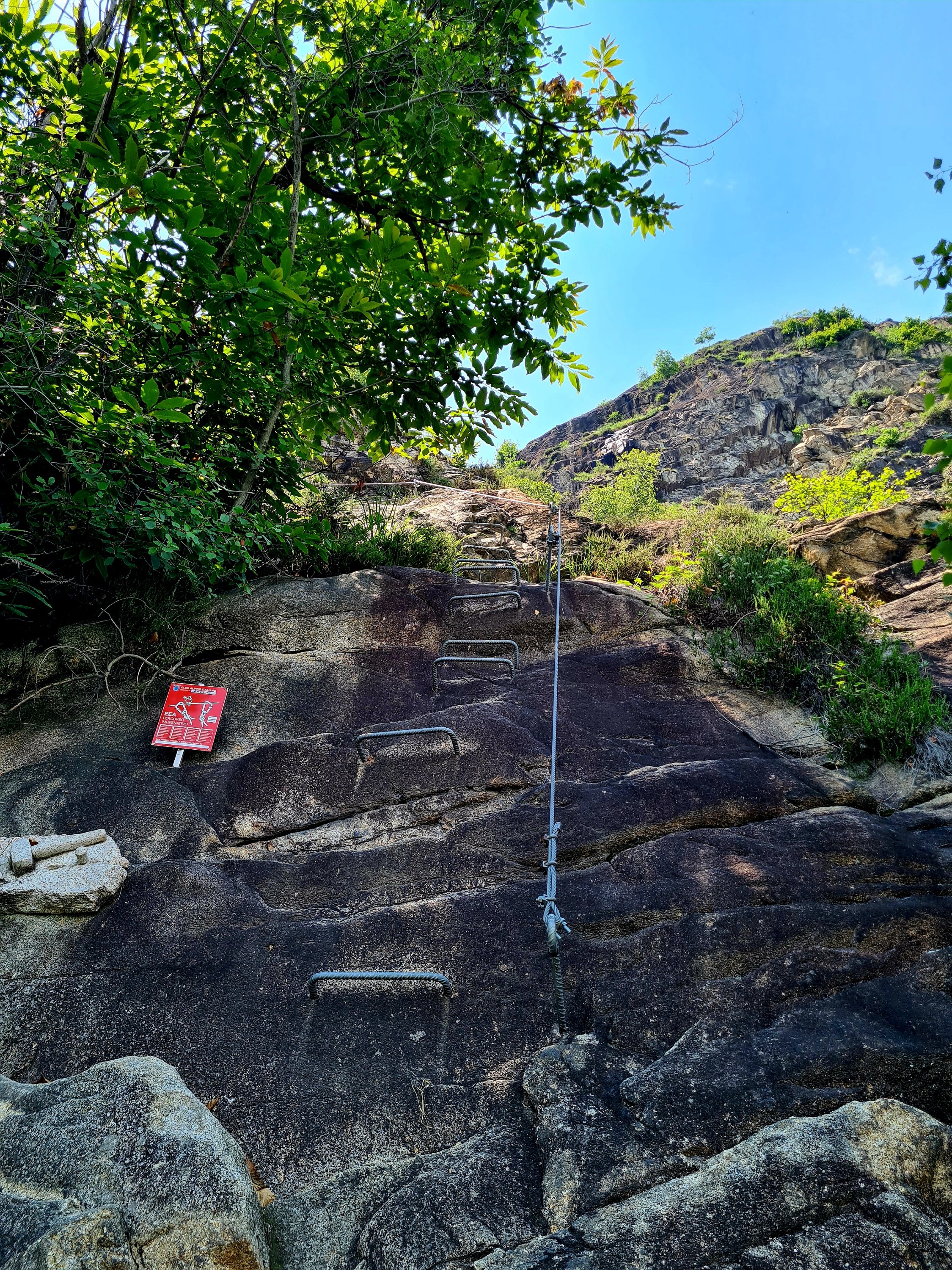 Heute wollen wir nach Feriolo (180 km) an den Lago Maggiore zum Klettern. Klettersteige sind ja in diesem Urlaub bisher ausgefallen. Wir müssen also früh los, damit es nicht so heiß wird. Um 8 Uhr sind es schon 20 Grad, aber wir hoffen, dass es in den Bergen kühler bleibt.