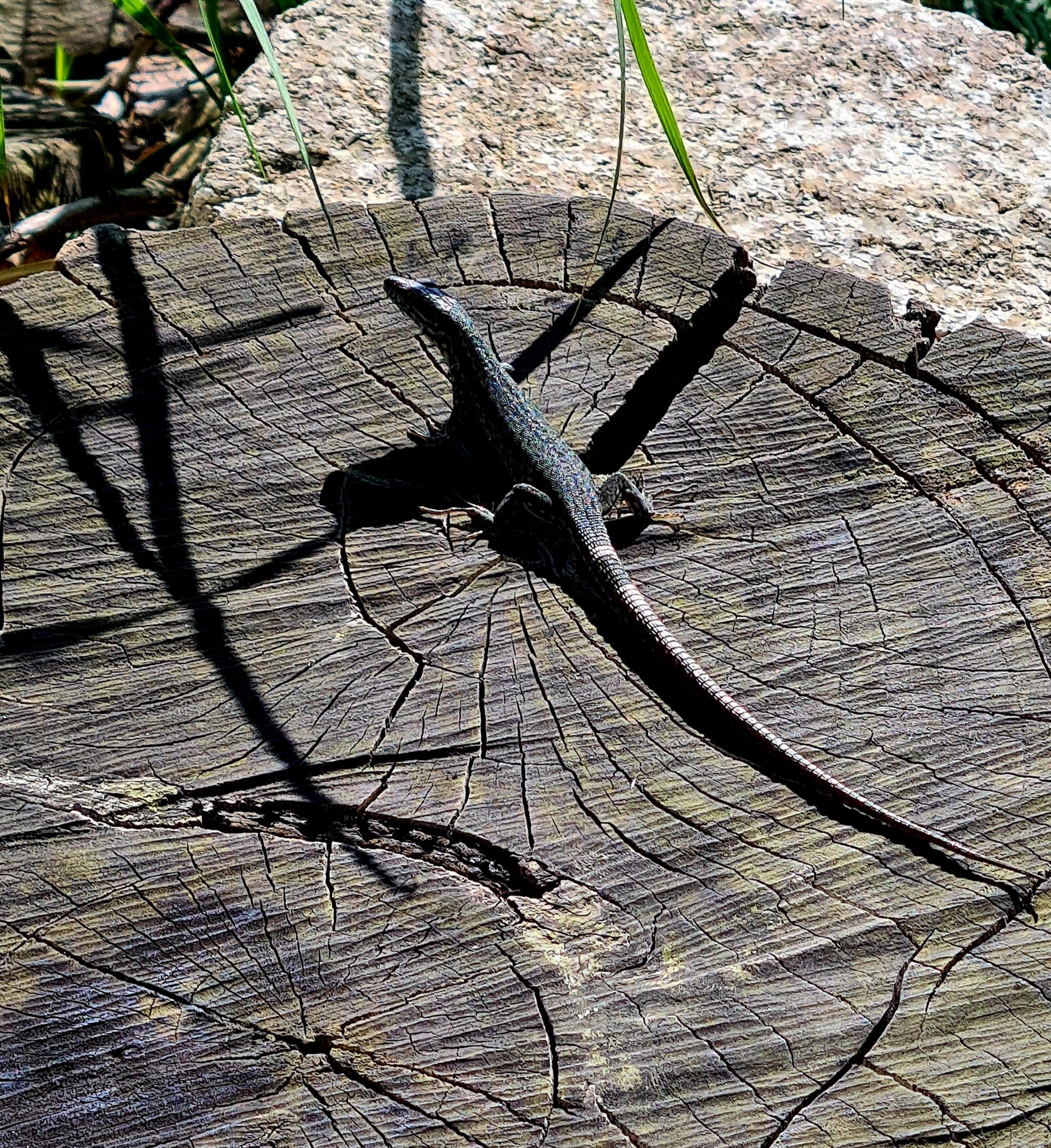Schon bald stellt heraus, dass manche Tritte für kleine Menschen zu weit auseinander liegen. Carmen ist zwar gelenkig, sie muss ja schließlich auch aufs Pferd, aber in manchen Passagen hat sie keine Idee, wie man das schaffen könnte. Irgendwann ist es geschafft. Wir besichtigen noch die Höhle.