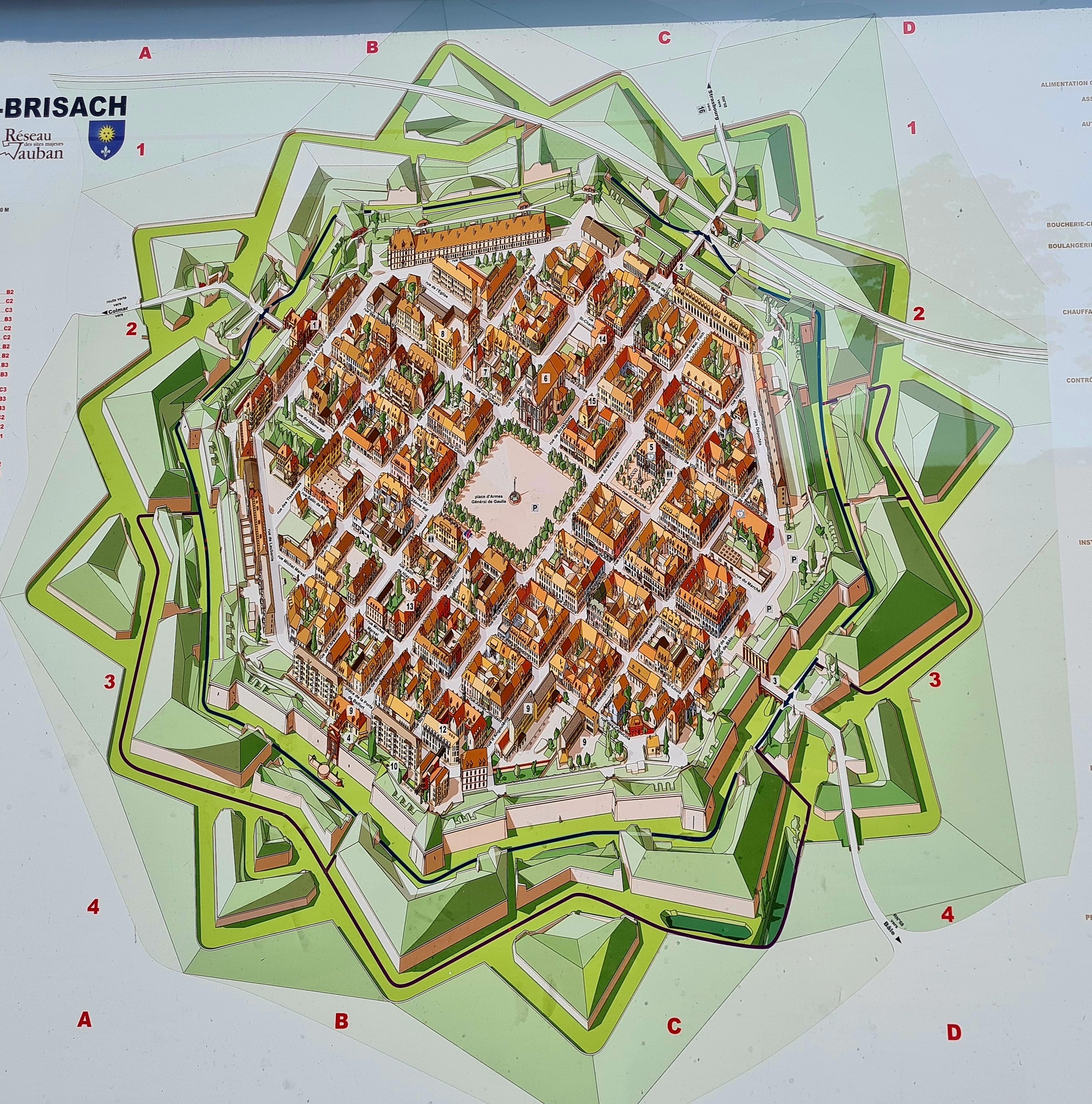 Neuf-Brisach ist genau 5 km von uns entfernt. Die Stadt wurde von Vauban im Auftrag von Louis XIV gebaut und die Befestigungsanlage beherbergt ein Street-Art-Museum. Da wollen wir nach dem Frühstück vorbei schauen.