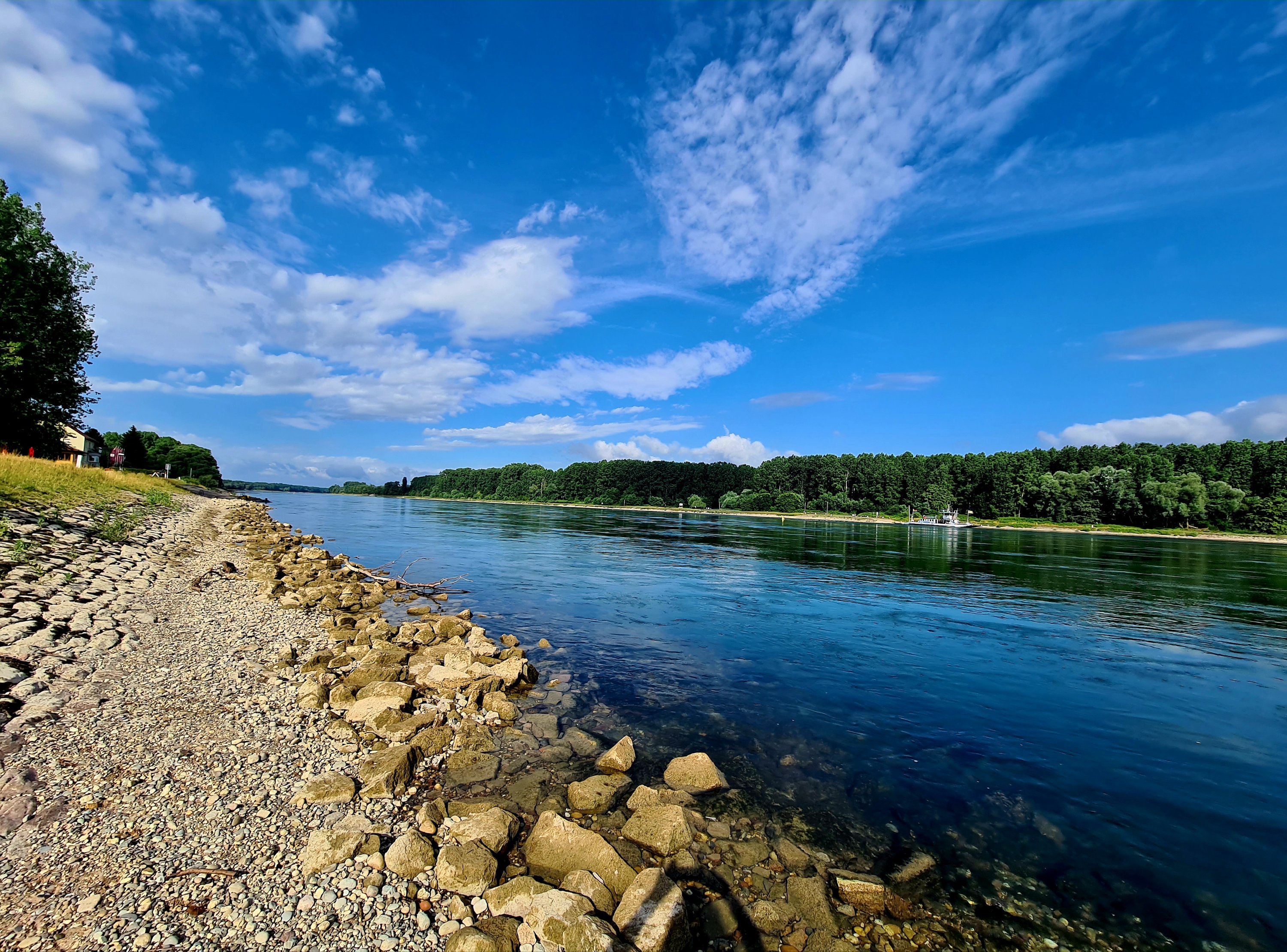 Wenn wir schon mal hier sind, geht es heute zu Uwes Firmen-Event an den Katzenbacher-Hof bei Stuttgart. Zuerst genießen wir noch ein bisschen die wunderschöne Aussicht auf den Rhein und die vorbeifahrenden Schiffe. Im Vergleich zu gestern ist es angenehm kühl und zumindest hier im Rheintal sehr windig.