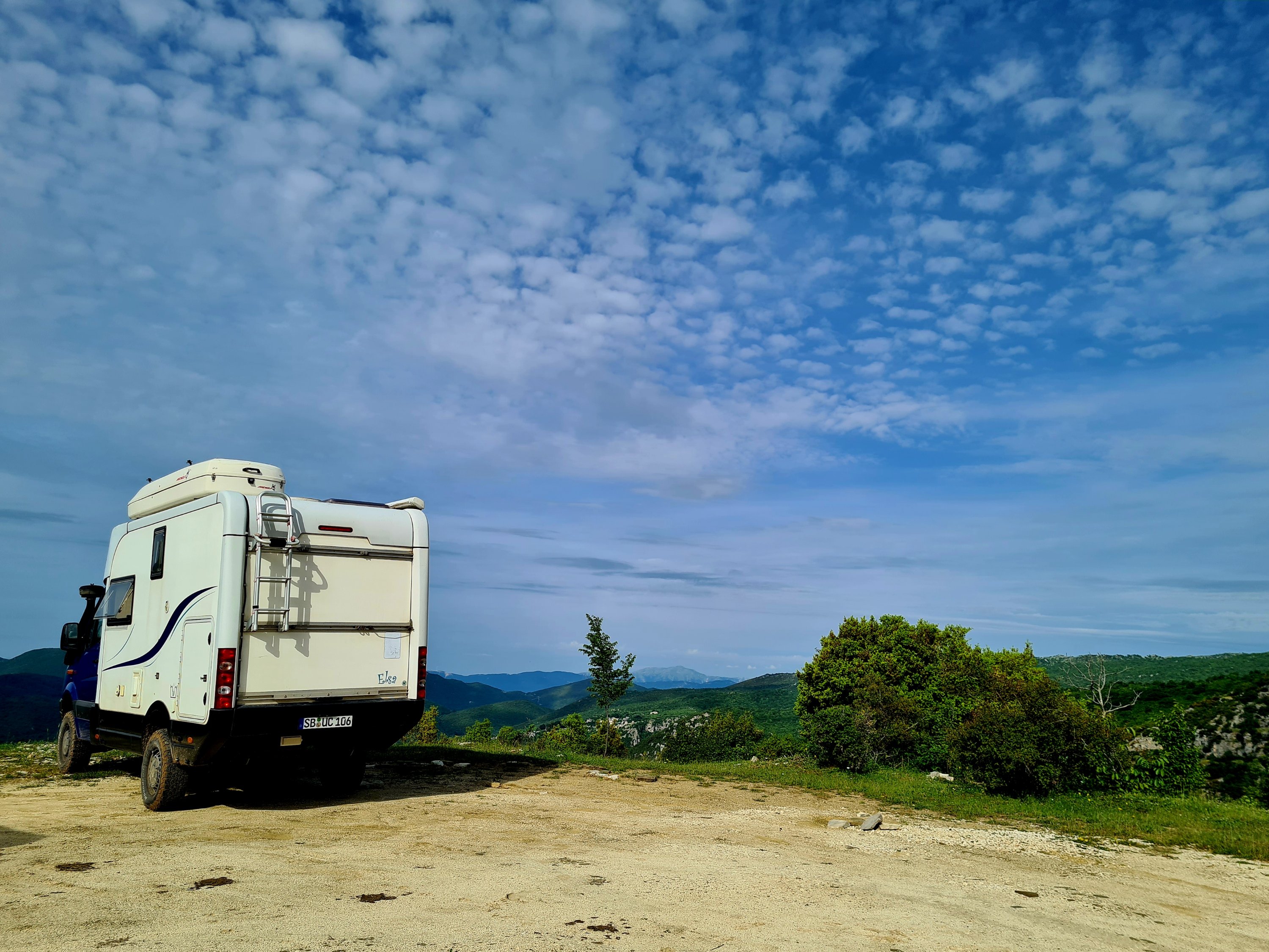 Heute Nacht war es angenehm kühl in unserem Wohnmobil, hier auf 1300 m Höhe. Wir haben eine wunderschöne Aussicht.