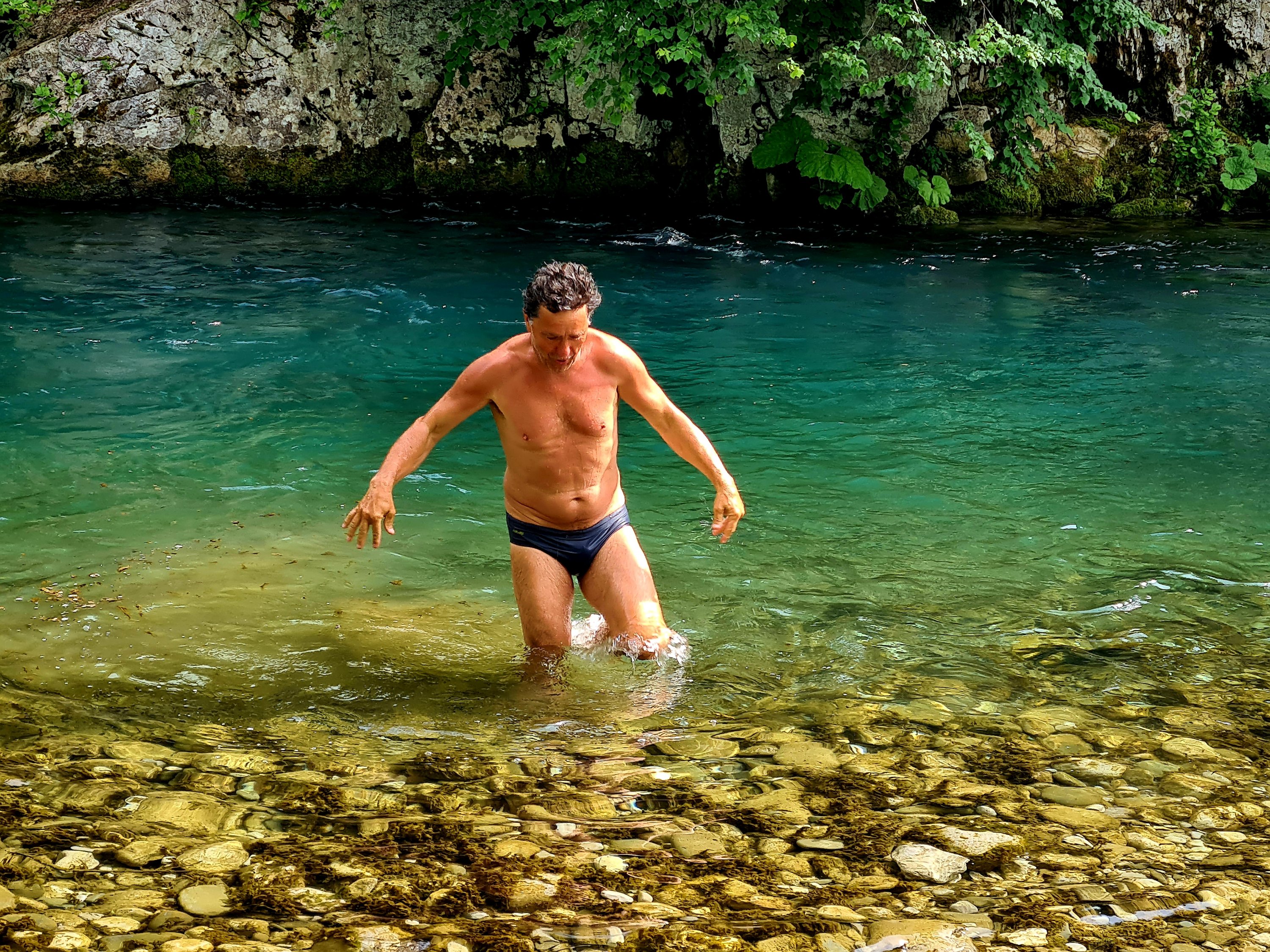 Der Voidomatis war einer der saubersten und kältesten Flüsse Europas. Jetzt nachdem Uwe den Tagesschweiß abgewaschen hat, könnte die Trinkwasser-Qualität vorübergehend gefährdet sein.
