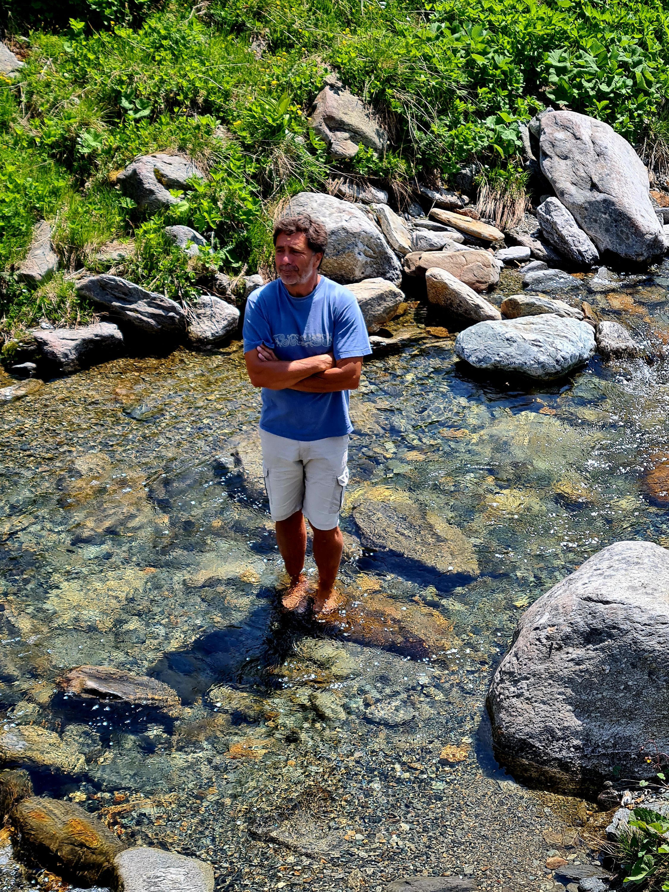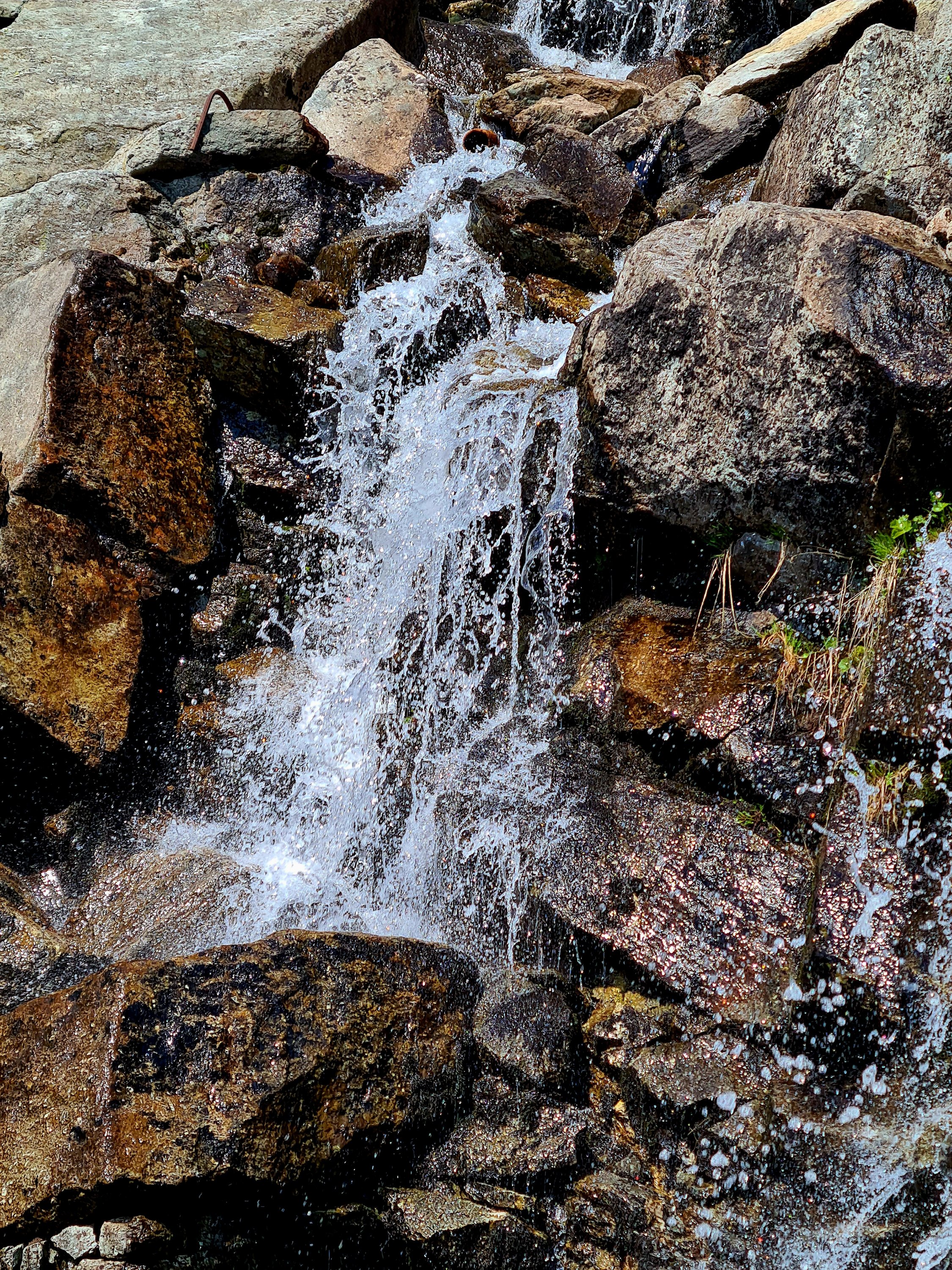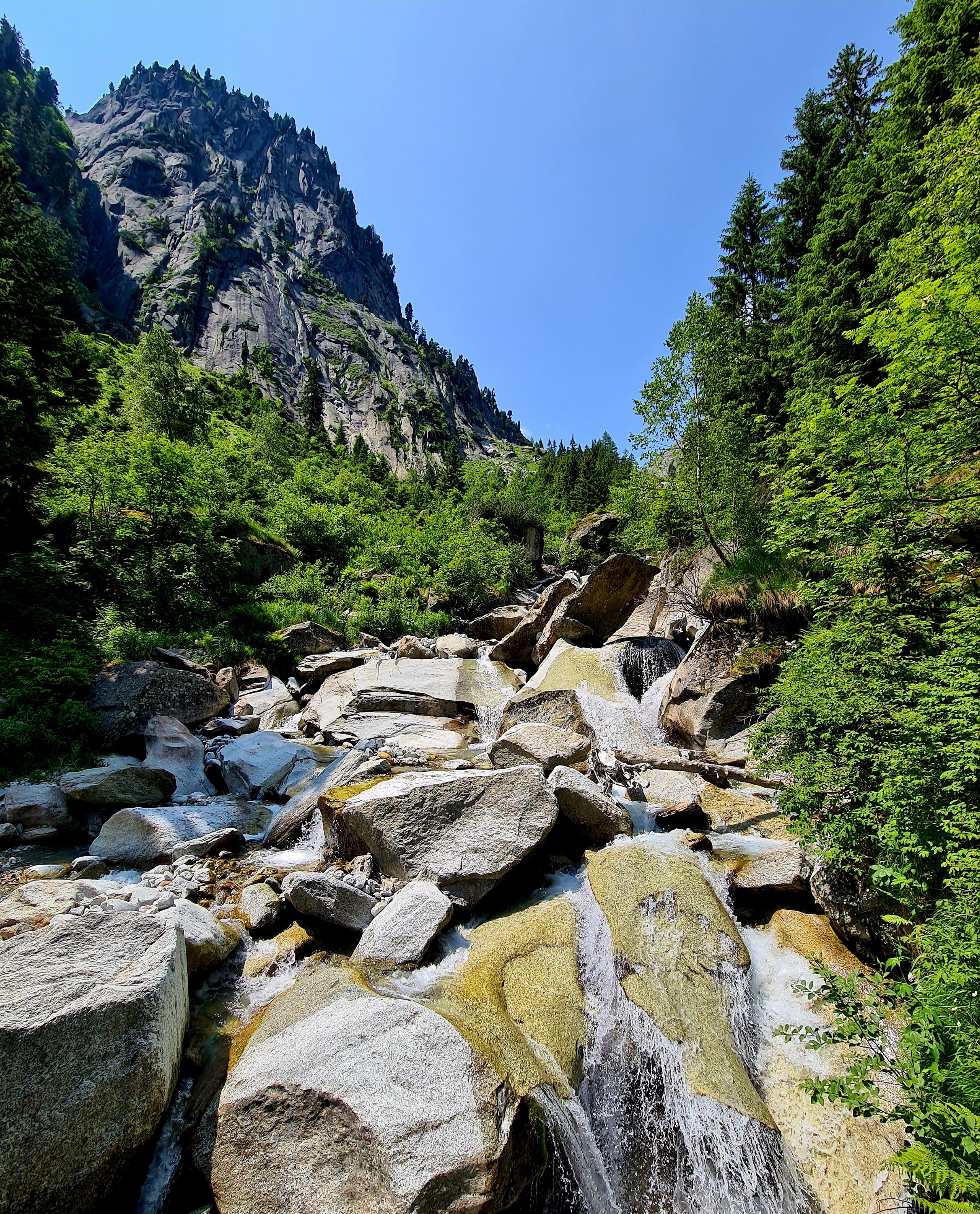 Wir sind in der Schweiz immer offline, weil die Roaming-Gebühren heftig zu Buche schlagen. Daher können wir Komoot nicht zu Rate ziehen und machen es einfach wie früher. Uwe entdeckt in der Ferne einen Wasserfall und beschließt, dass er da hin will. Also geht es aufwärts.