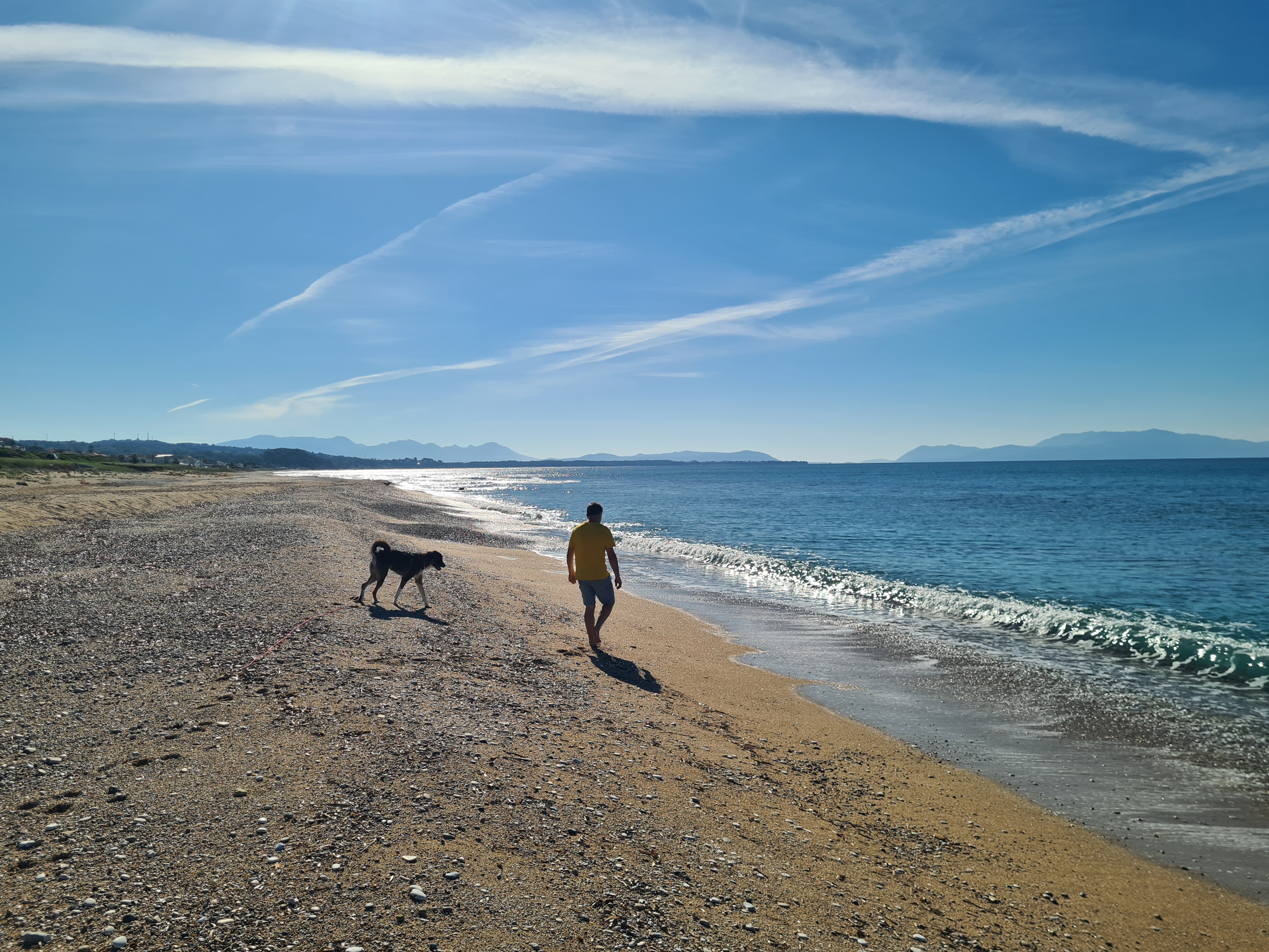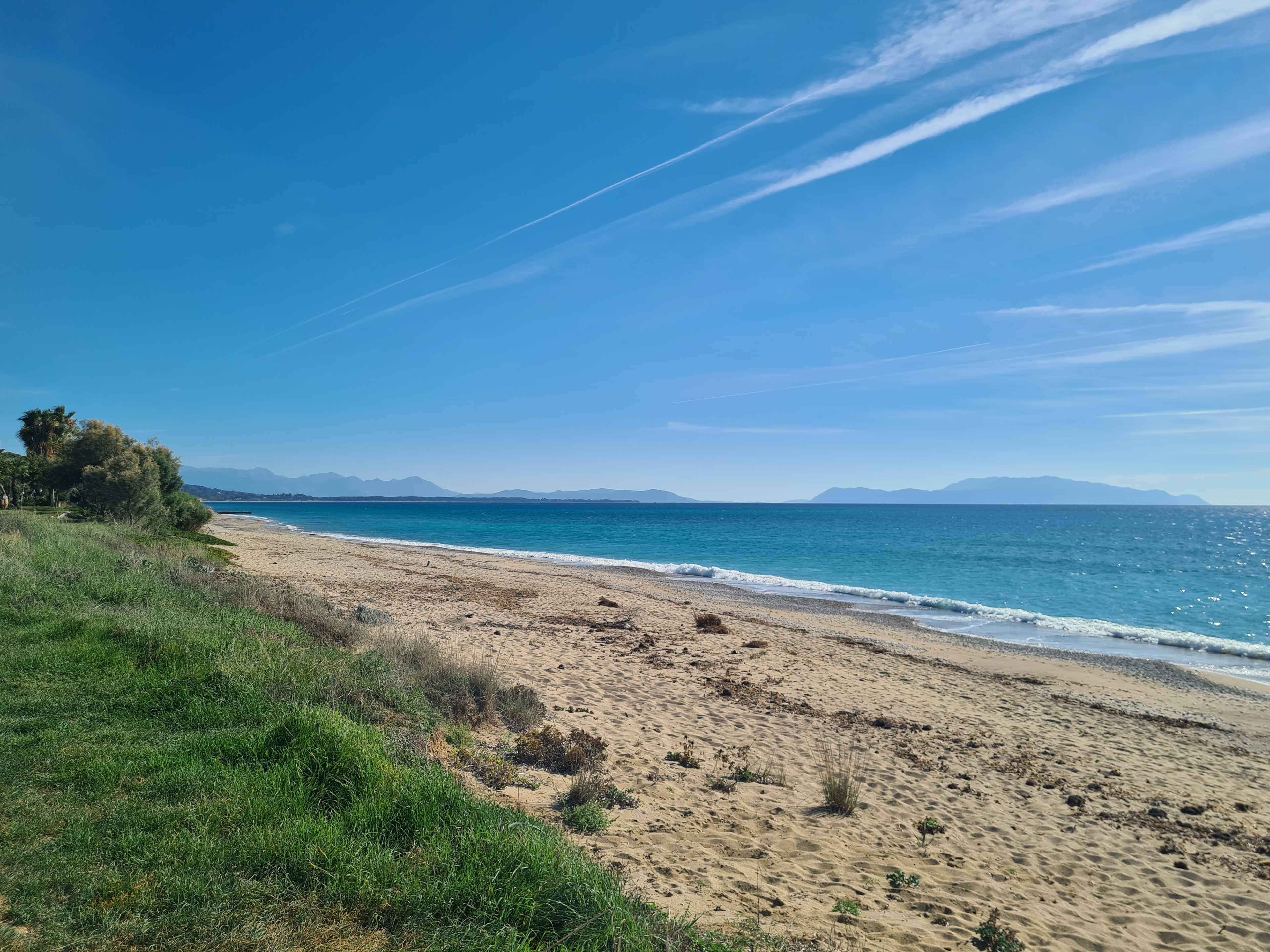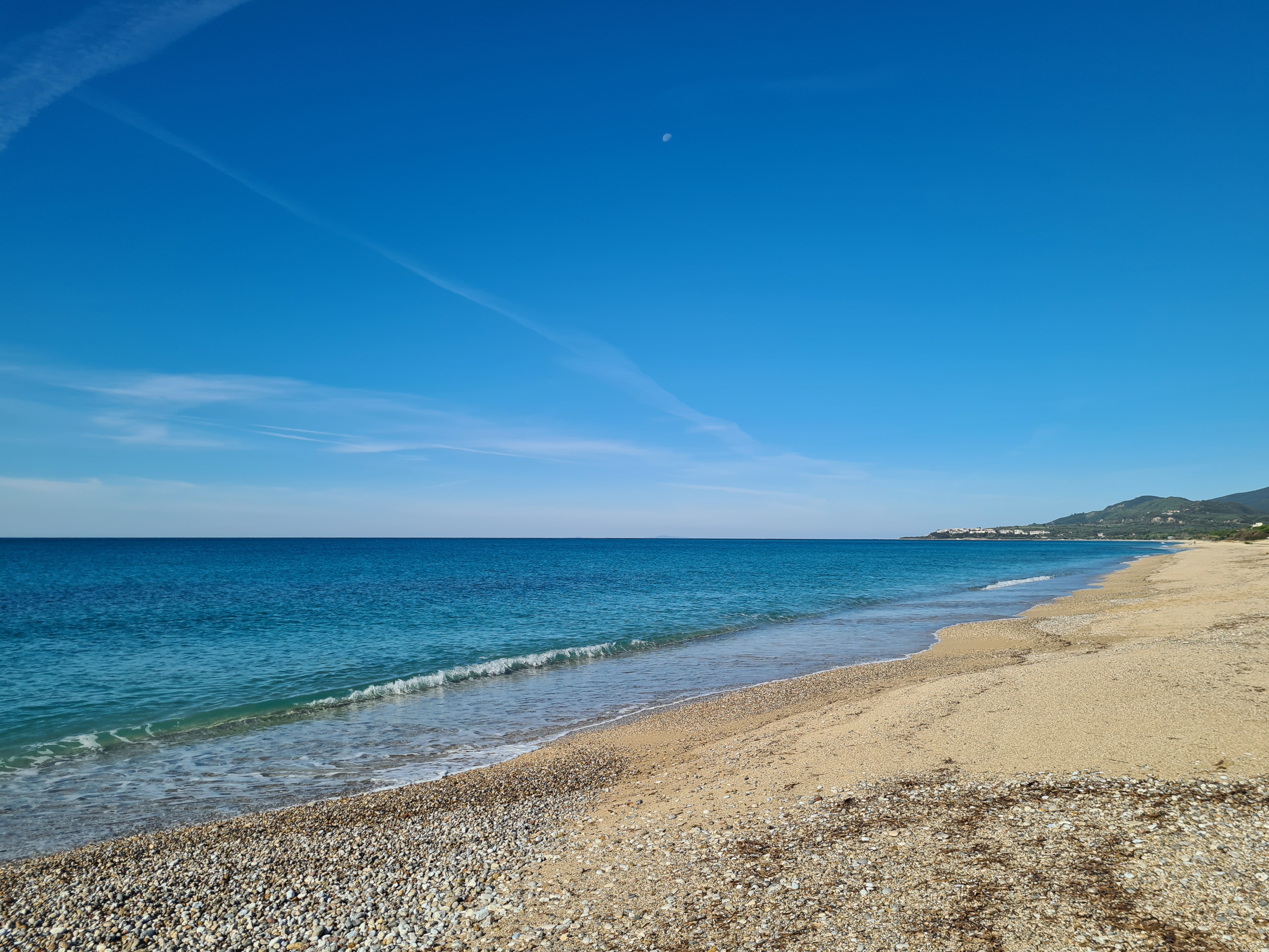 Wir müssen erst am Mittwoch bei Joannis und Nicola sein und können daher heute noch einmal einen gemütlichen Lesetag am Meer verbringen. Allerdings soll es wieder 50 km weiter nach Süden gehen.