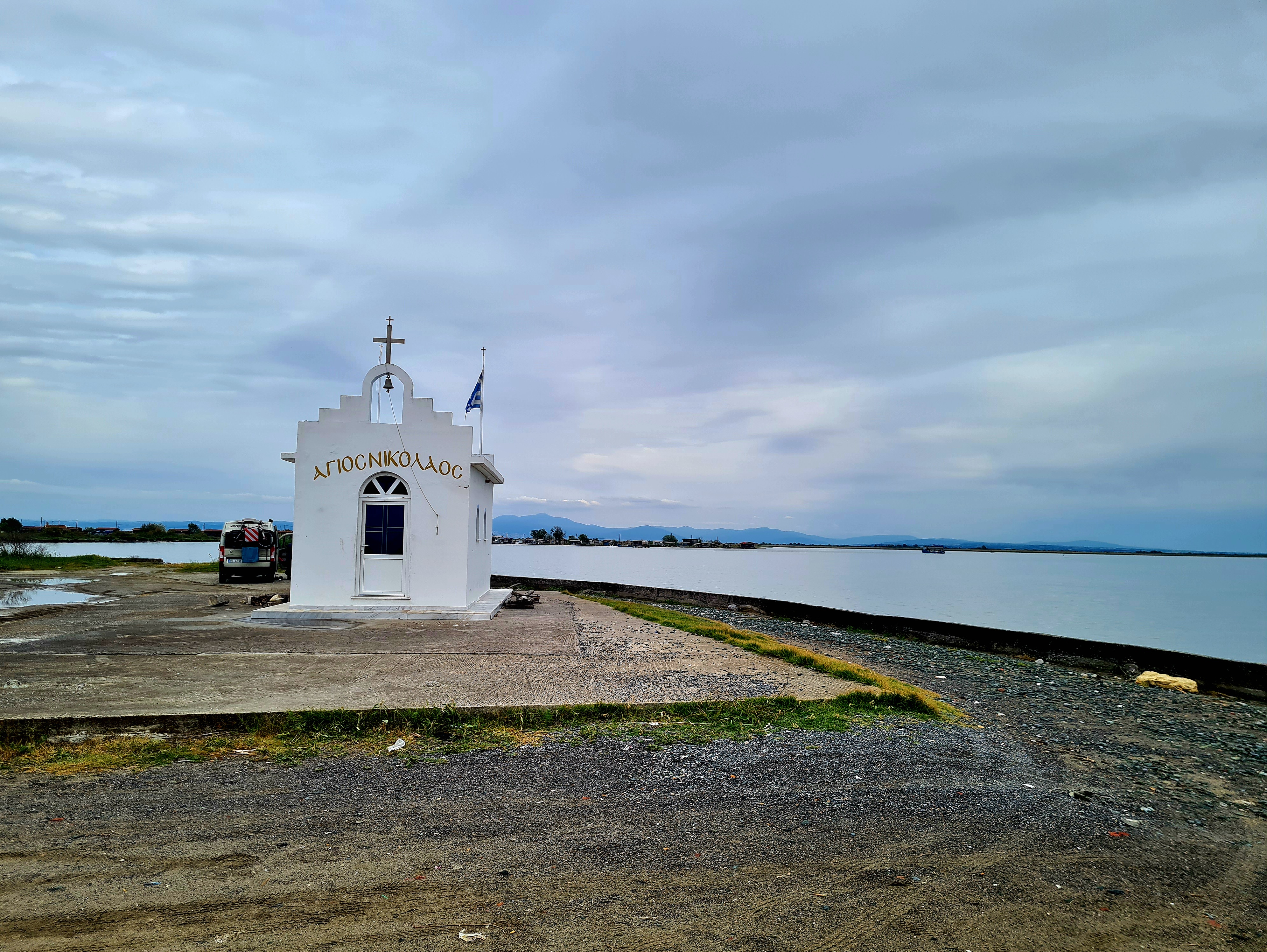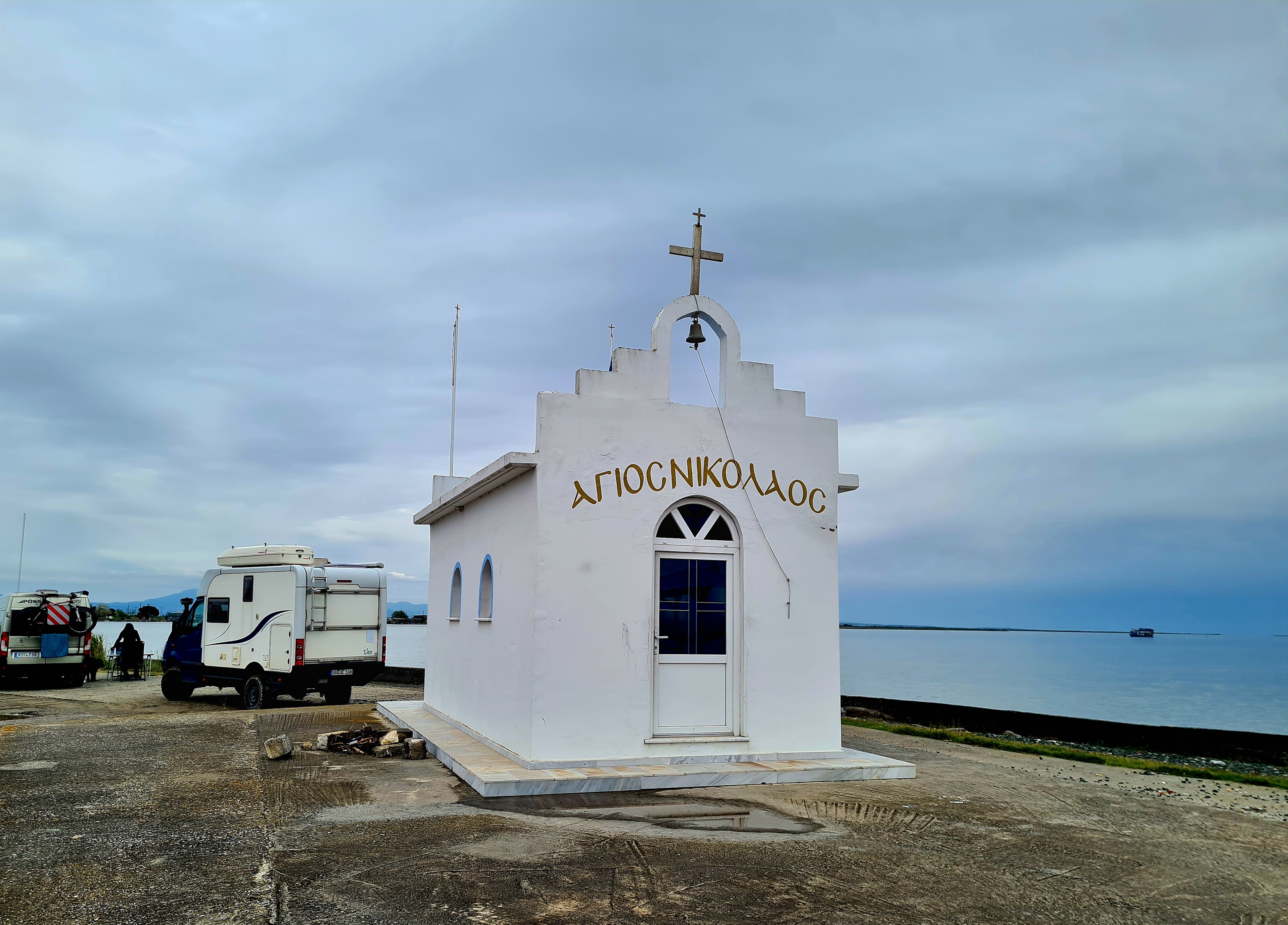 Nach unserem Großputztag geht es in den Axios Nationalpark zu einer kleinen Kapelle. Man muss sich schon ein bisschen wundern, wieso das hier ein Nationalpark sein soll, der auch noch mit EU-Mitteln gefördert wurde. Hier ist es nämlich recht zugemüllt. Es gibt sehr viele Fischerboote, Ruinen und Hüttchen entlang des Flussufers, die in schlechtem Zustand sind. Das ist ein Übernachtungsplatz, mehr nicht. Noch einmal werden wir hierher sicherlich nicht fahren. Aber wir haben hier andere nette Wohnmobil-Fahrer kennengelernt und es ist ja auch einmal schön, Erfahrungsaustausch zu betreiben.