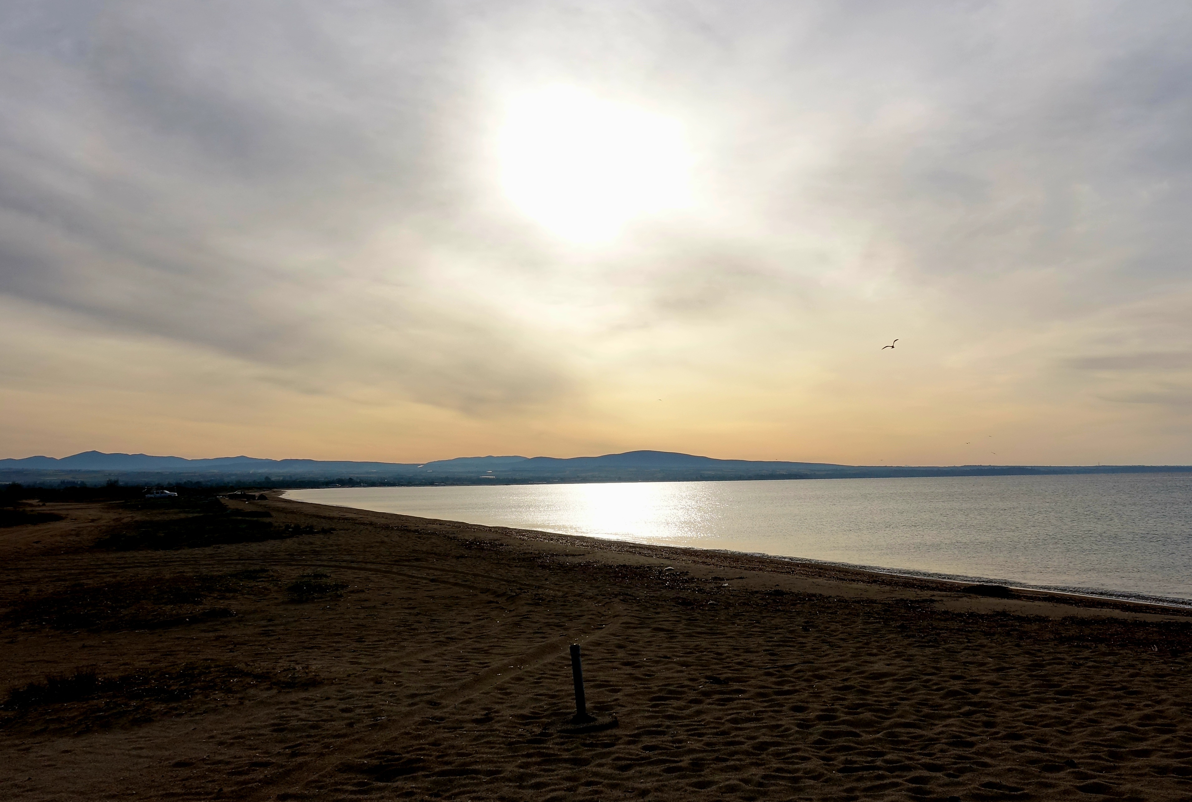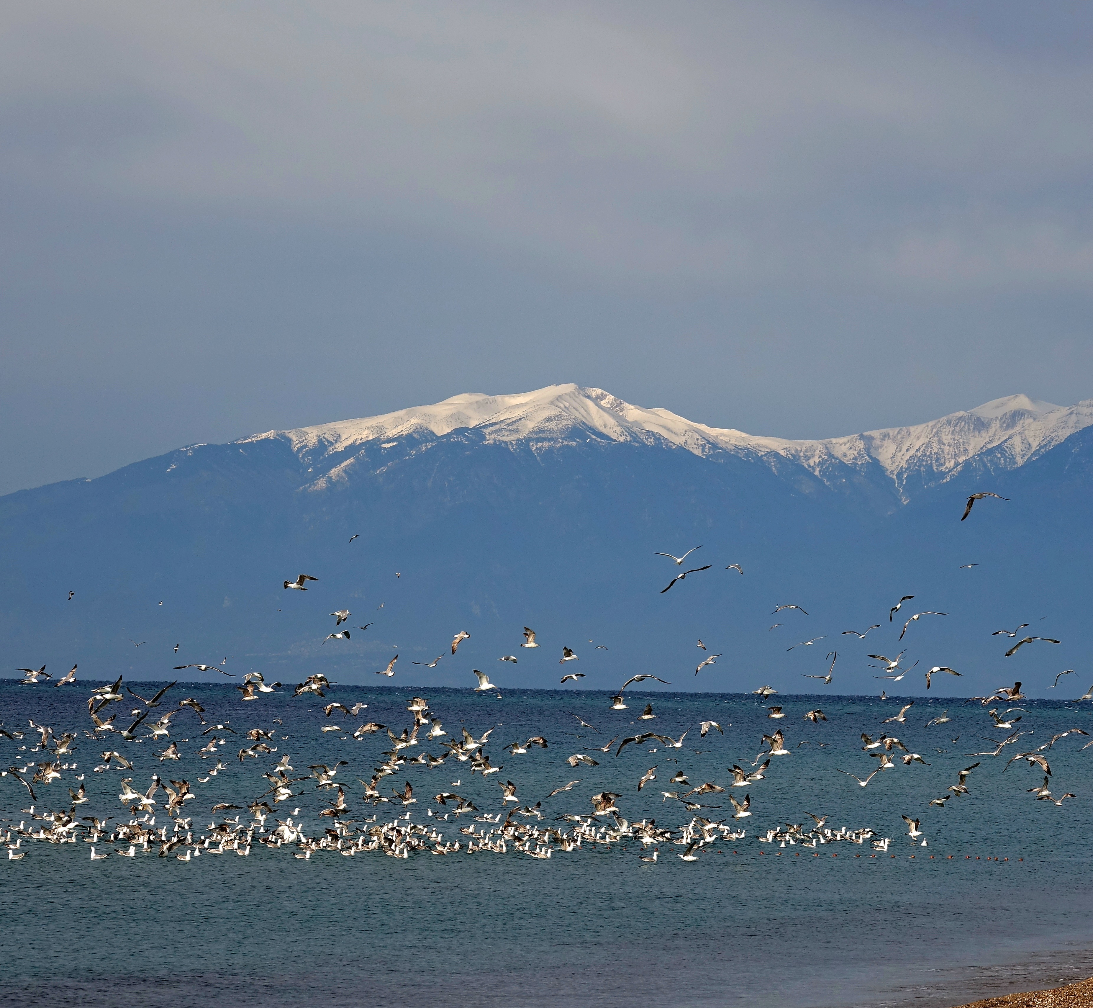 Heute Morgen kann man den schneebedeckten Olymp ohne Wolken sehen. Kein Wunder, dass dort noch Schnee liegt. Er ist immerhin 2900 m hoch.