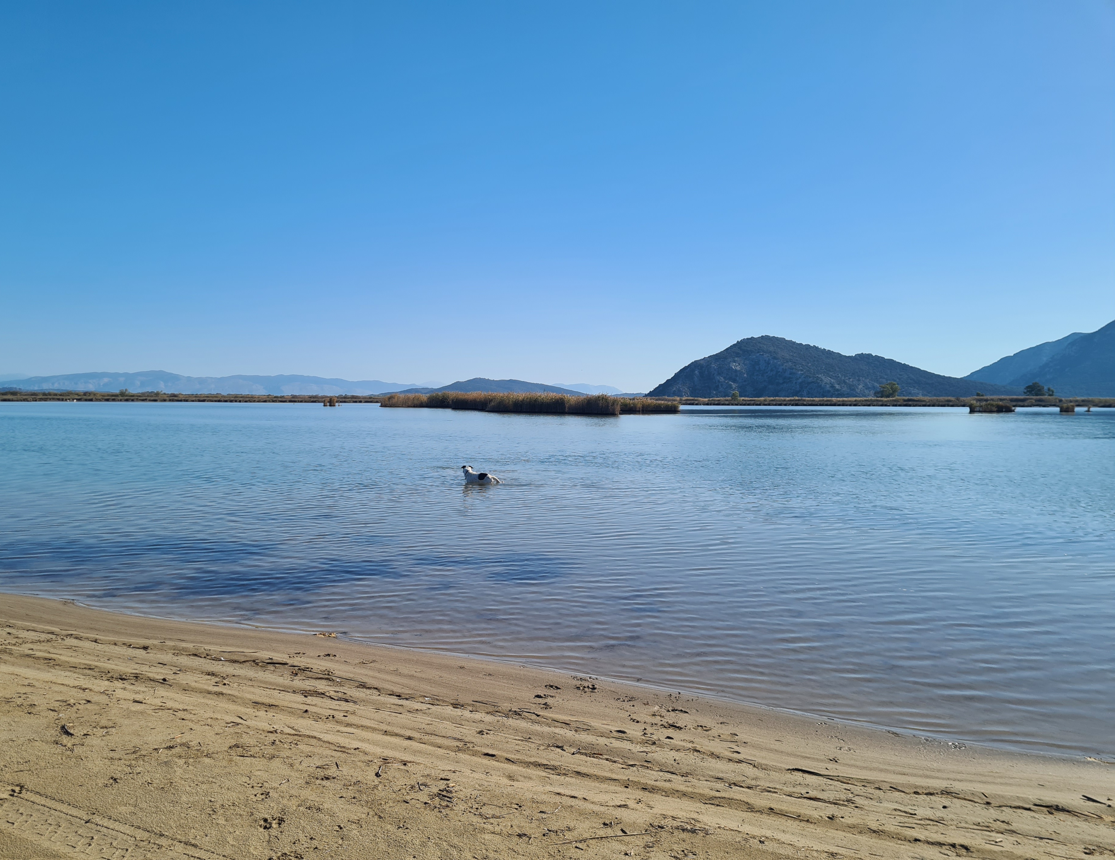 Rudi nimmt ein Bad in der Lagune und die Hunde spielen wunderschön zusammen.