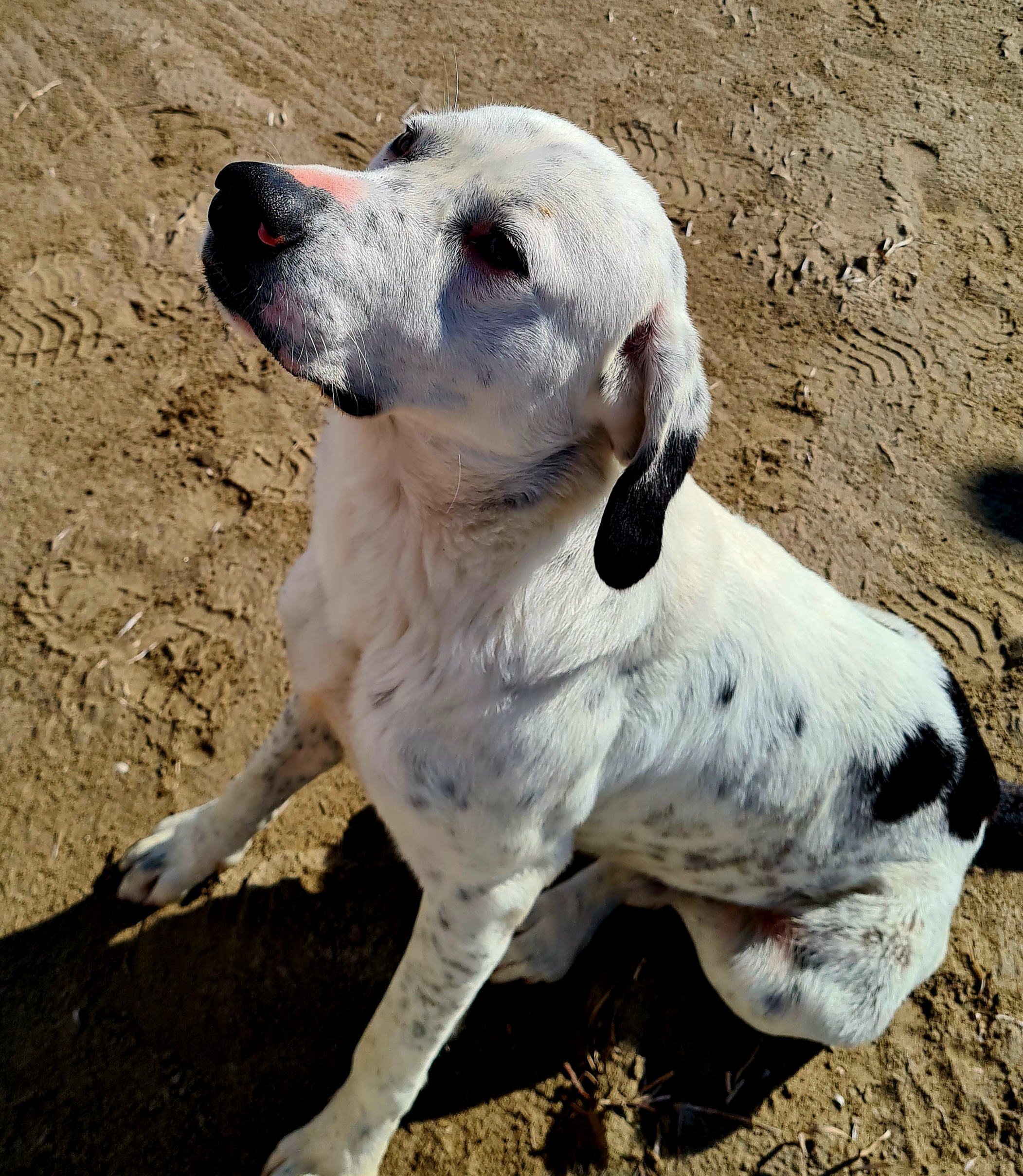 Dieser Rüde war vor eineinhalb Jahren noch ein kleiner Welpe, der hier mit seiner Mutter und den Geschwistern aufgewachsen ist. Er ist alleine übrig geblieben, sieht gesund und recht gut genährt aus.