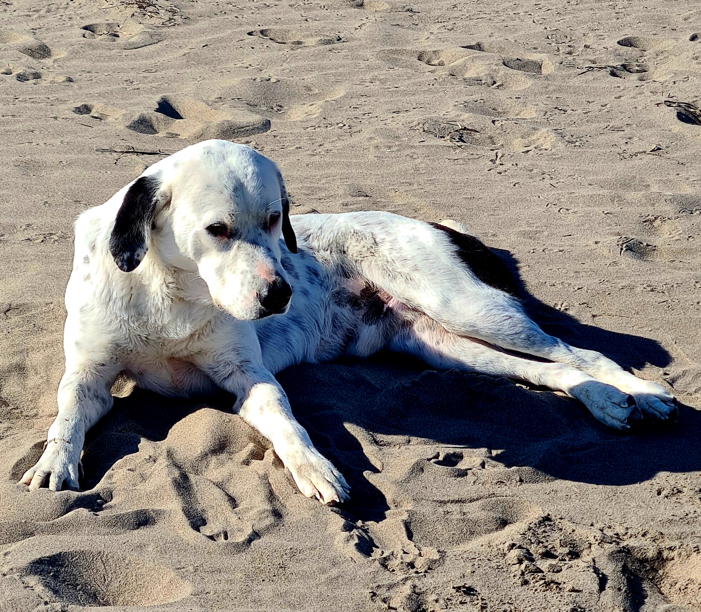 Tsimari hat endlose Strände und liebe Strandhunde.