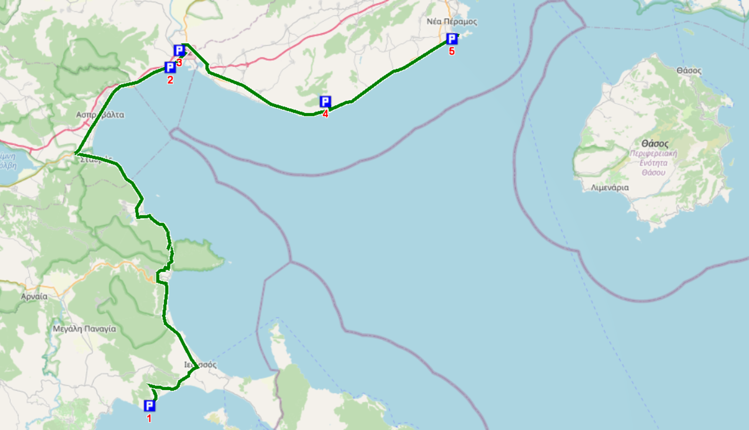 Wir fahren über die alte Nationalstraße weiter in Richtung Kavala und haben dern 3. Finger von Chalkidiki (Athos) schon hinter uns gelassen.