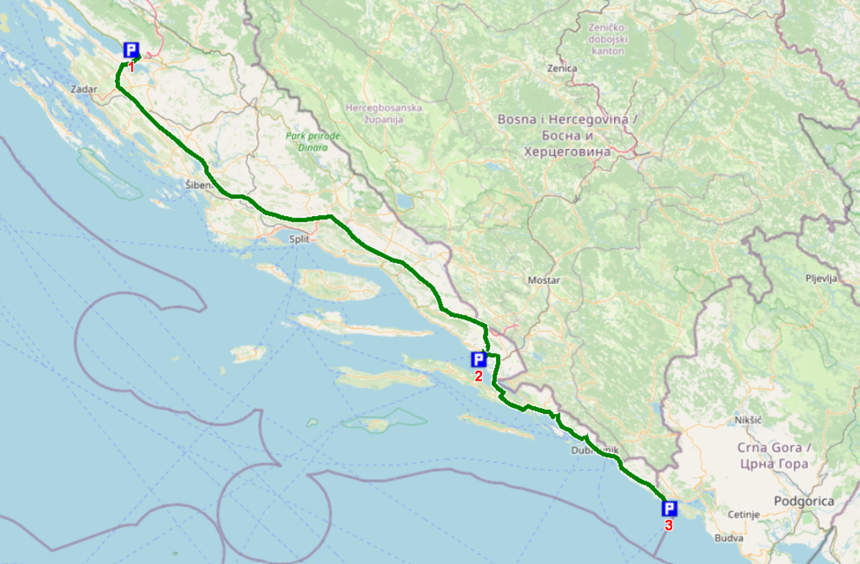 Nach der Pause geht es noch einmal 140 km weiter bis zur montenegrinischen Grenze, zum Fähranleger Vitaljina. Das ist der südlichste Punkt Kroatiens und war bis vor kurzem militärisches Sperrgebiet. Die Lage von Vitaljina ist sooo ideal, dass dort sicher in naher Zukunft ein Ferienresort stehen wird.