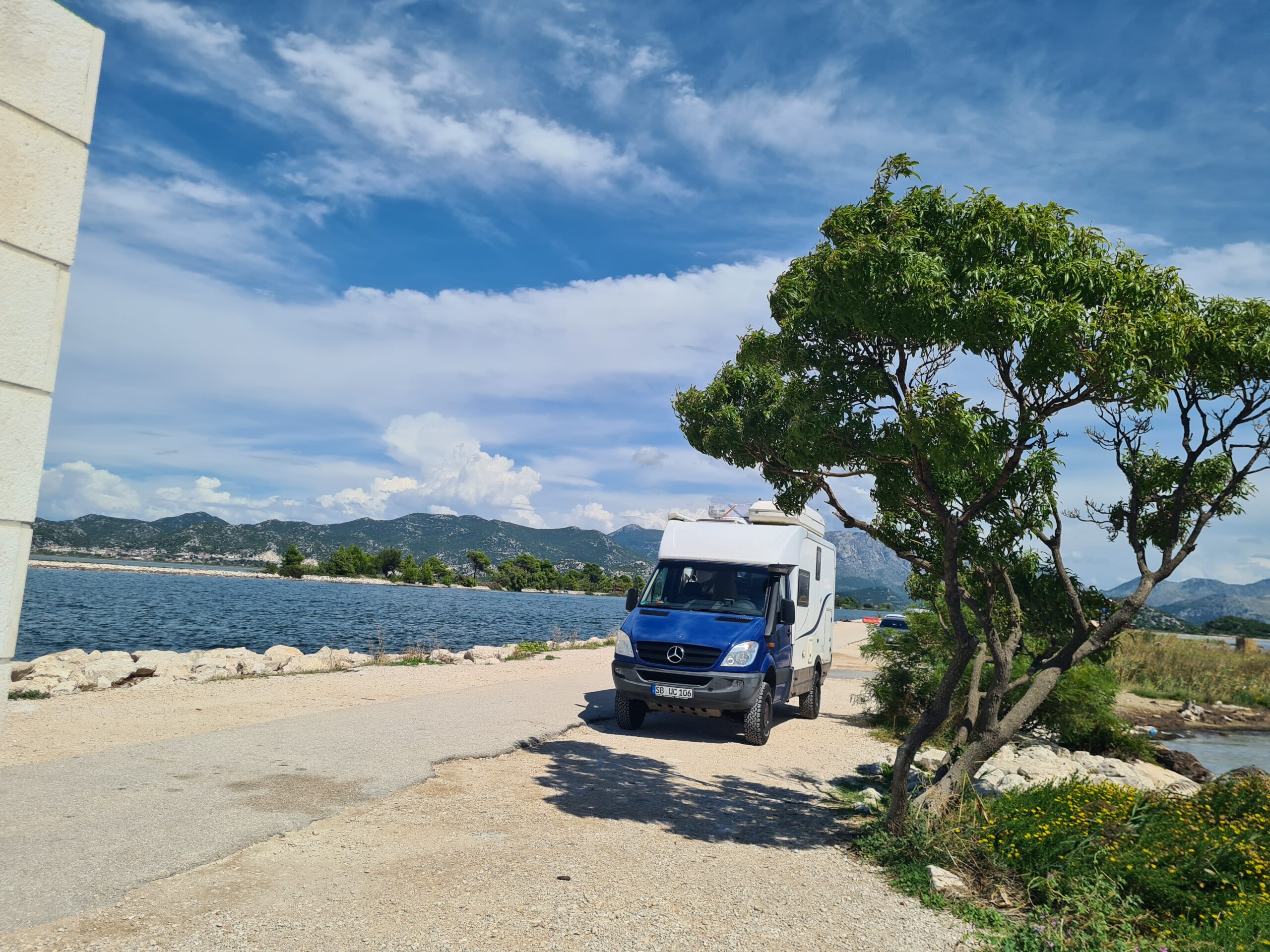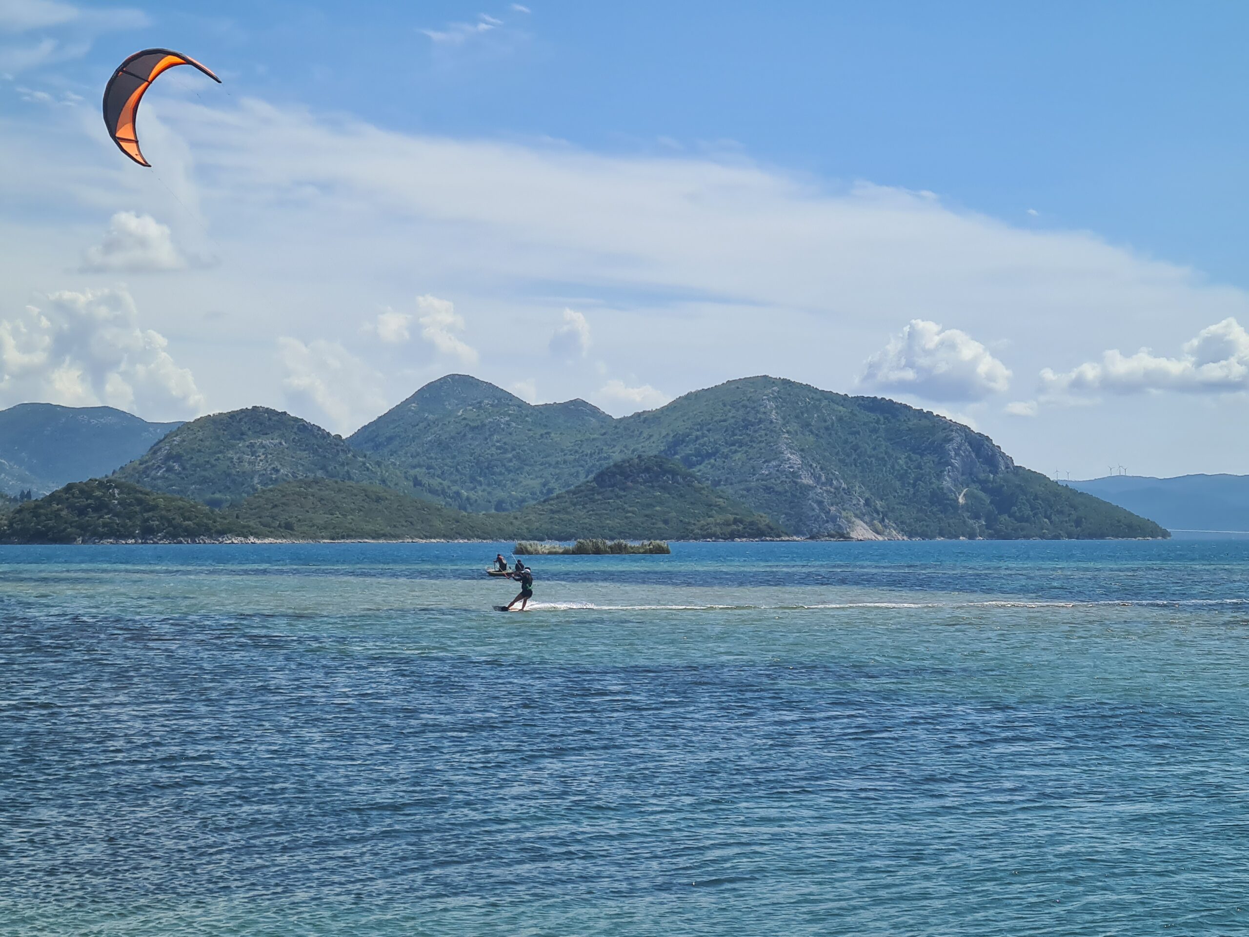 Nach dem Frühstück auf der Mole fahren wir ins Neretva-Delta. Die Neretva fließt unter anderem auch durch Mostar, vielen bekannt durch die berühmte alte Brücke. Im Oberlauf ist sie ein wildes Flüsschen und ein weiteres Erkundungsziel für zukünftige Projekte. Heute werden wir die Mittagspause im Delta verbringen. Wir haben dieses großartige Surfrevier vor einigen Jahren zufällig entdeckt, aber leider darf man dort nicht mehr frei stehen und einen Campingplatz gibt’s nicht. Also nichts für uns. Wir kennen in Kroatien mit seiner langezogenen Küste tatsächlich nur 2 Freistehplätze.