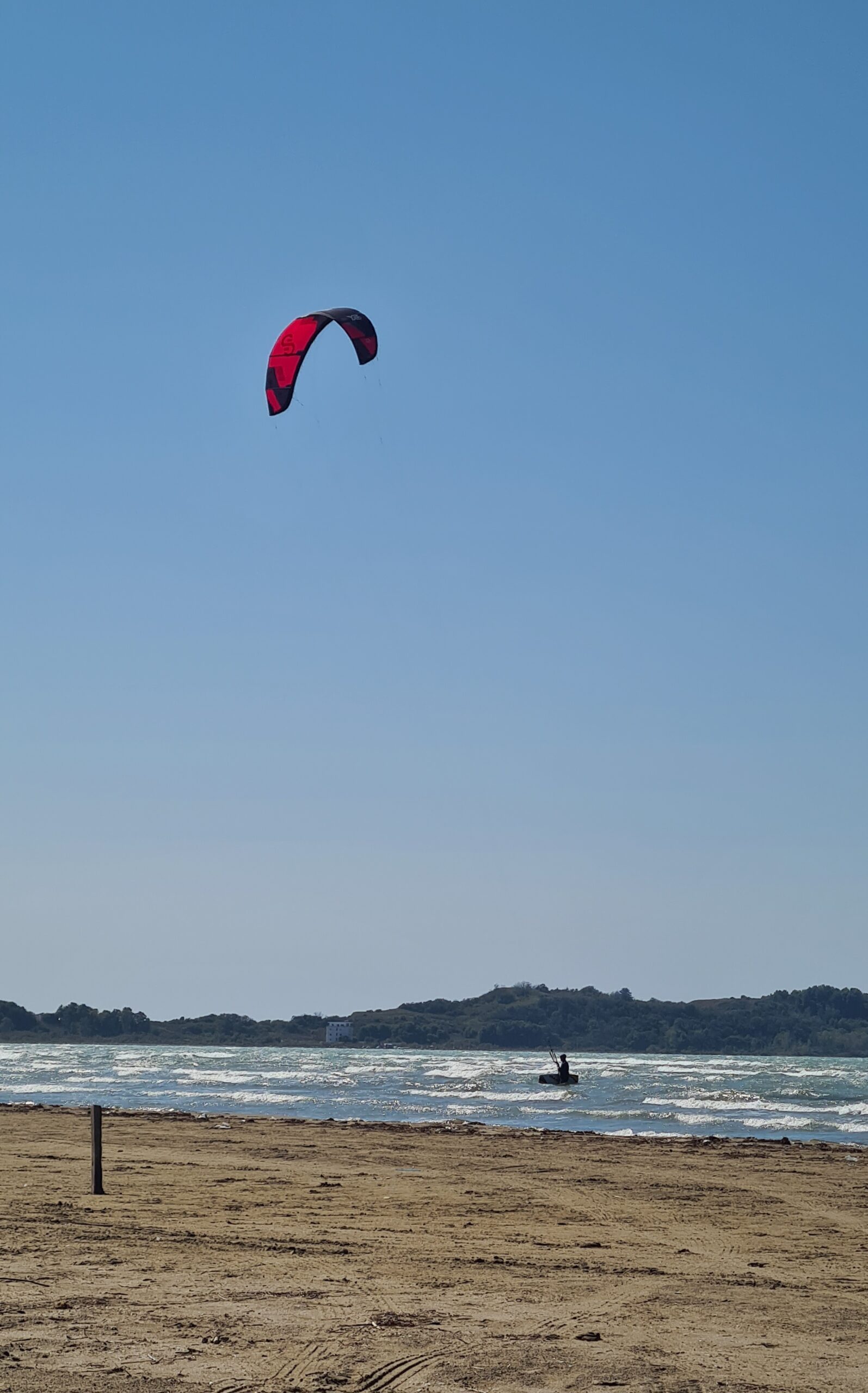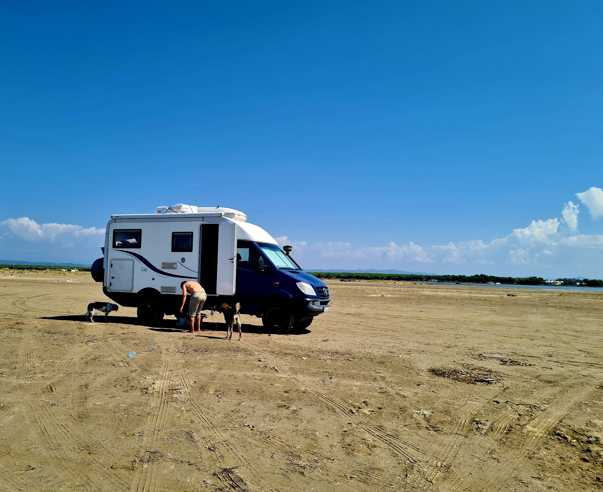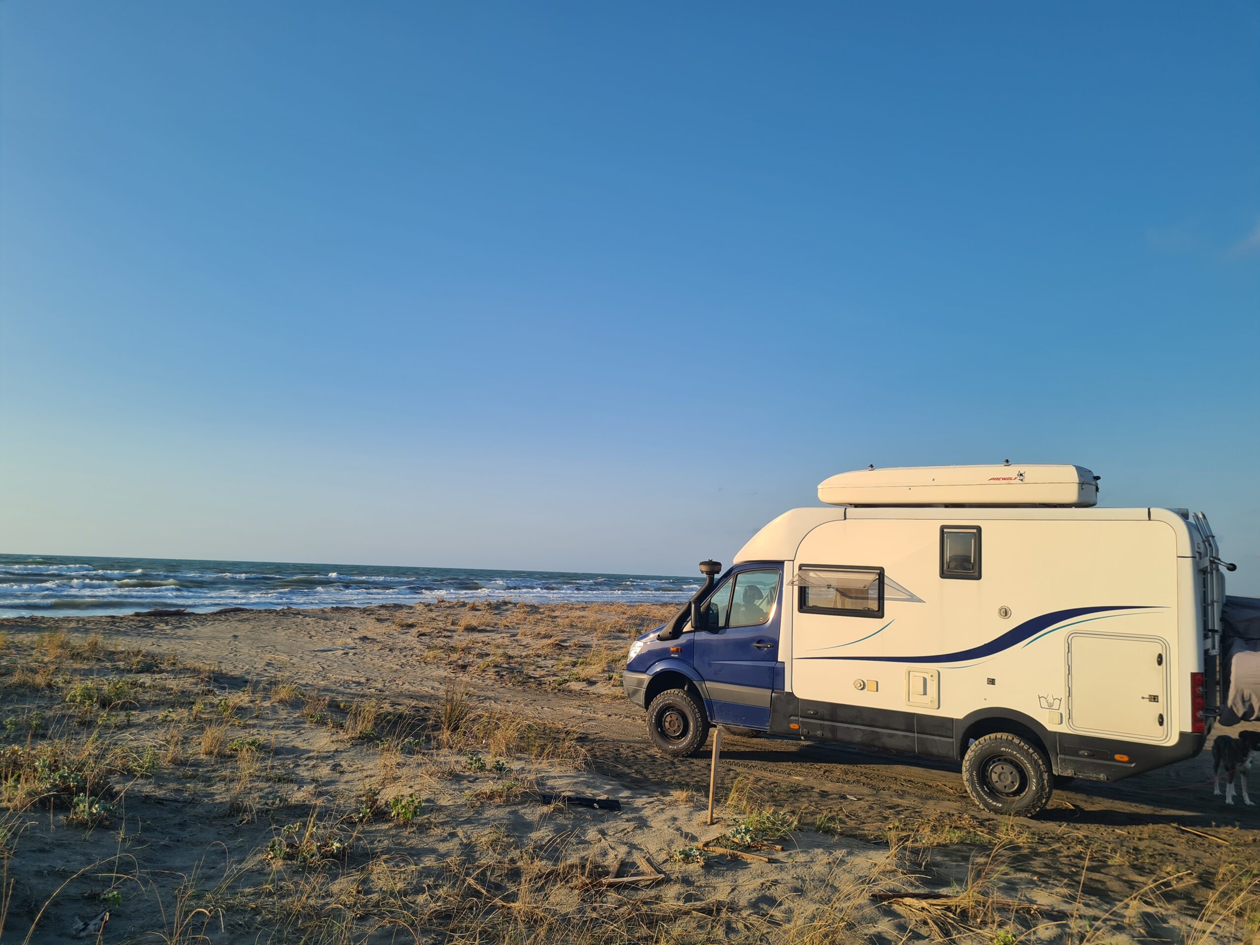 Nördlich von Durres genießen wir eine winzige Pause am befahrbaren Strand. 14 Knoten!