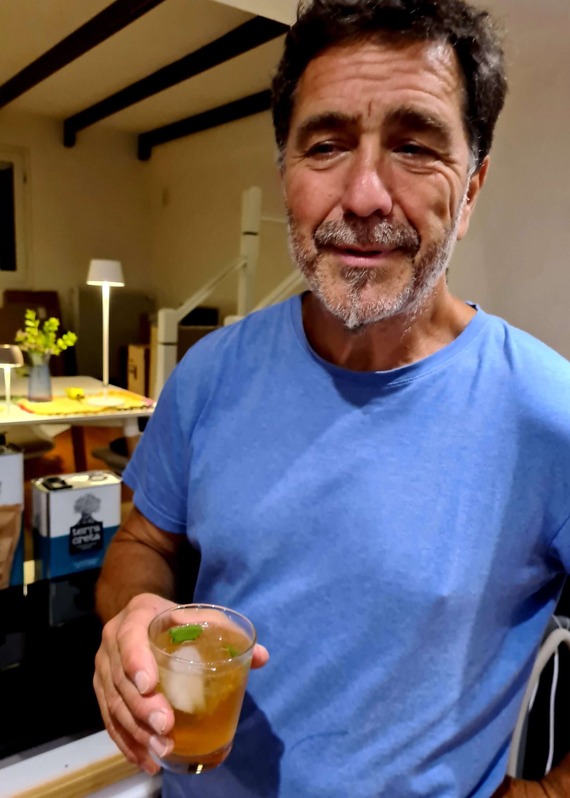 Carmens Kollegin Pia hat uns Aperitifvorräte mitgegeben, bevor sie schlecht werden, müssen wir uns etwas davon genehmigen.