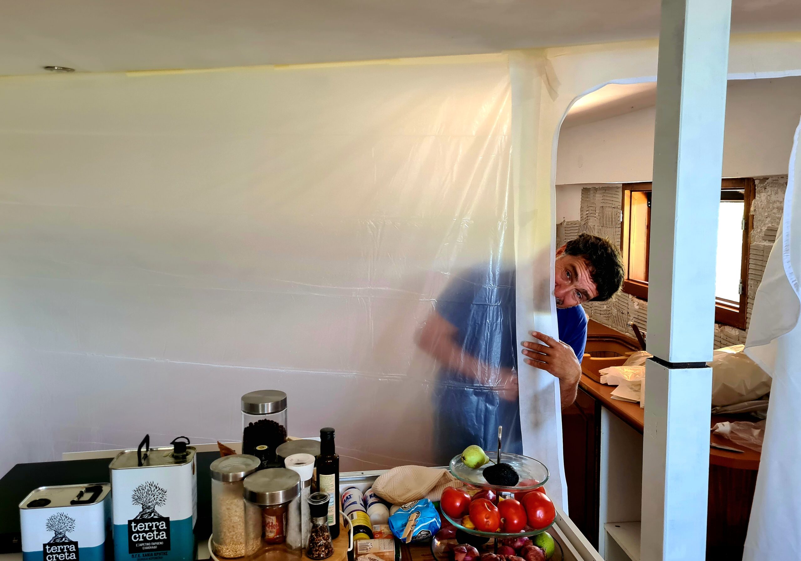 Heute will Uwe den Fliesenspiegel komplett entfernen und wir werden nachmittags unsere italienische Nachbarin Alessandra besuchen. Wir leben hier in einer “ Parallelgesellschaft“, weil wir außer unserem Gärtner Dimitris und Kneipenwirten nur Deutsche, Franzosen, Belgier und Italiener kennen. Alessandra will das ändern und hat eine Griechisch-Lehrerin für uns gefunden. Das ist eine Superidee.