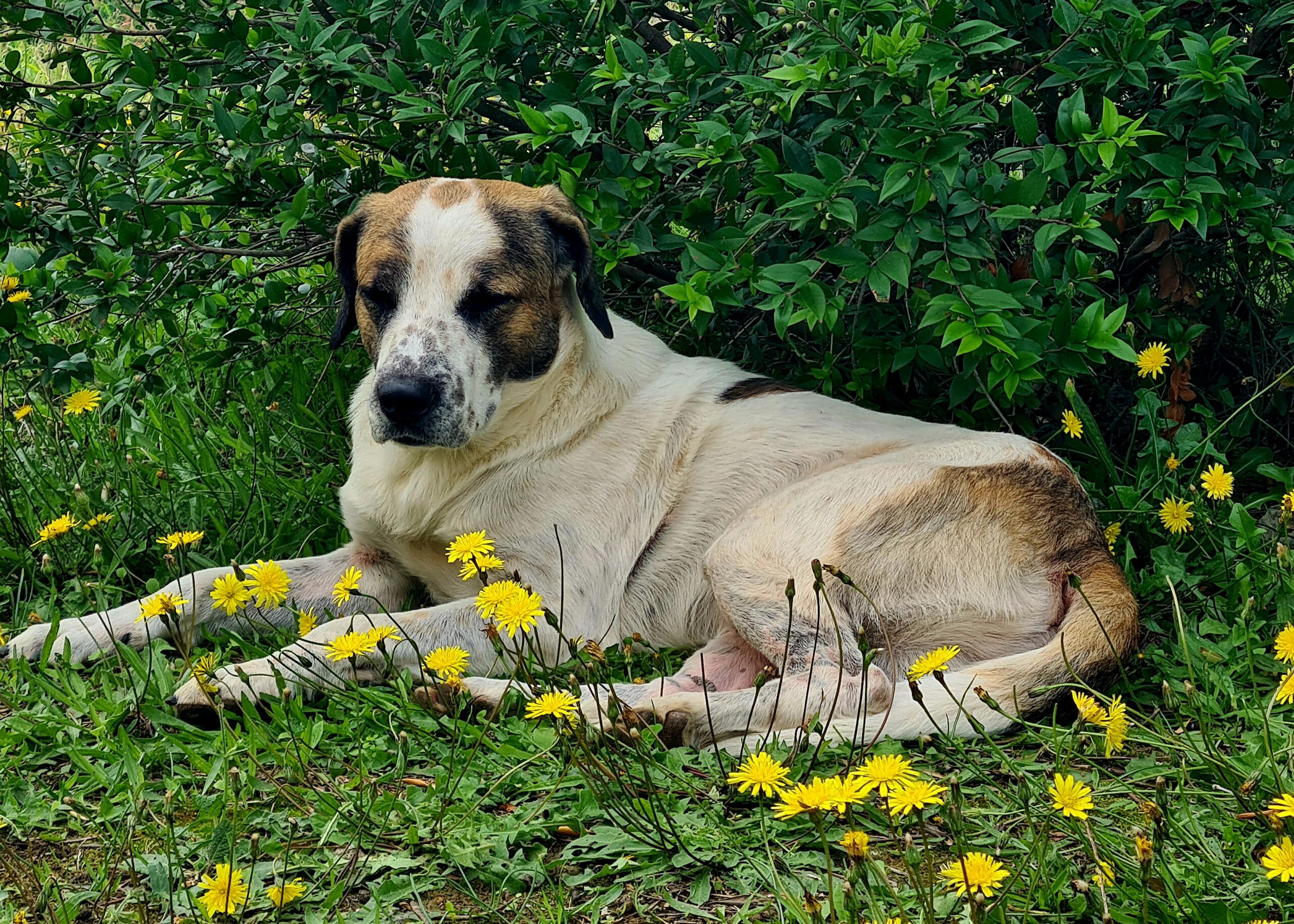 Während wir am Strand schlafen, bewacht Hausmeister Bilbo unser Häuschen.
