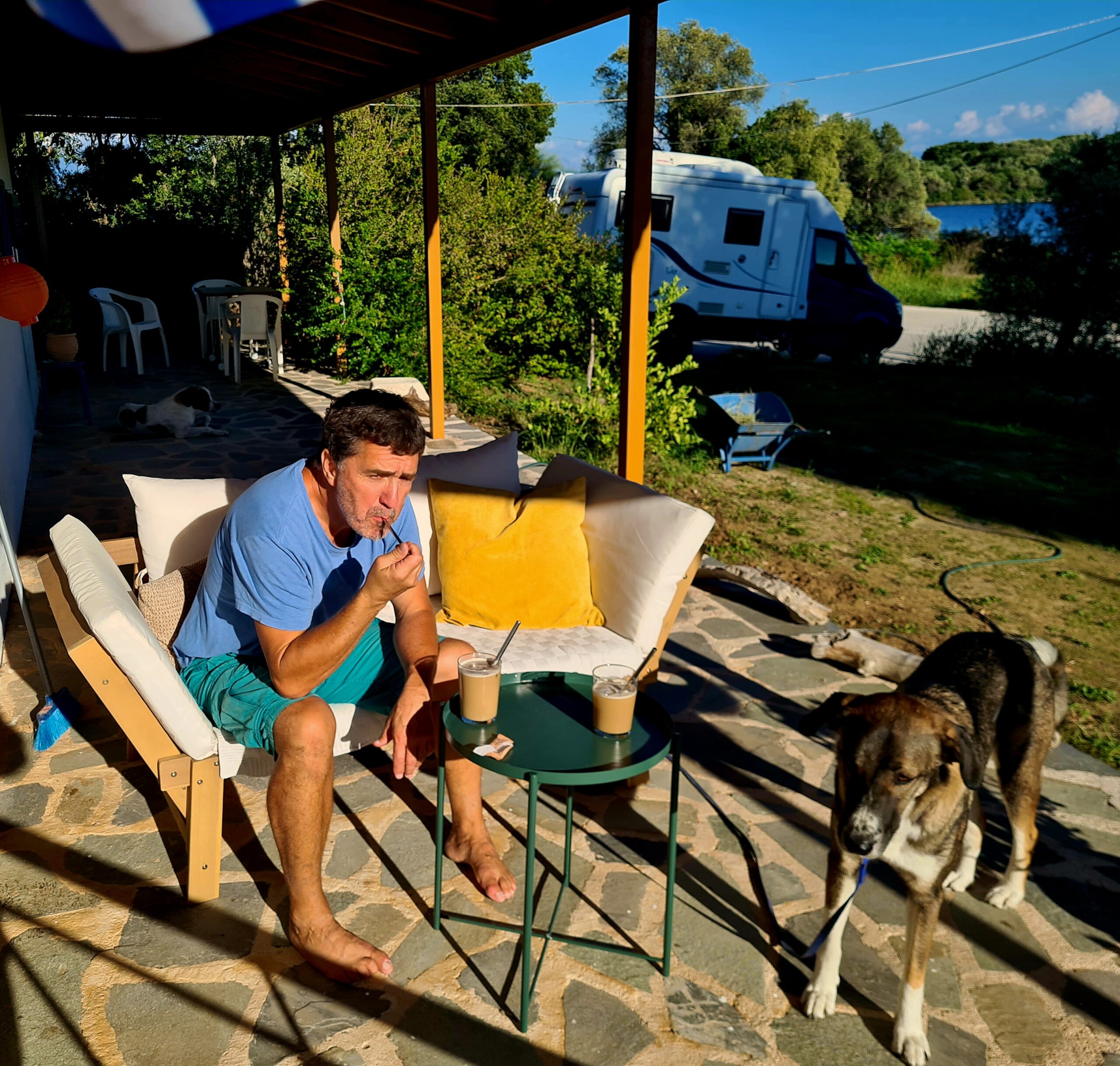 Wir setzen uns noch ein bisschen in die Sonne und warten auf unseren Besuch.