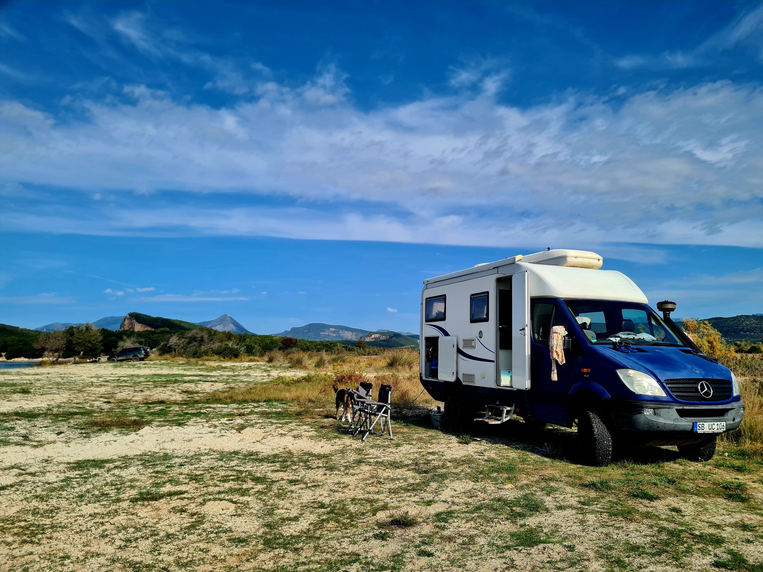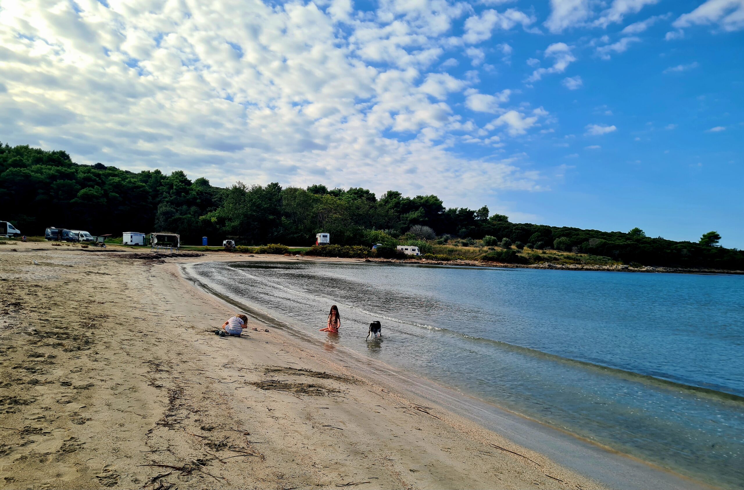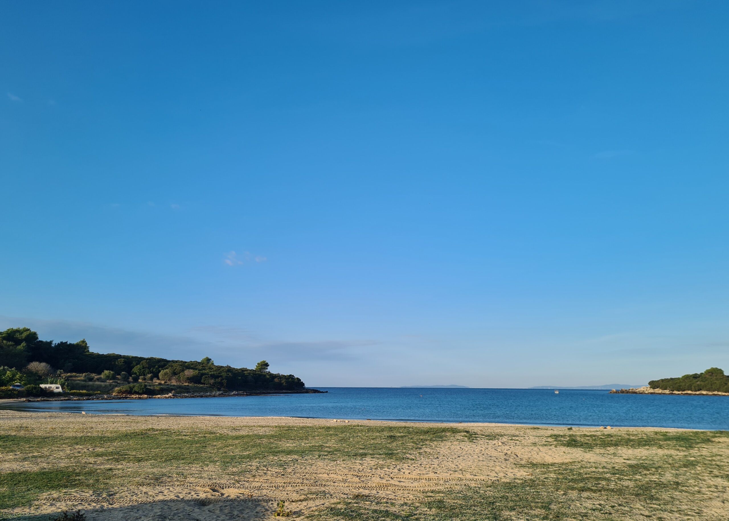 Wir stehen direkt am Strand, völlig ungestört von den neuen griechischen Gesetzen für ein Strandparkverbot.