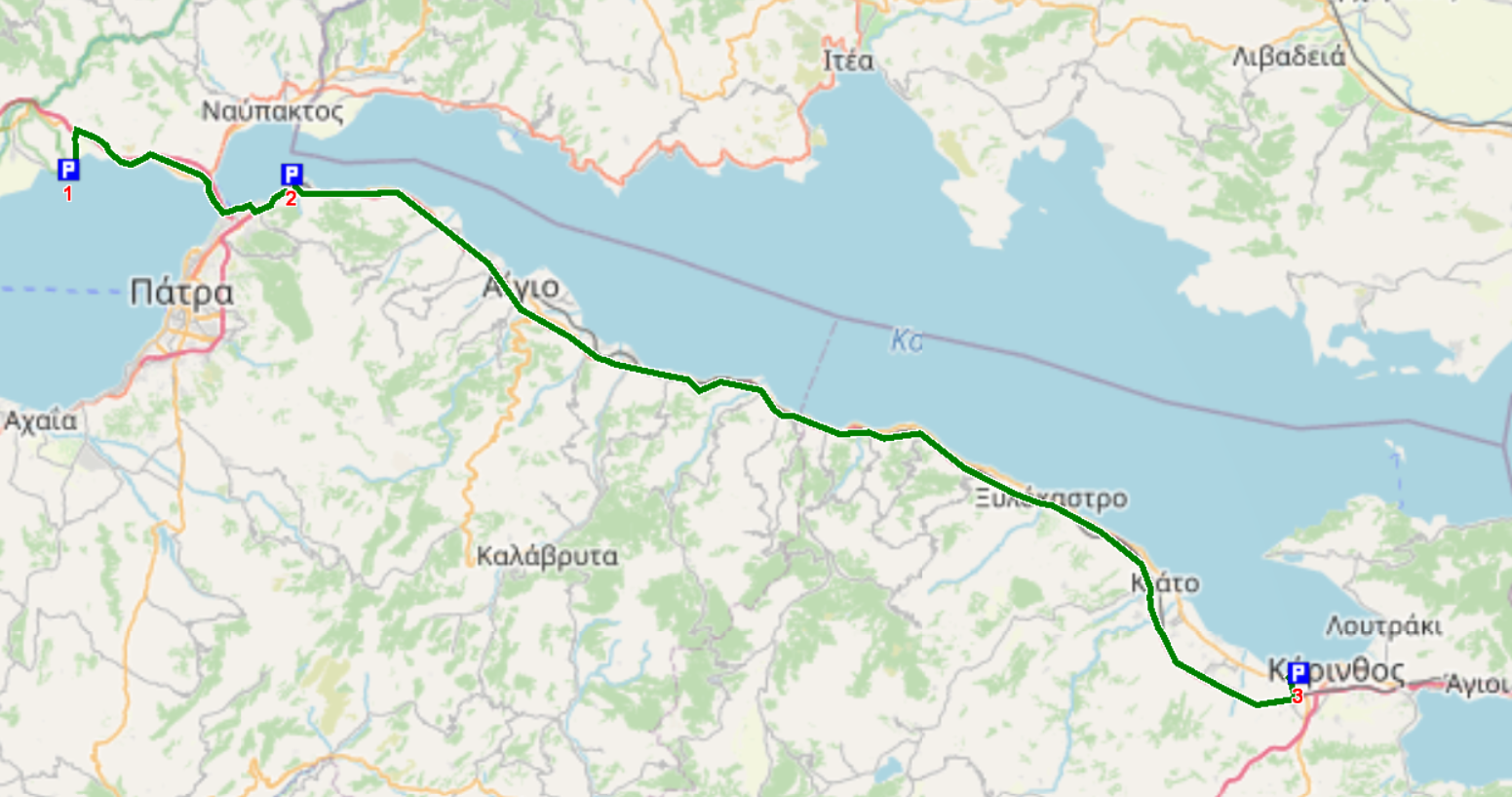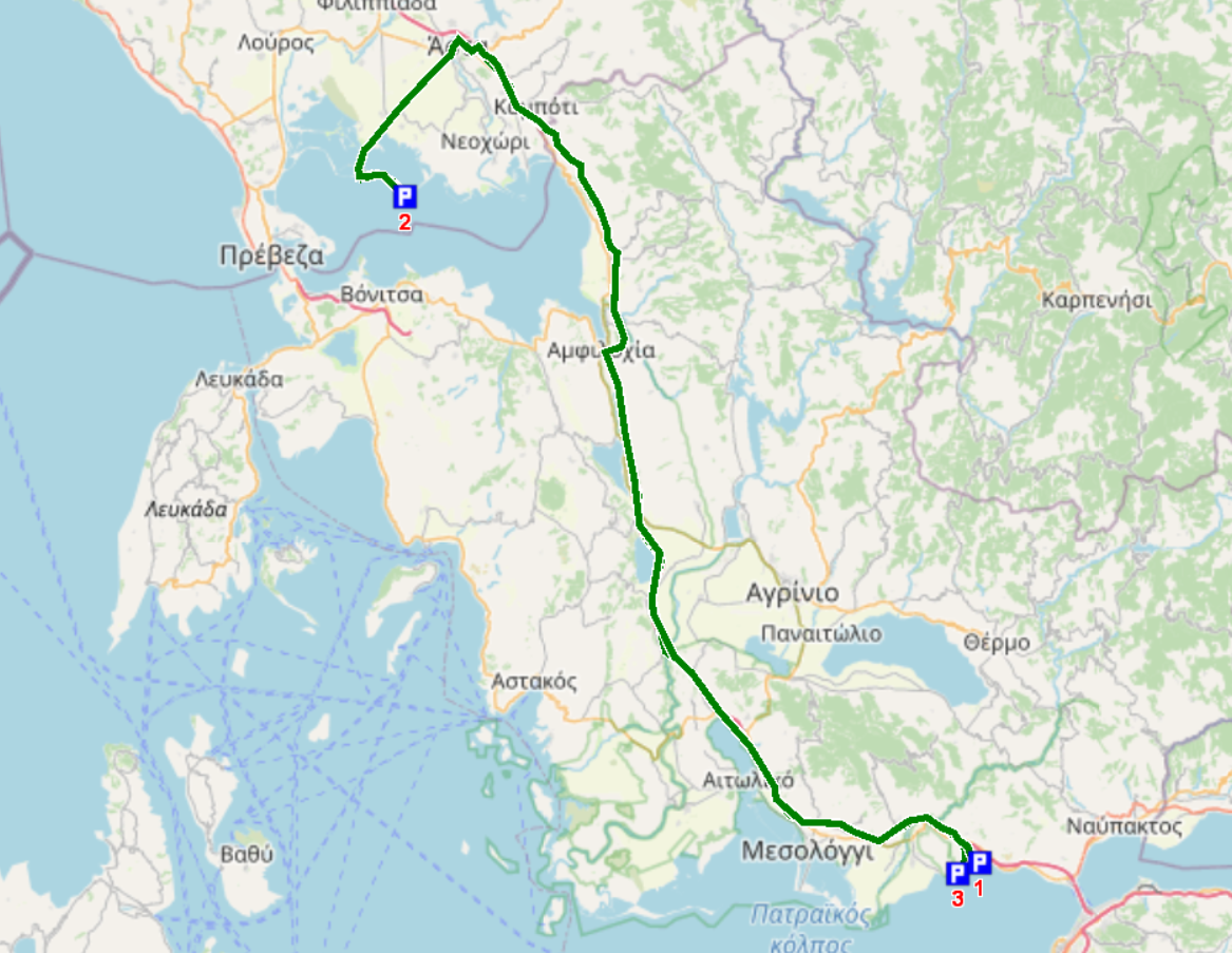 2 Fähranleger N 36° 31′ 15,7″ O 22° 58′ 25,7″