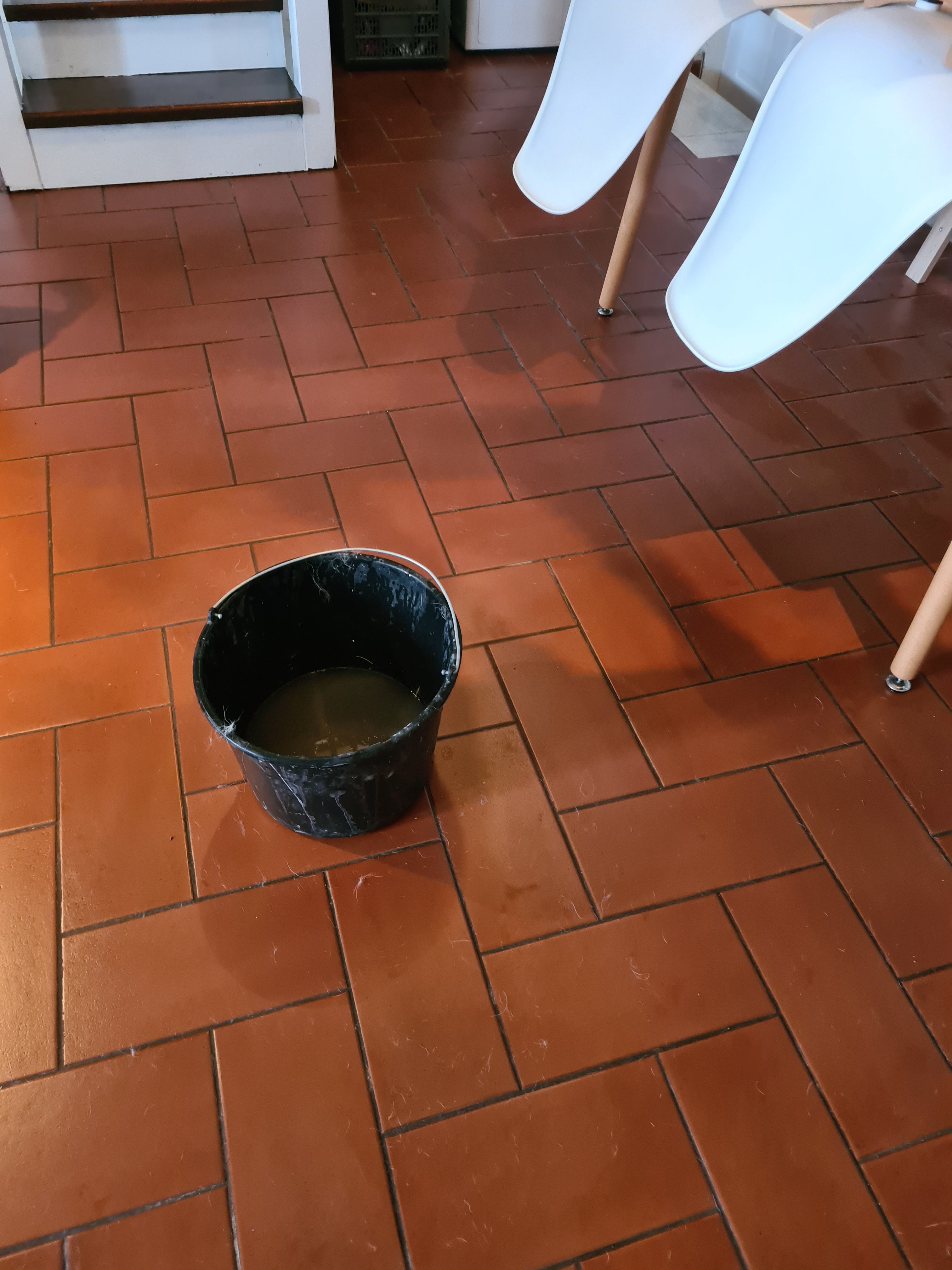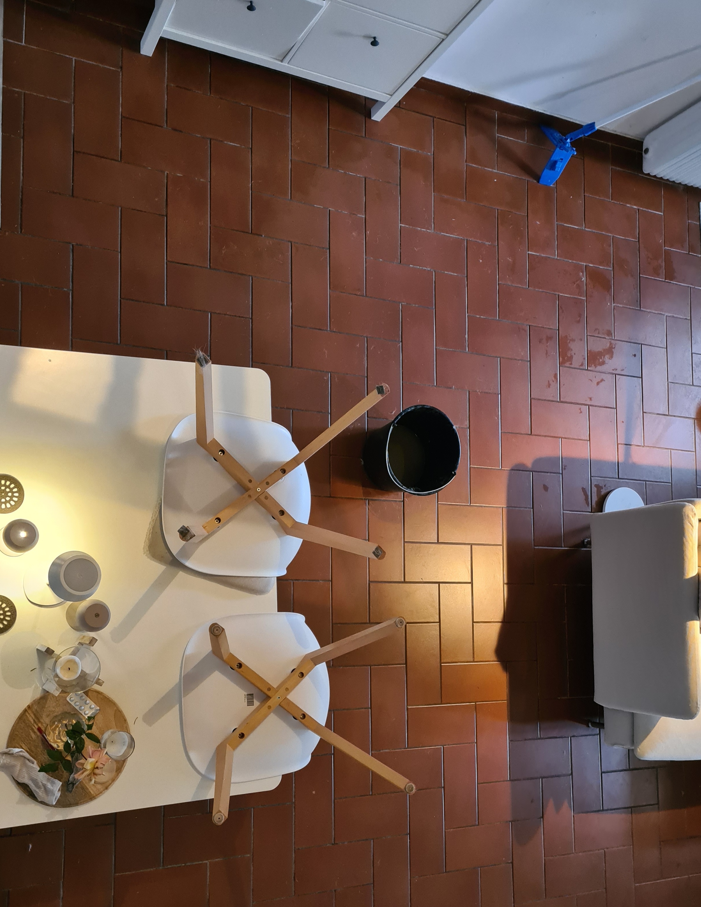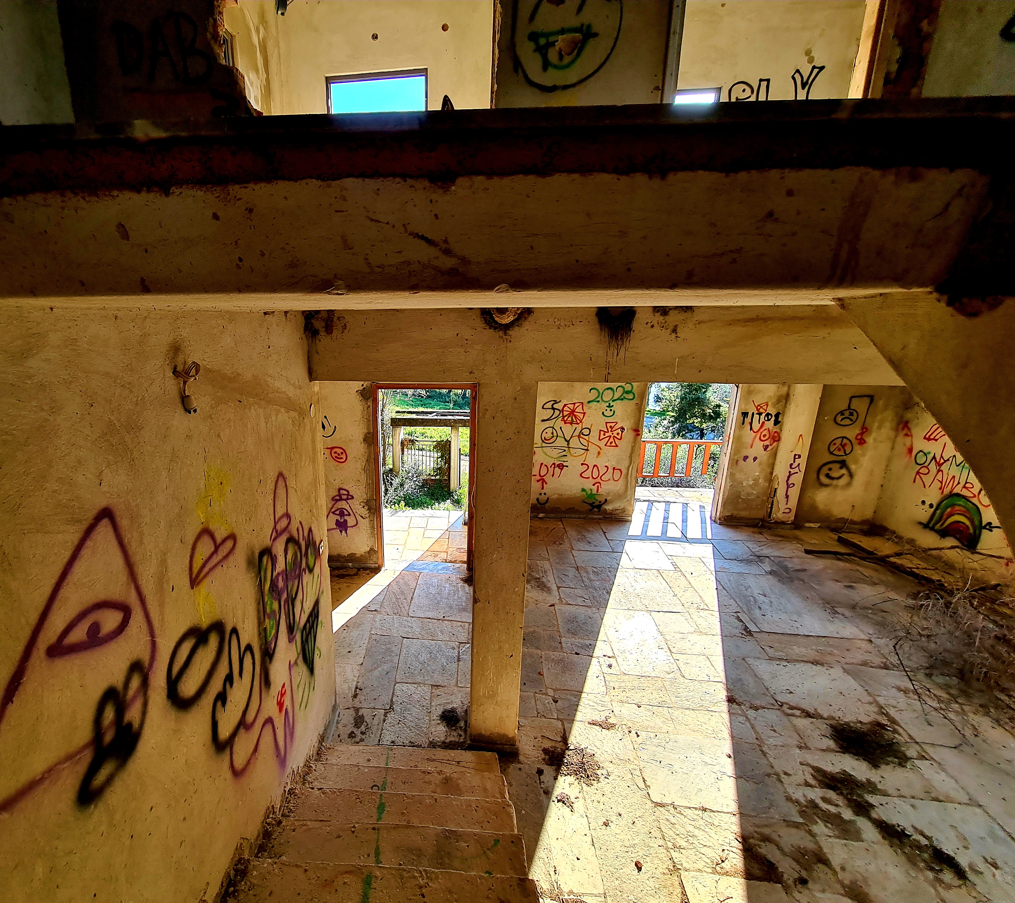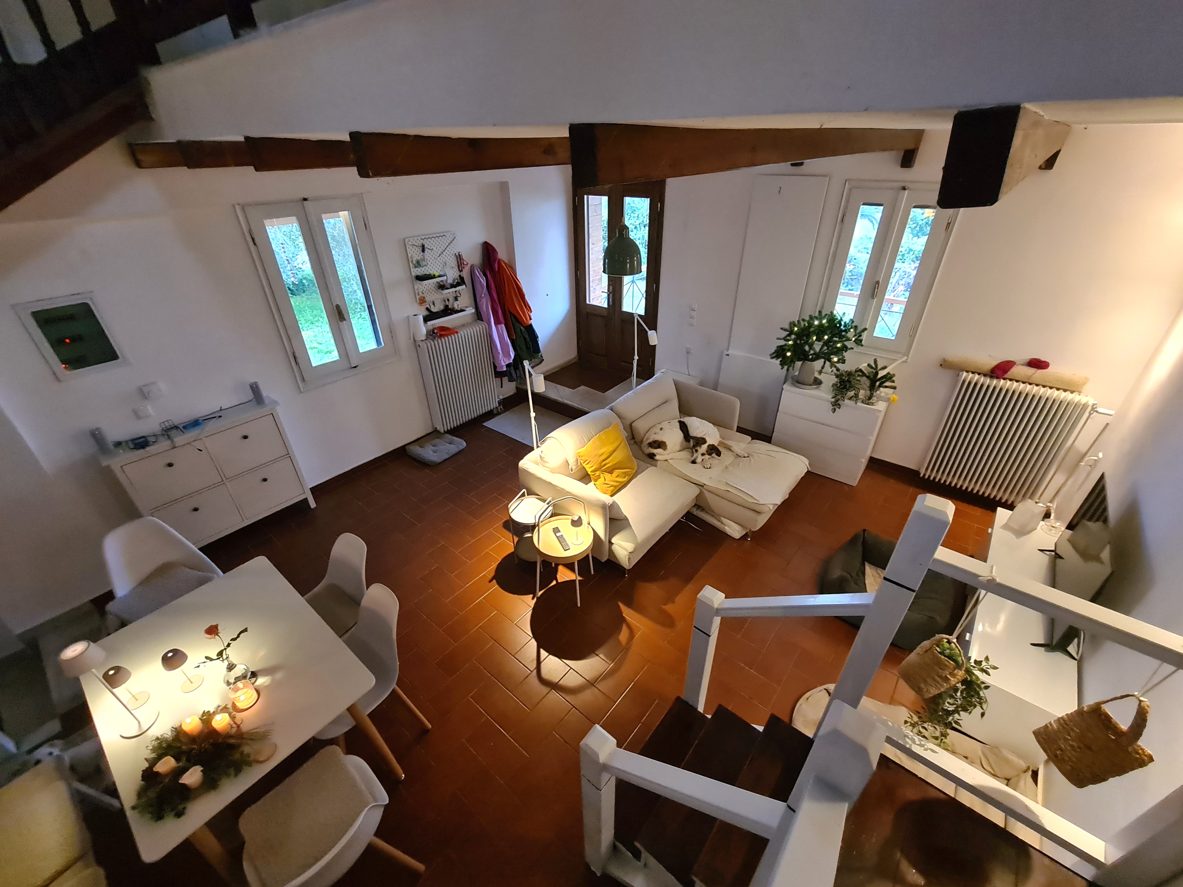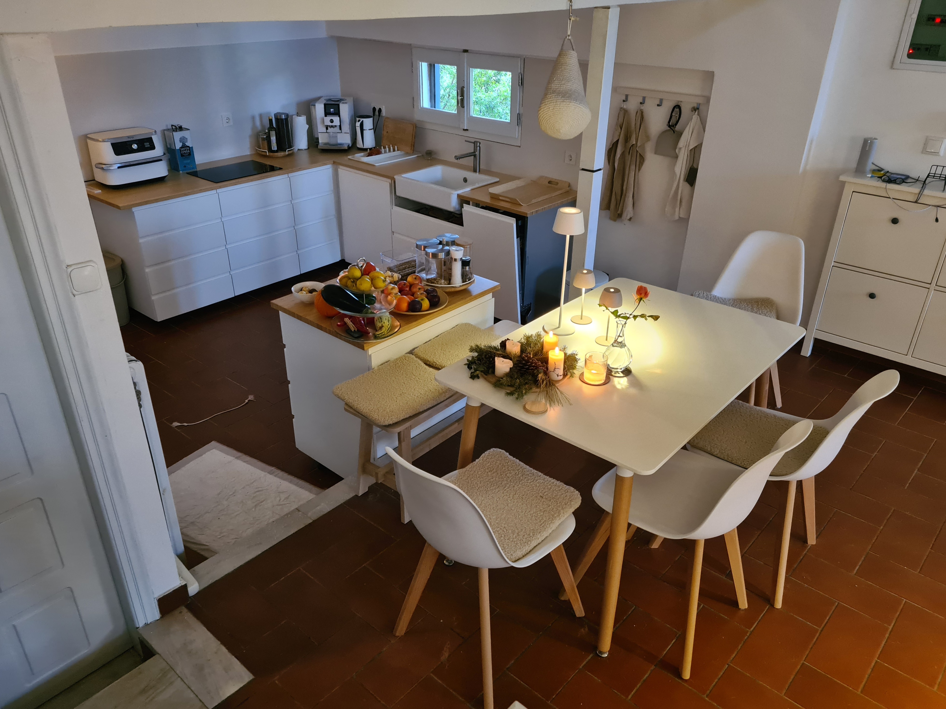 Außerdem müssen wir bei unserem nächsten Aufenthalt das Geländerprojekt auch in den oberen Ebenen abschließen, d.h., alle gedrechselten Stützen kommen weg. Der Handlauf wird weiß gestrichen und schon ist alles offener und freundlich und der vergitterte Blick ist weg, wie man im Erdgeschoss schon sehen kann. Sicherlich noch eine Menge Arbeit, aber wir sind nach wie vor von unserer Dependance im Süden überzeugt.
