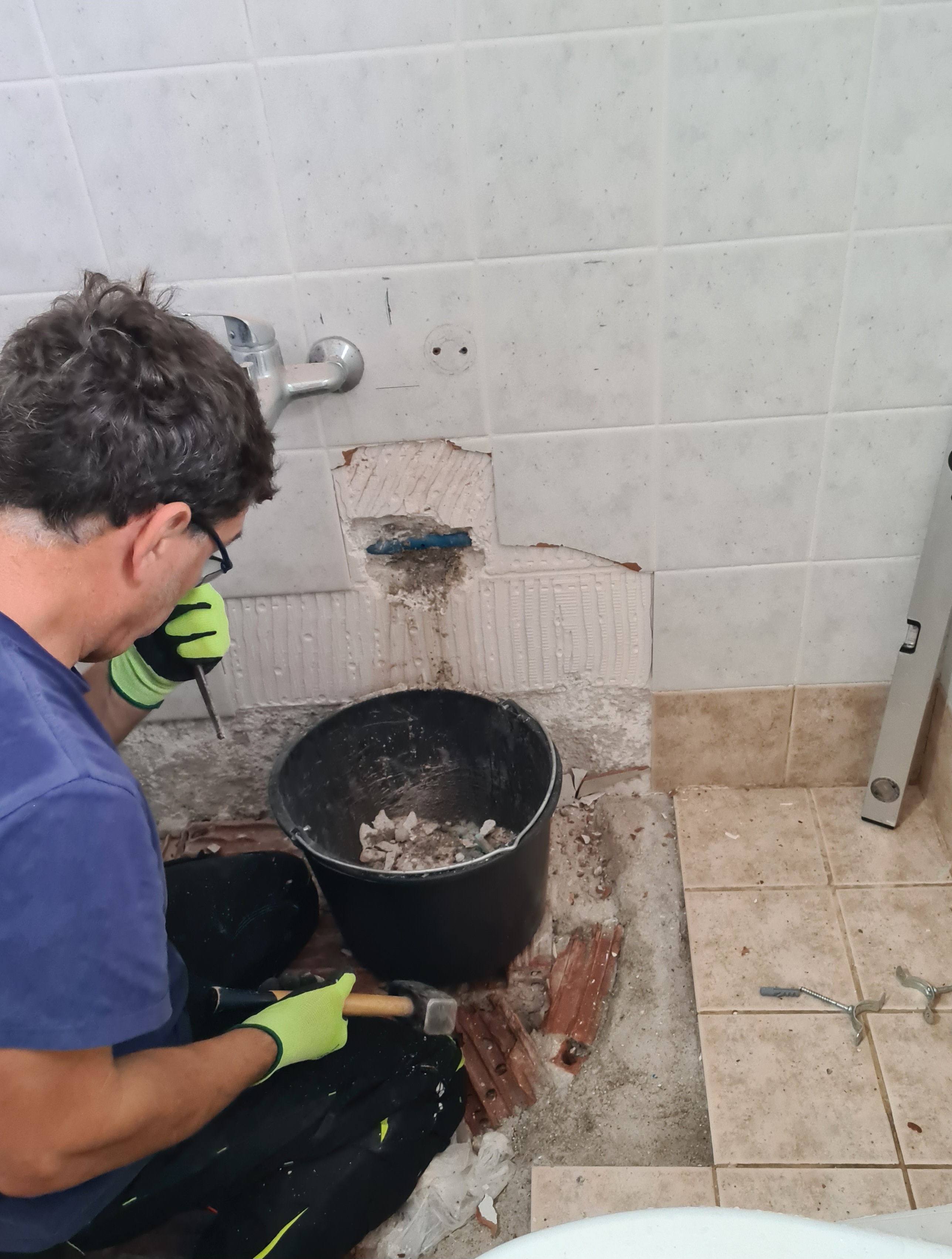 – Fliesenaufkleber im Bad unten