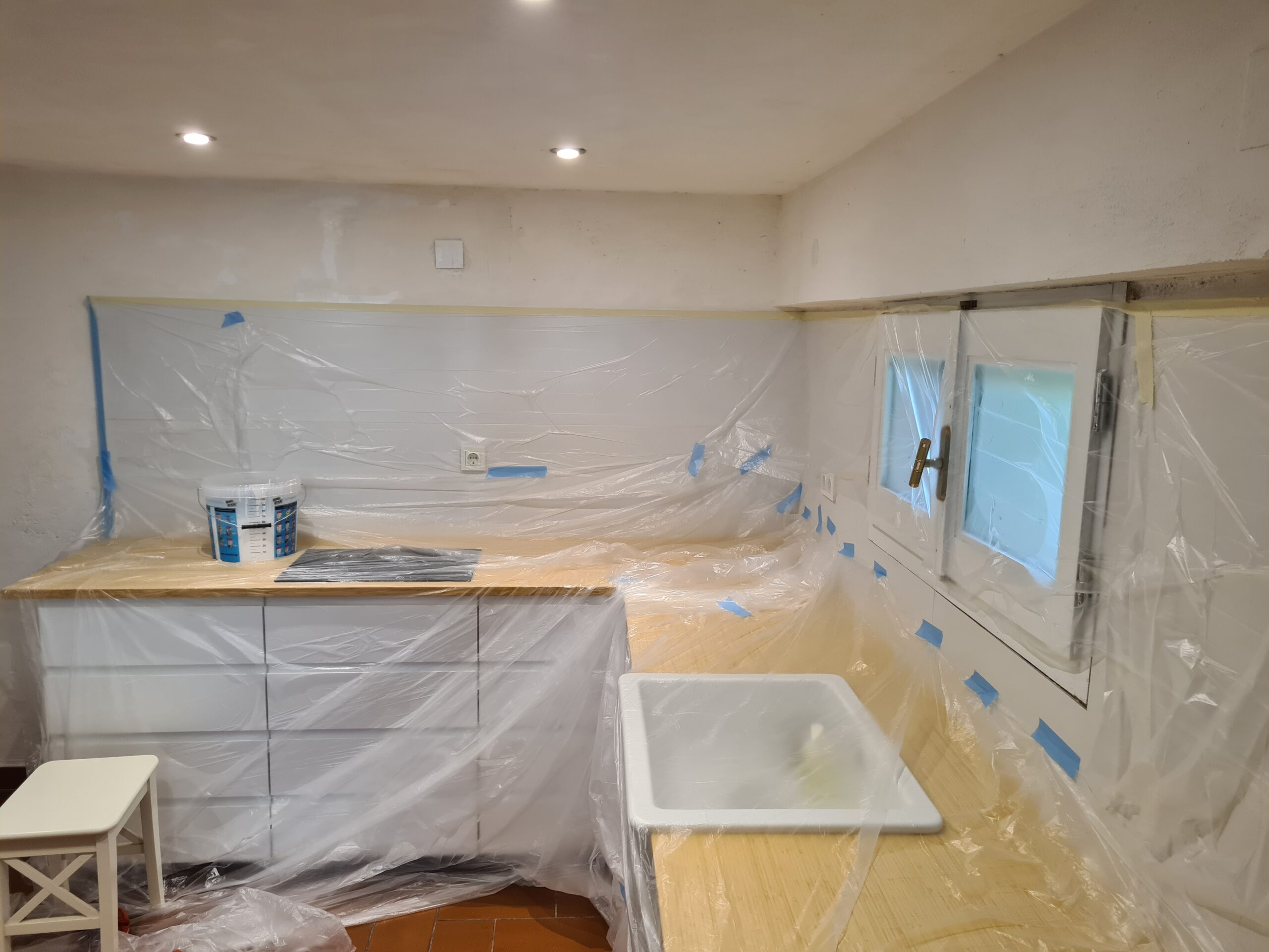 Wir werkeln und streichen den ganzen Tag in unserer Küche.