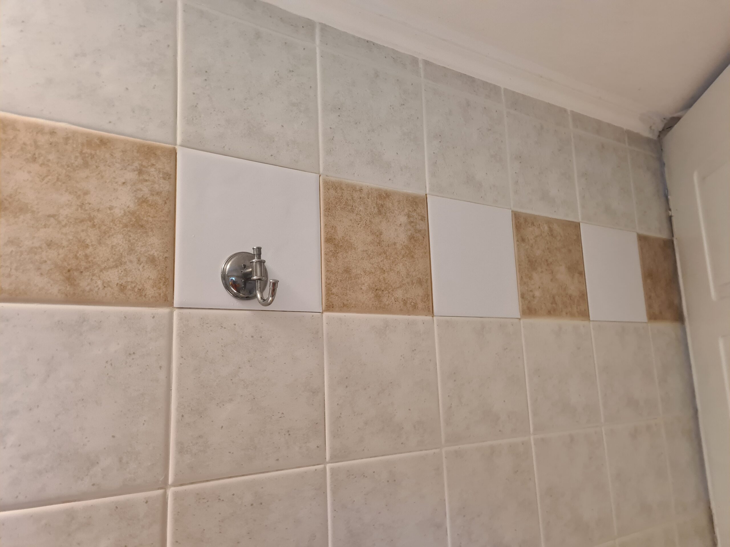 Zuerst wird das Bad ein bisschen mit Fliesenaufklebern aufgepeppt.