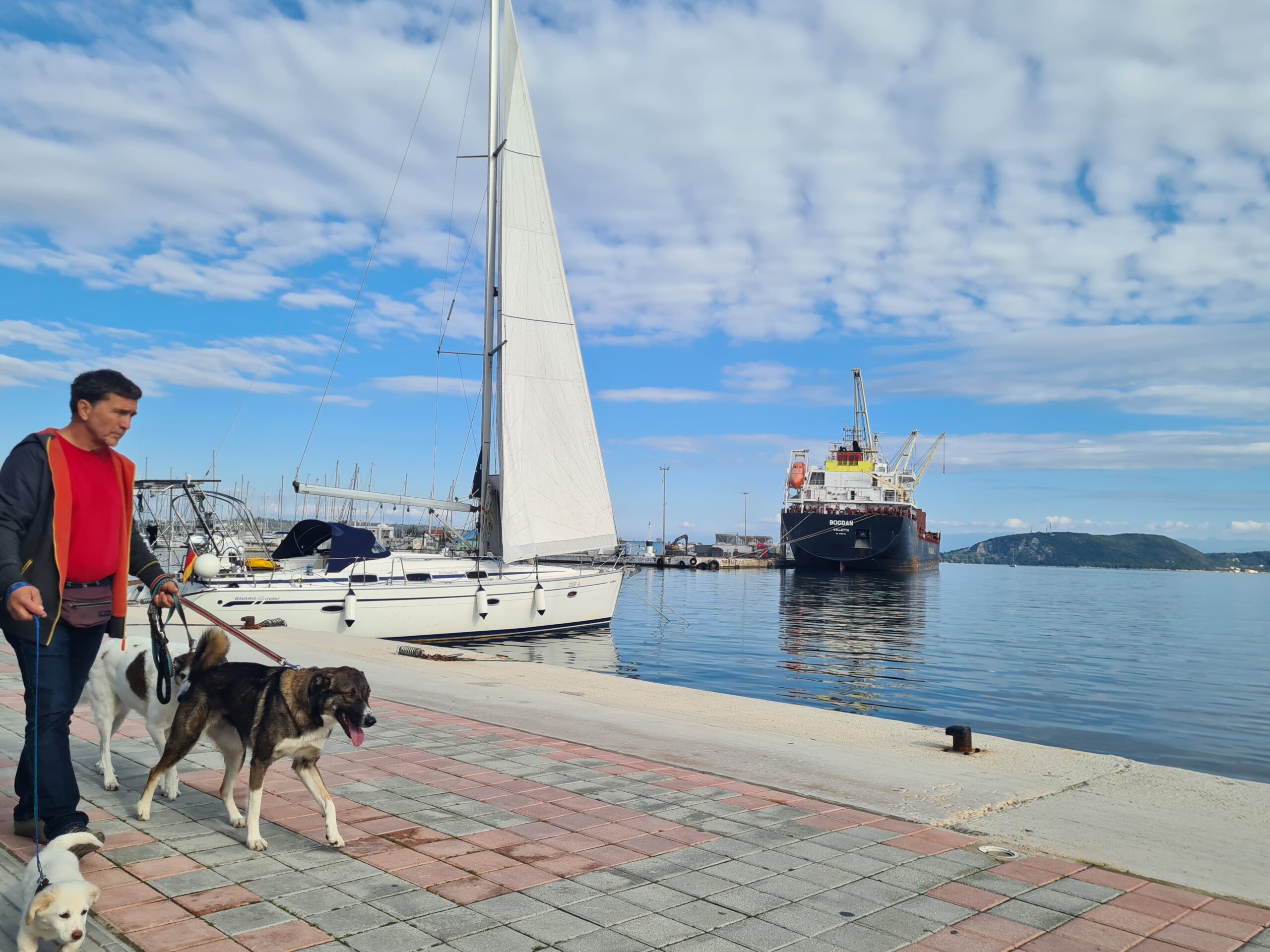 Auch die Welpen haben viel Spaß hier und dann geht’s in den Hafen von Preveza.